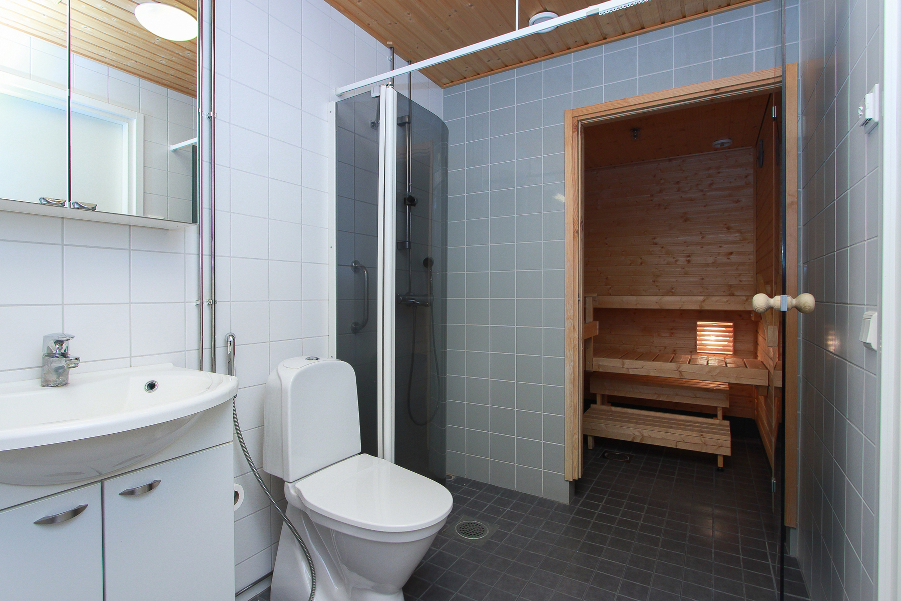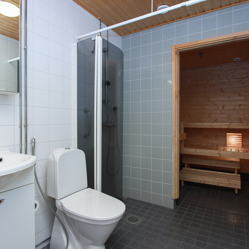 Keittiössä on hyvin kaappi- ja laskutilaa. Kaksi wc:tä helpottaa erityisesti perheasumista ja kiireisiä aamuja. Vaatehuone tuo runsaasti säilytystilaa, ja lisäksi asunnossa on oma sauna, jossa rentoudut oman aikataulusi mukaan.