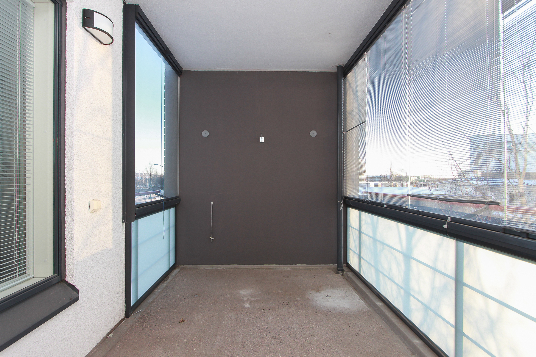 Lasitettu parveke. Näkymät kahteen suuntaan.