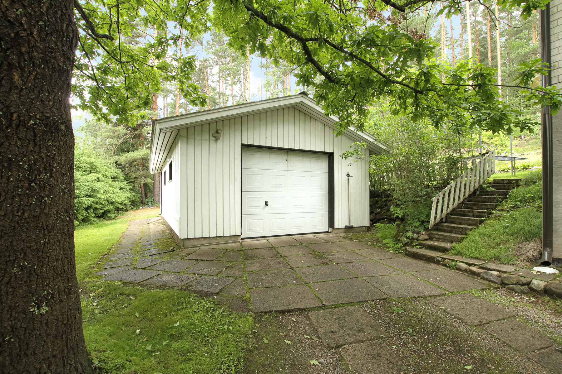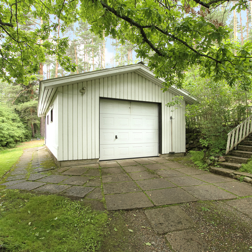 Erillinen autotalli/varasto tarjoaa reilusti säilytys- ja työtilaa.