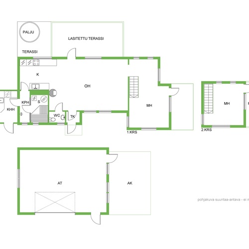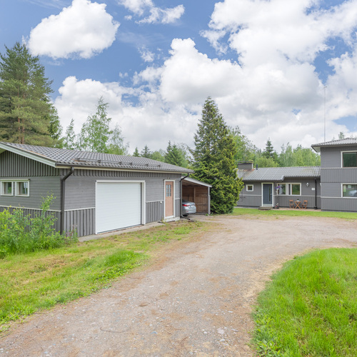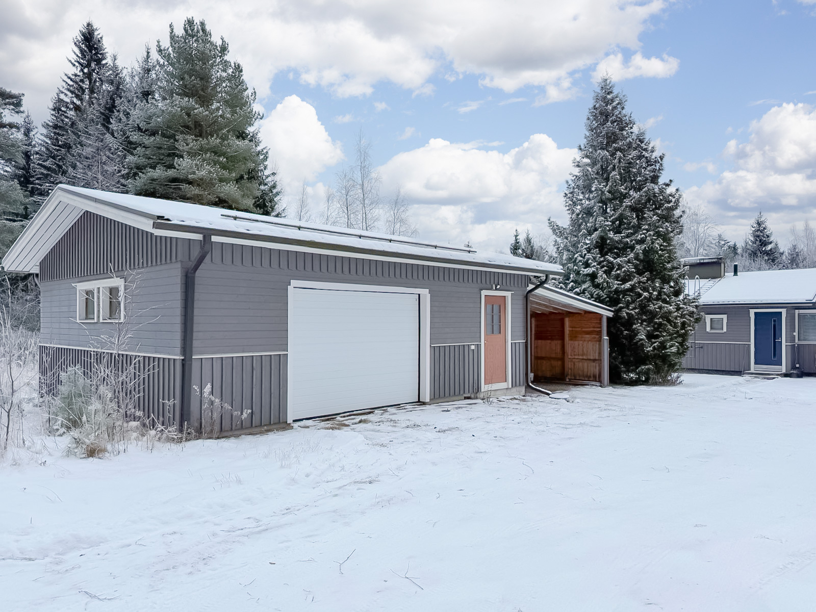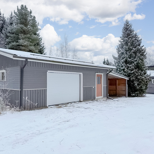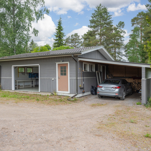 Autotalli/autokatos. Autotalliin myös erilliset kulkuovet 2 kpl, tallissa ilmalämpöpumppu.