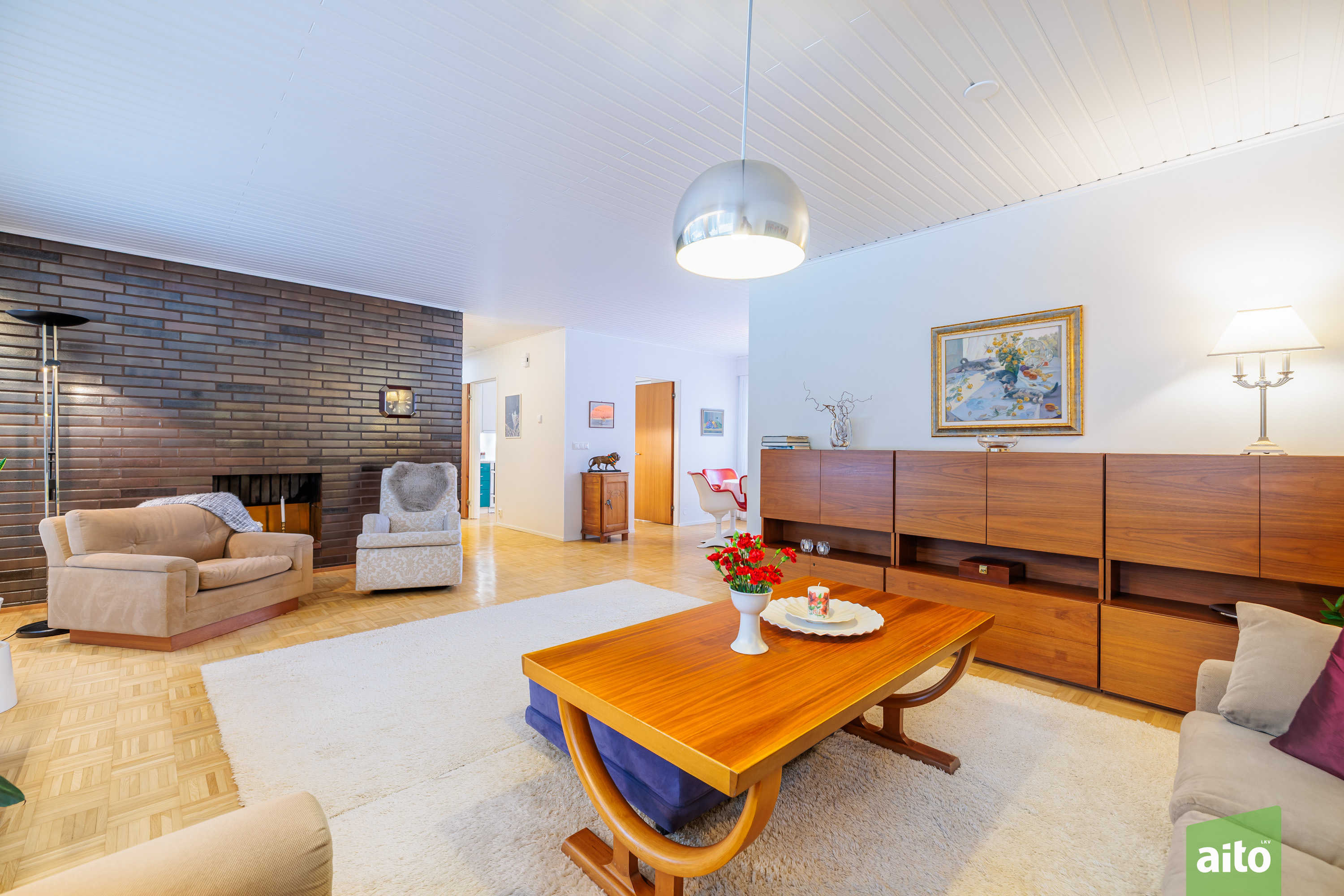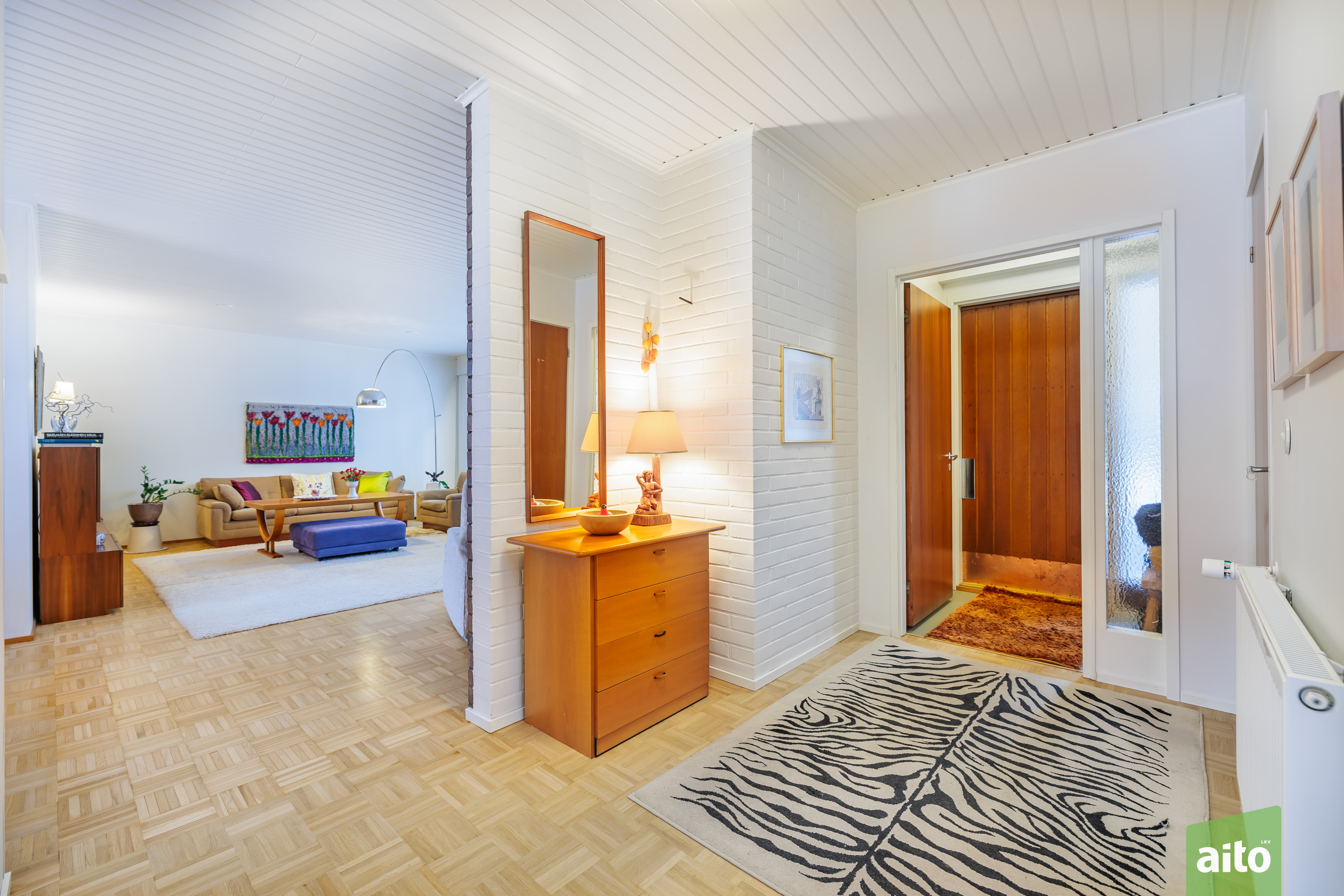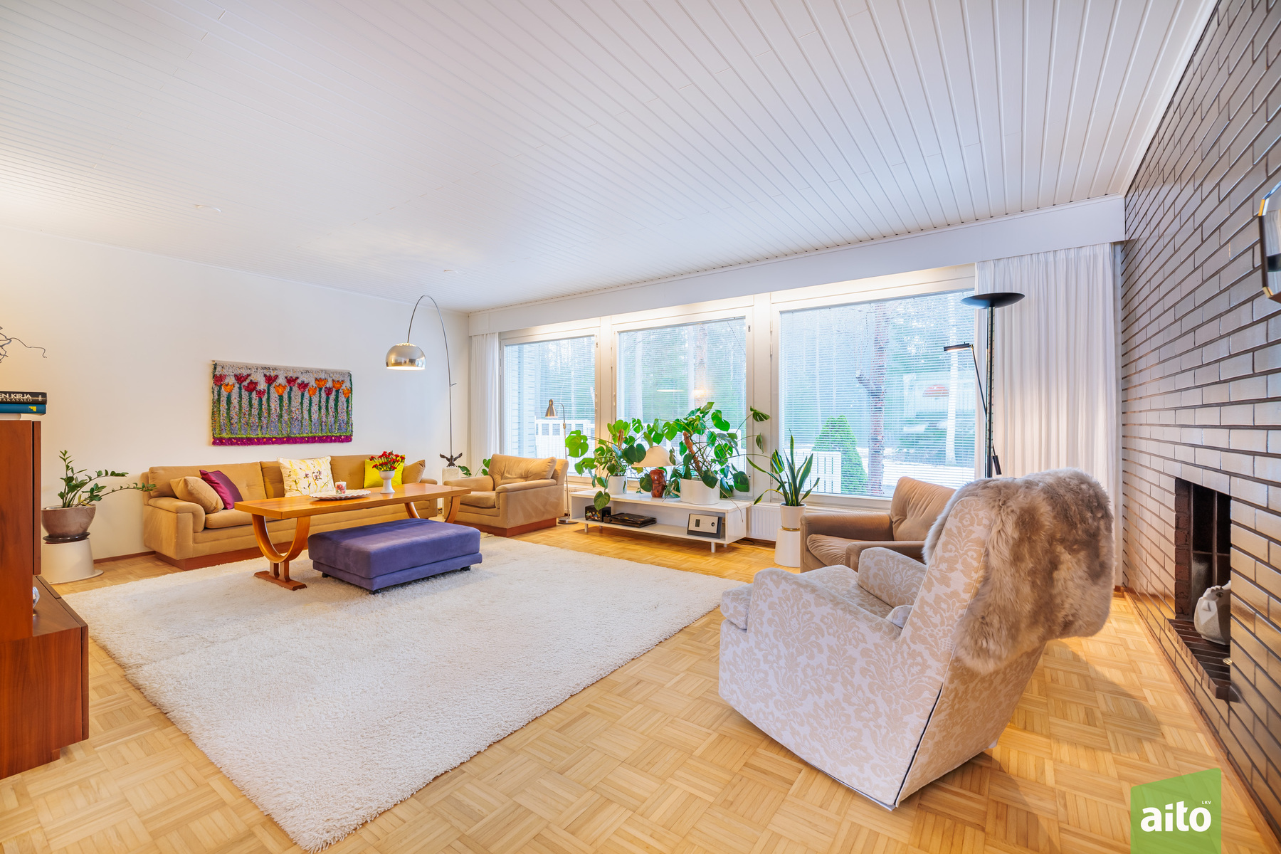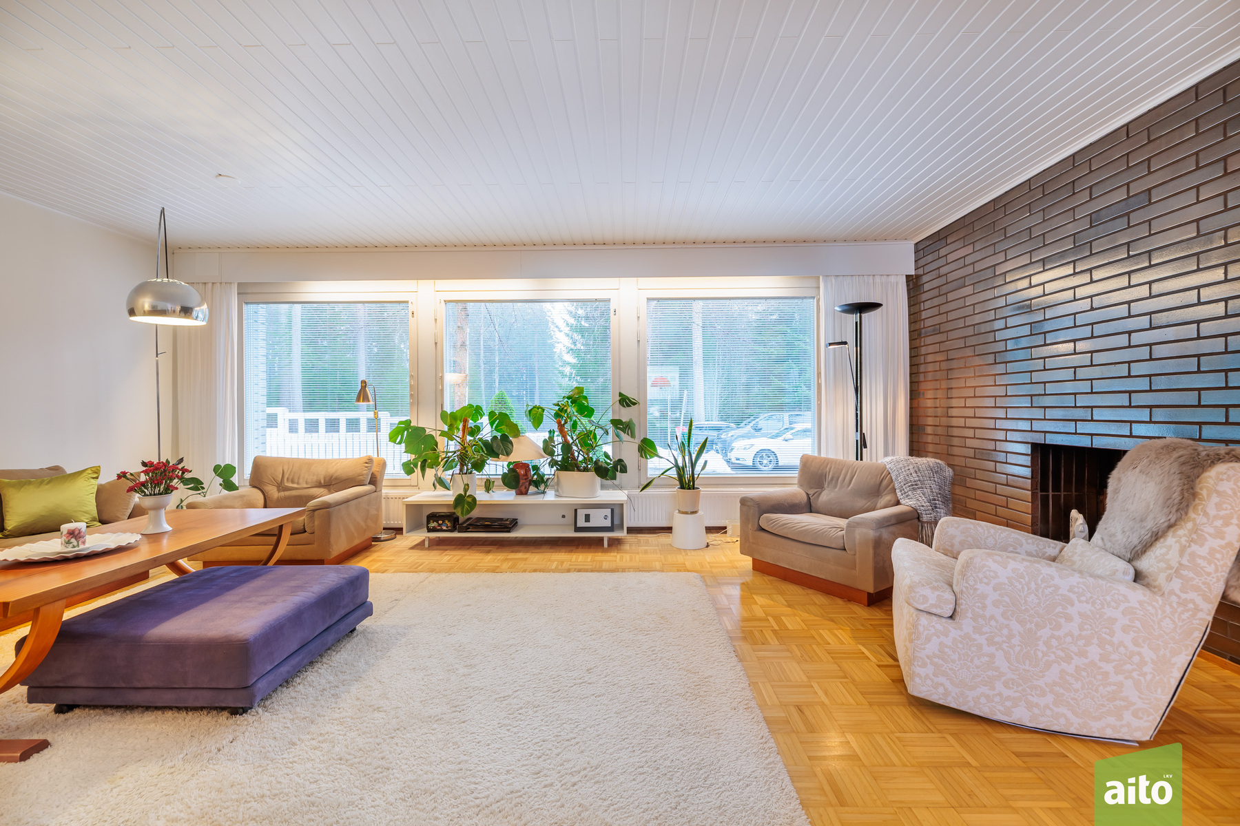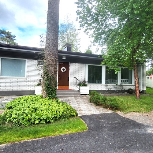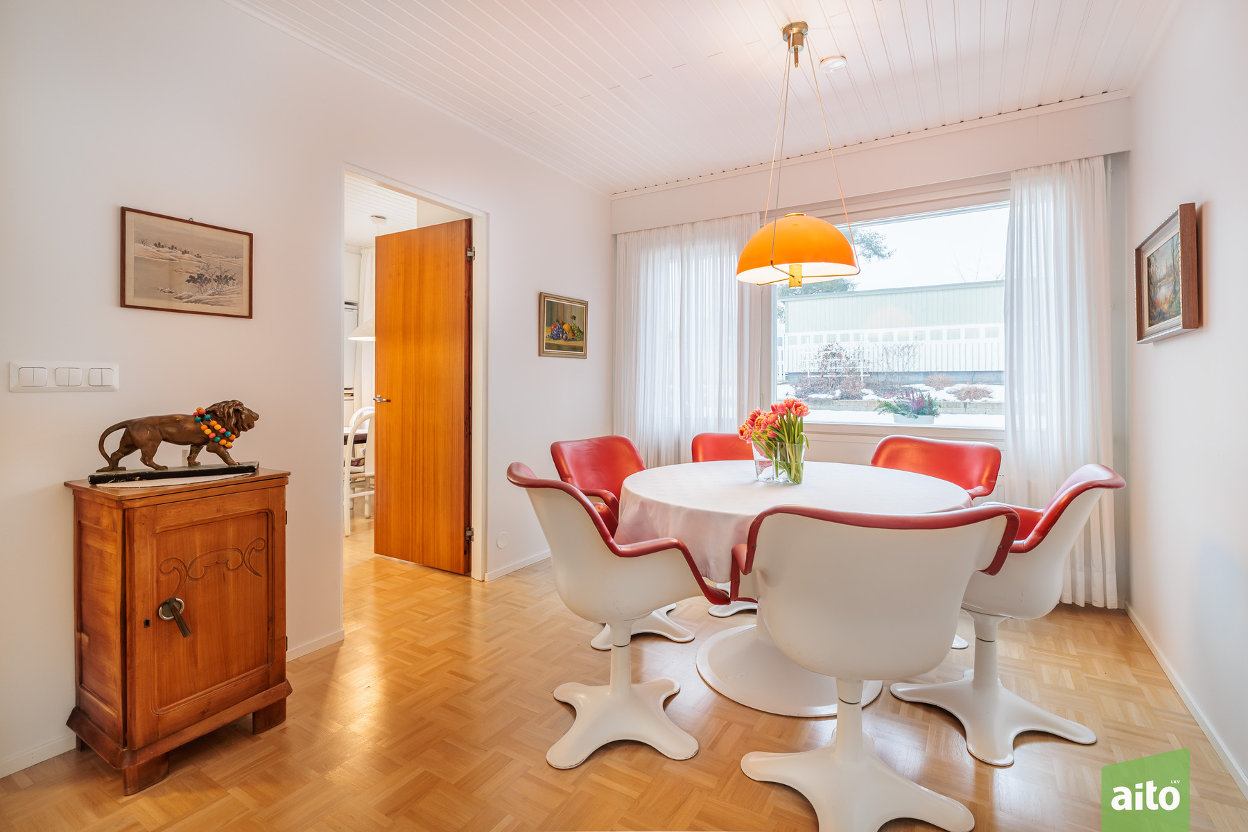 Vuonna 1968 valmistunut talo tarjoaa selkeän ja toimivan pohjaratkaisun: kaksi makuuhuonetta, olohuone, keittiö, ruokailutila sekä sauna- ja kylpyhuonetilat. Lisäksi käytössä ovat tekninen tila, autotalli ja varastotilat, jotka lisäävät asumismukavuutta ja säilytystilaa.