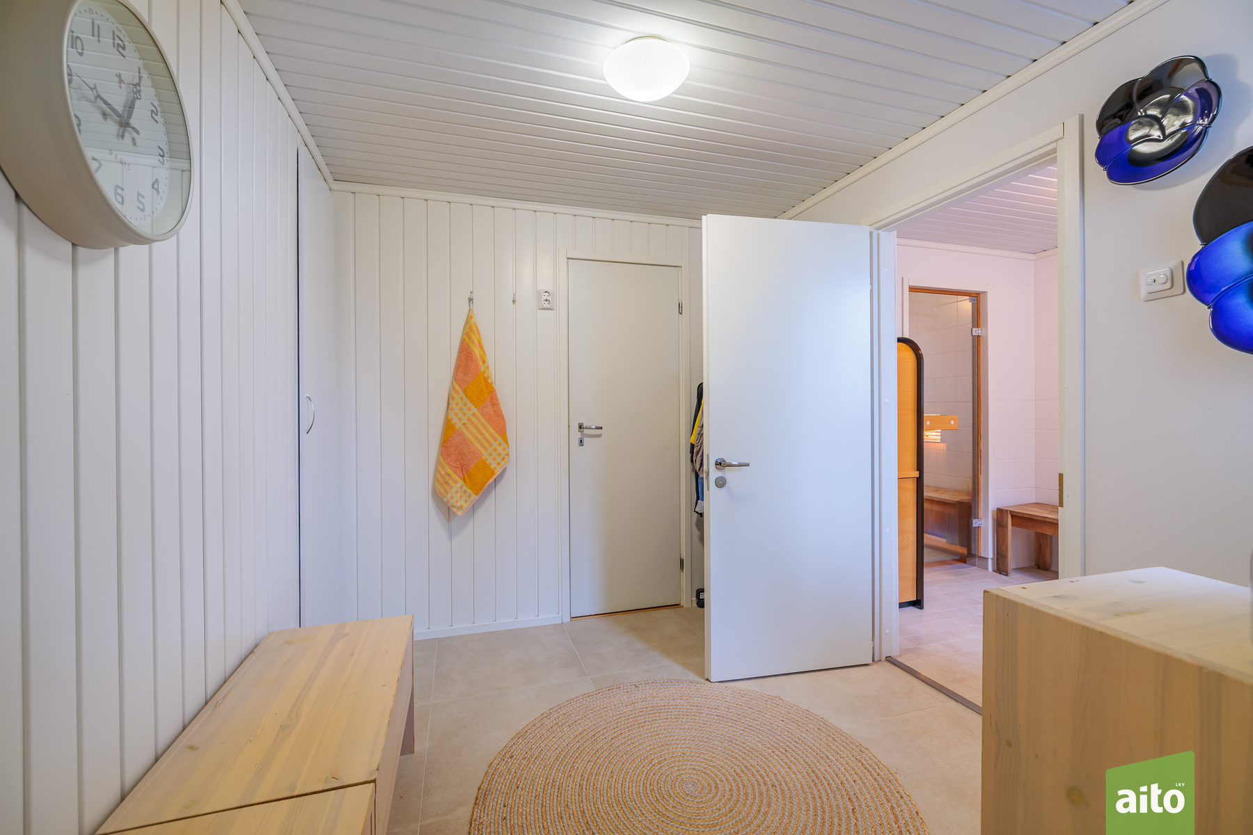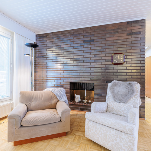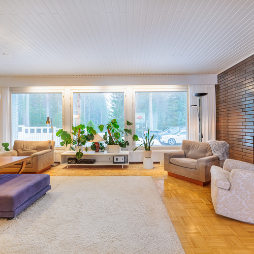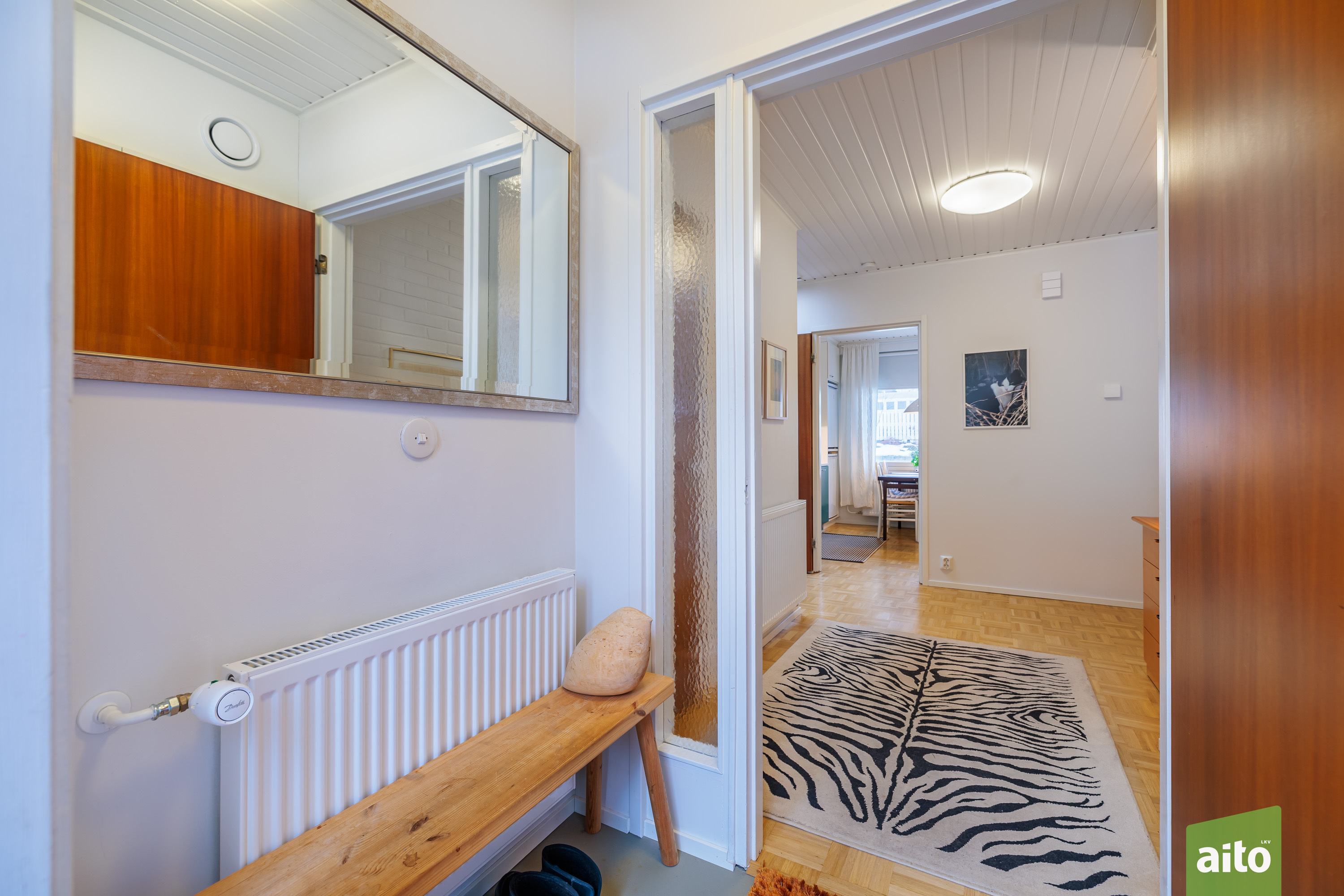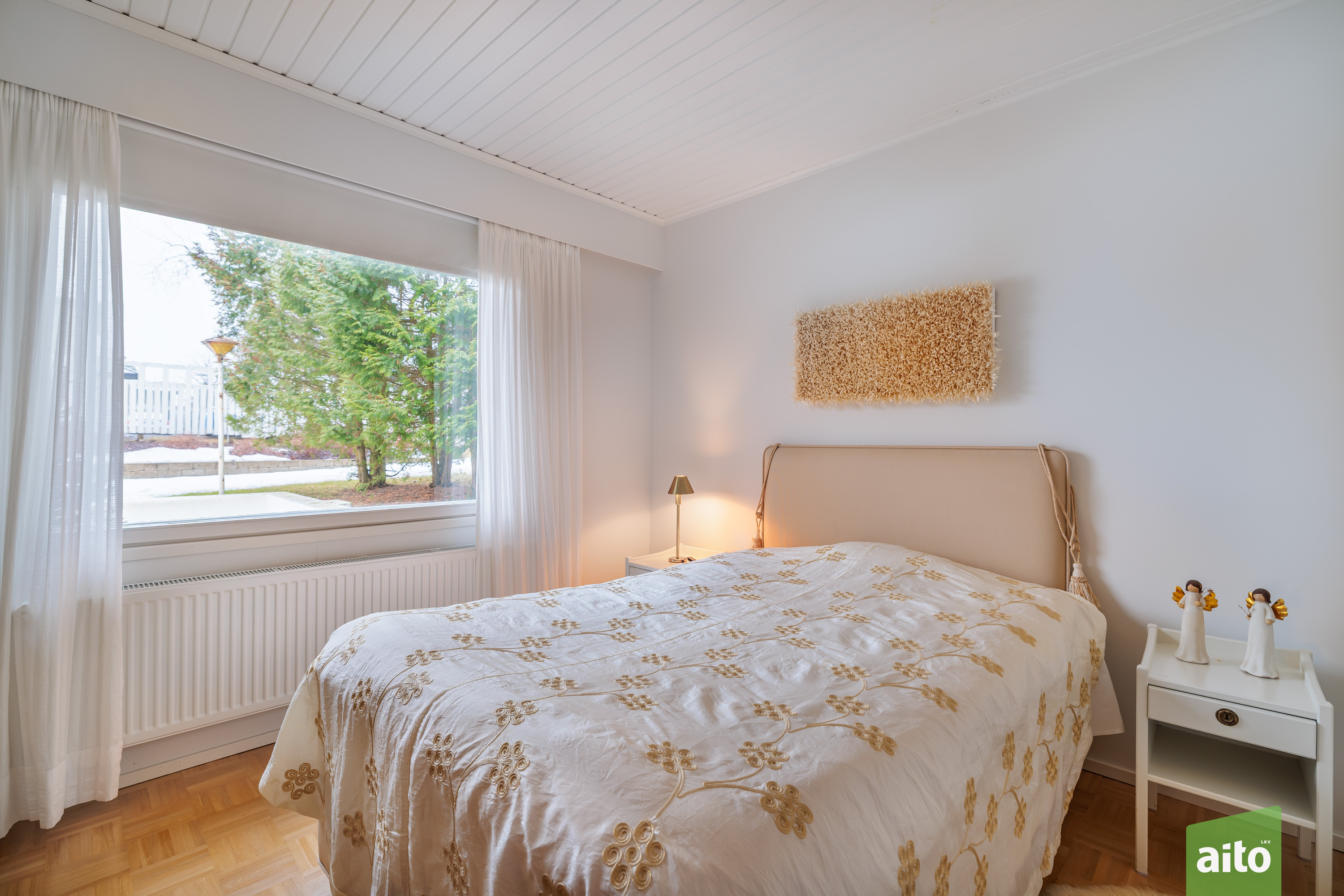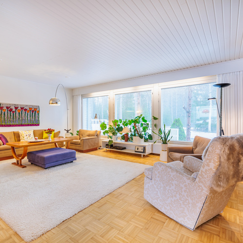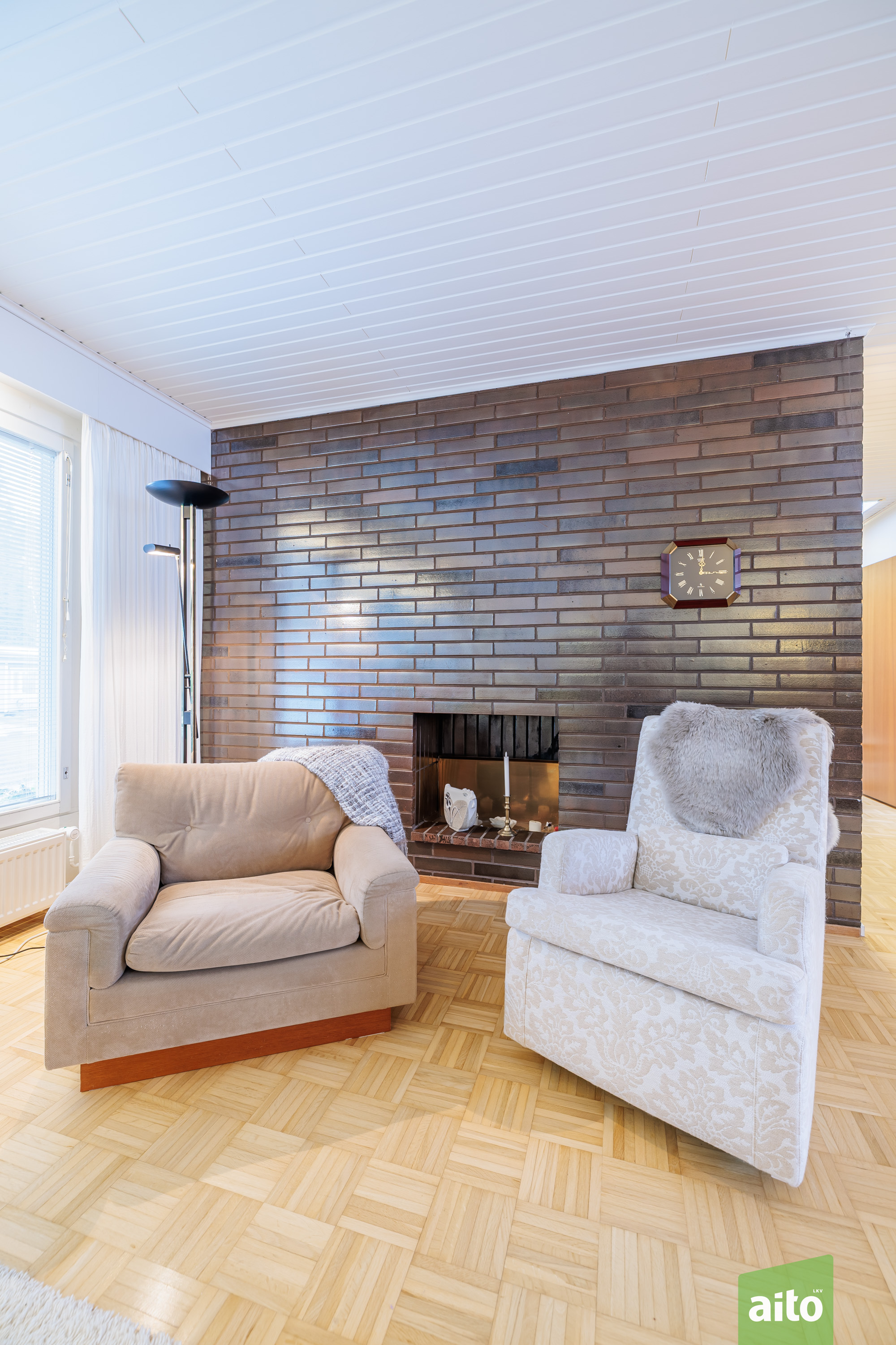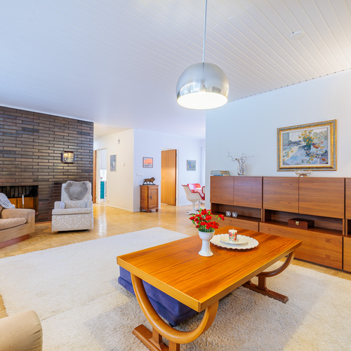Vuonna 1968 valmistunut talo tarjoaa selkeän ja toimivan pohjaratkaisun: kaksi makuuhuonetta, olohuone, keittiö, ruokailutila sekä sauna- ja kylpyhuonetilat. Lisäksi käytössä ovat tekninen tila, autotalli ja varastotilat, jotka lisäävät asumismukavuutta ja säilytystilaa.