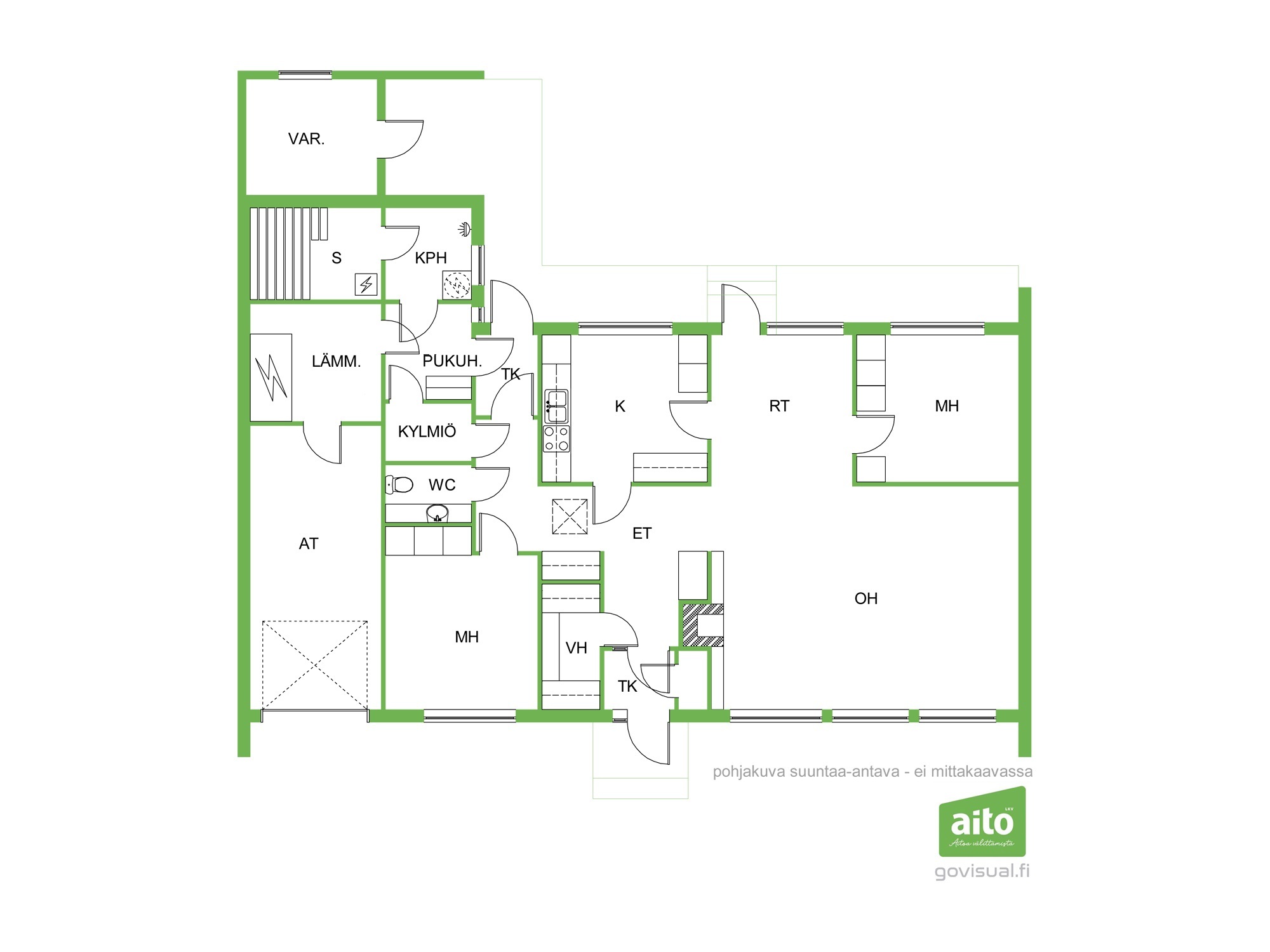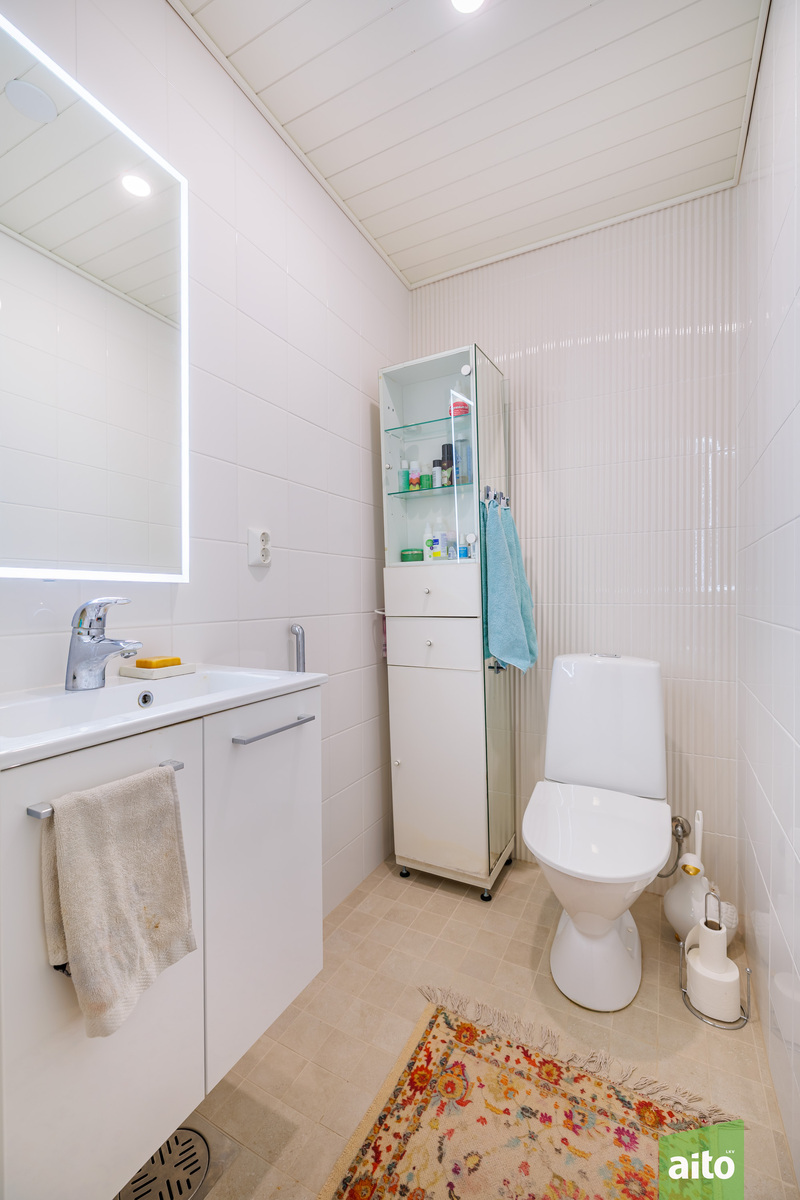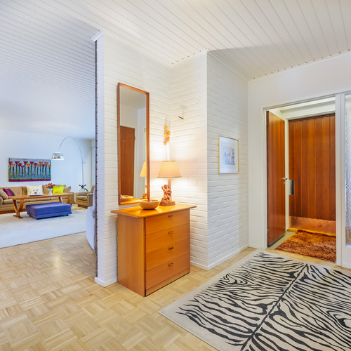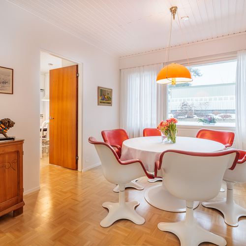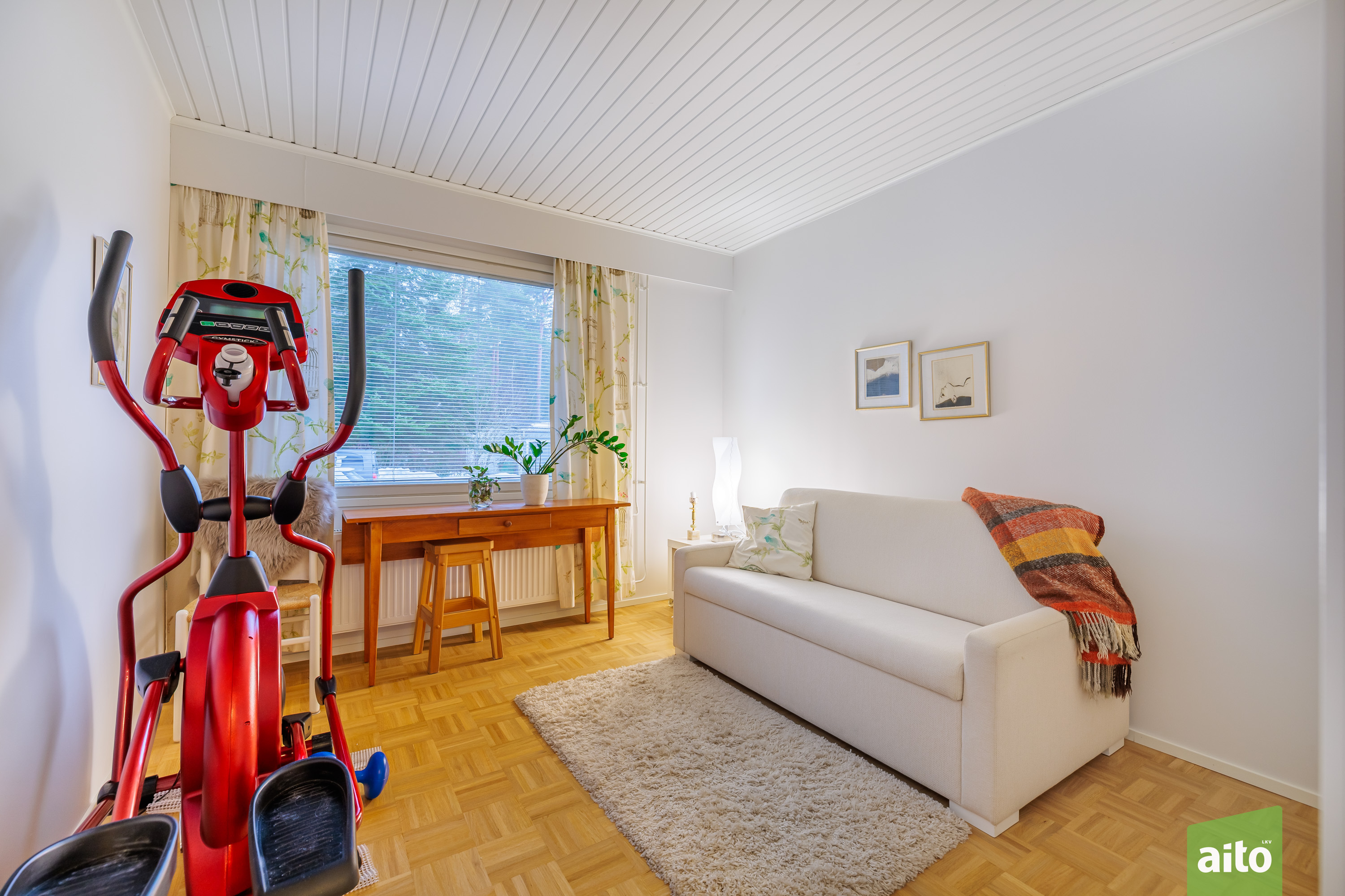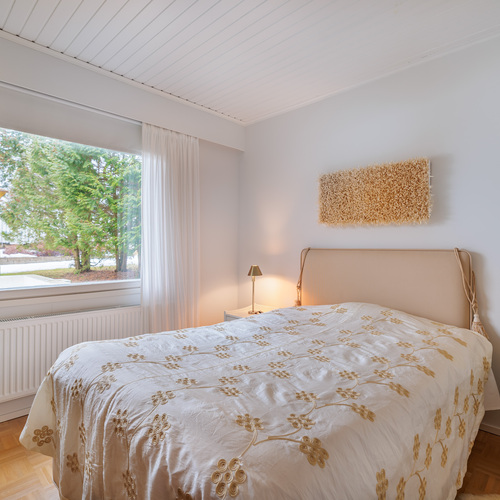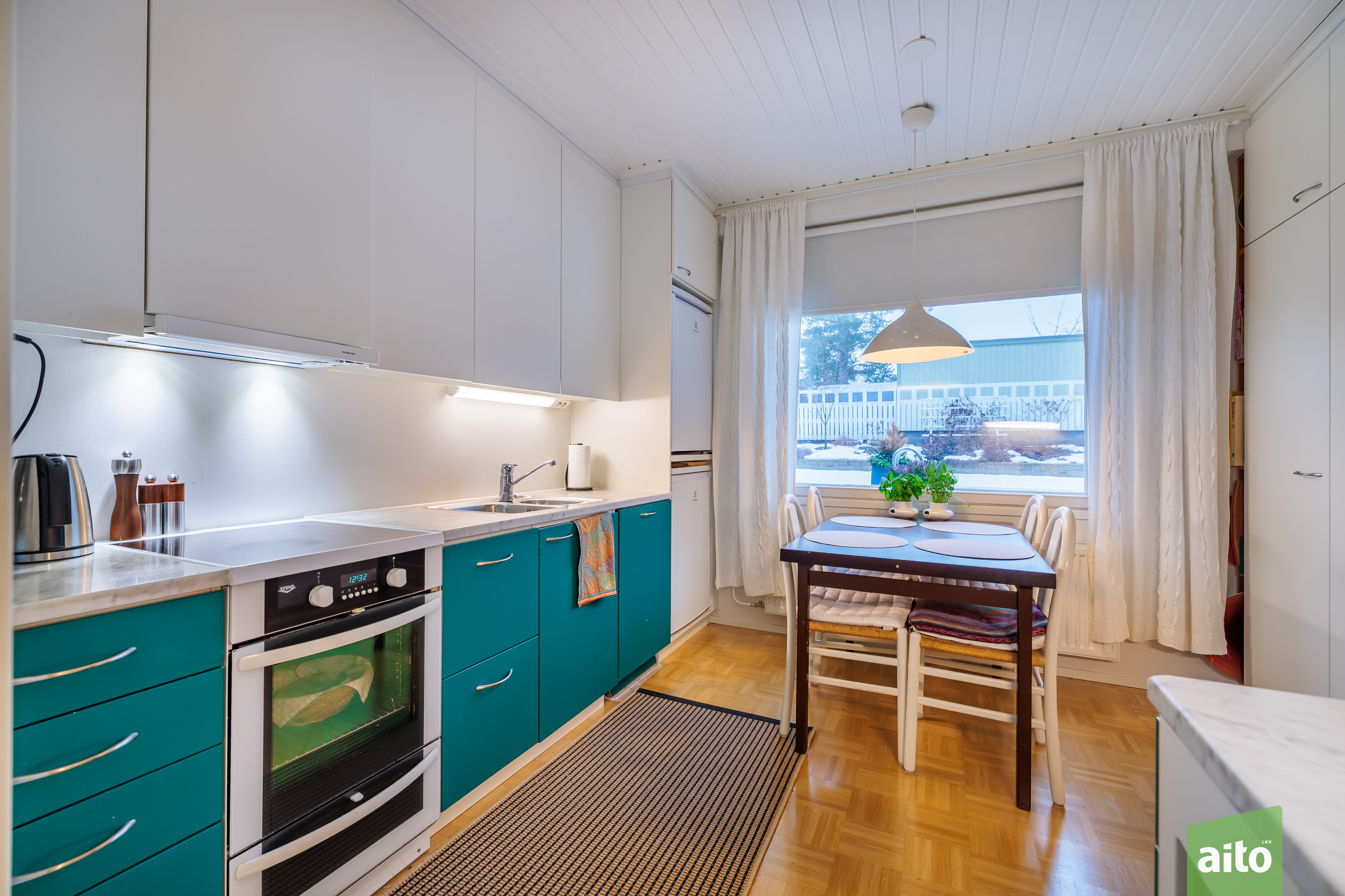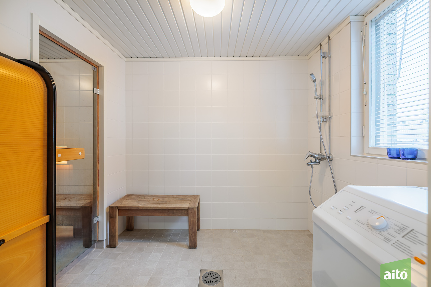 Vuonna 1968 valmistunut talo tarjoaa selkeän ja toimivan pohjaratkaisun: kaksi makuuhuonetta, olohuone, keittiö, ruokailutila sekä sauna- ja kylpyhuonetilat. Lisäksi käytössä ovat tekninen tila, autotalli ja varastotilat, jotka lisäävät asumismukavuutta ja säilytystilaa.