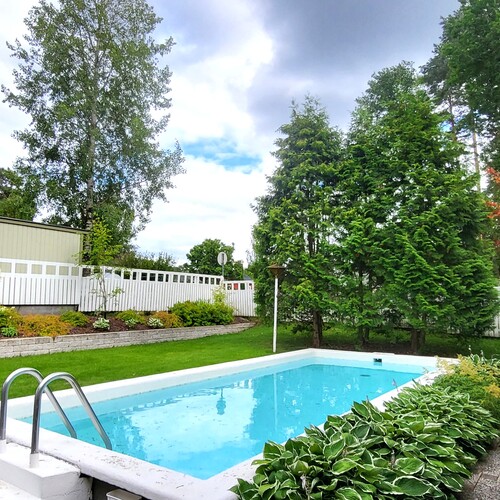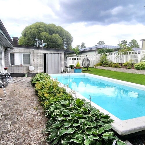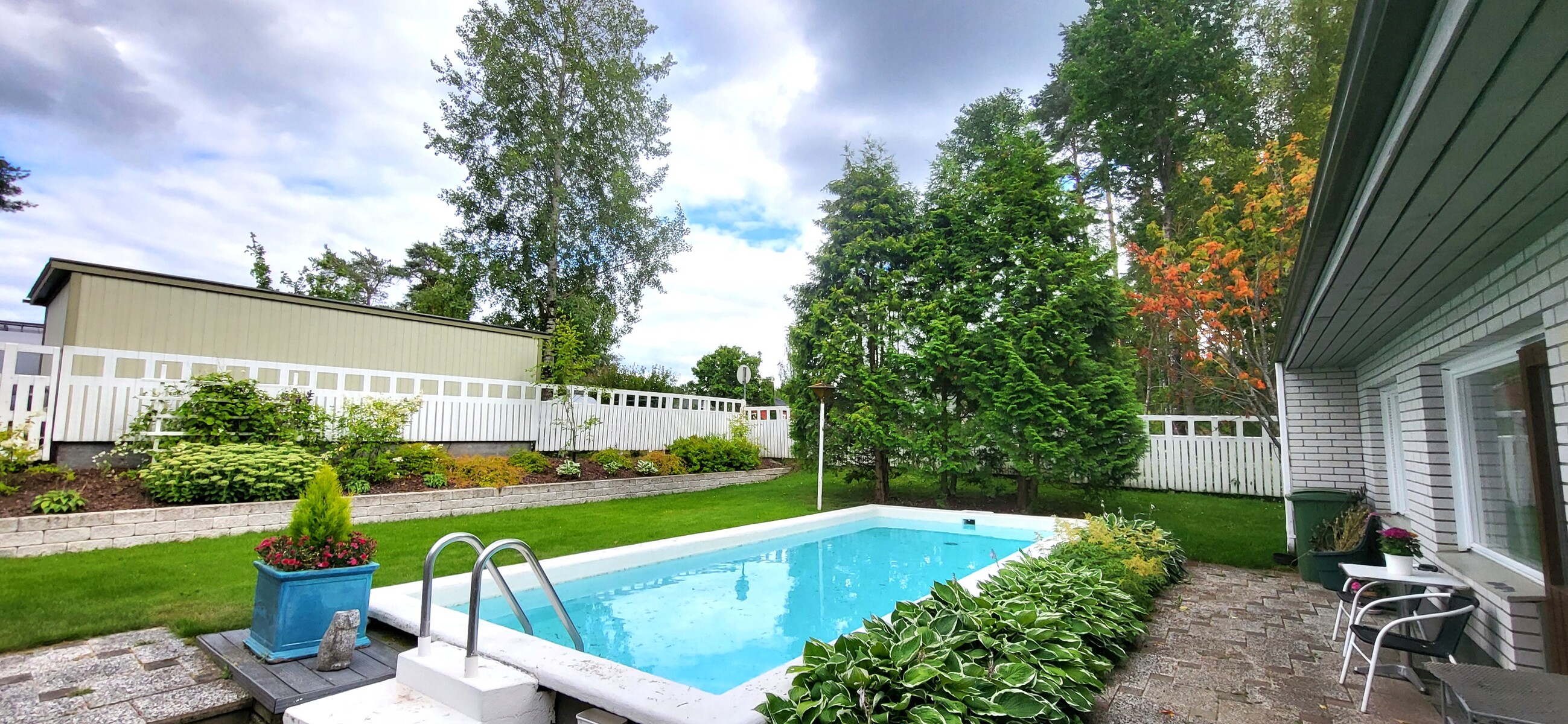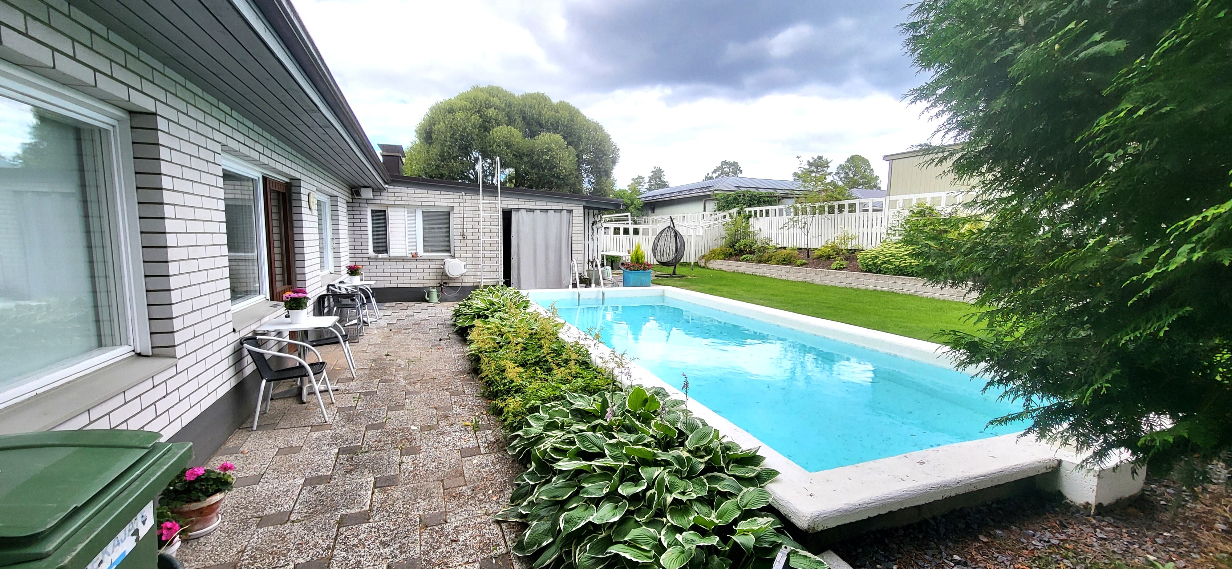 Kokonaisuuden kruunaa harvinainen lisä – oma uima-allas, joka tuo arkeen luksusta ja tekee tästä kodista poikkeuksellisen vaihtoehdon Mikkelin asuntomarkkinoilla. Lisäksi takapihalle on tehty pihasuunnitelma 2021, jossa toteutettu viihtyisän ja toimiva piha-alue.