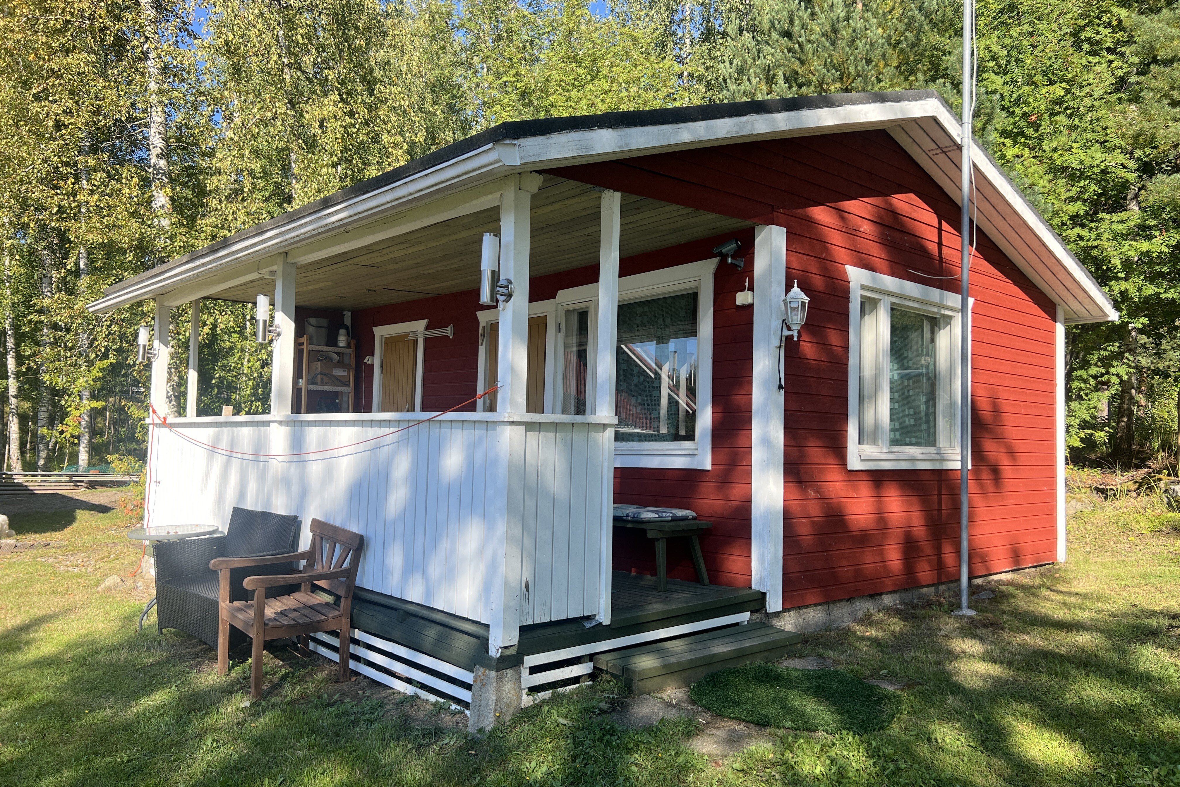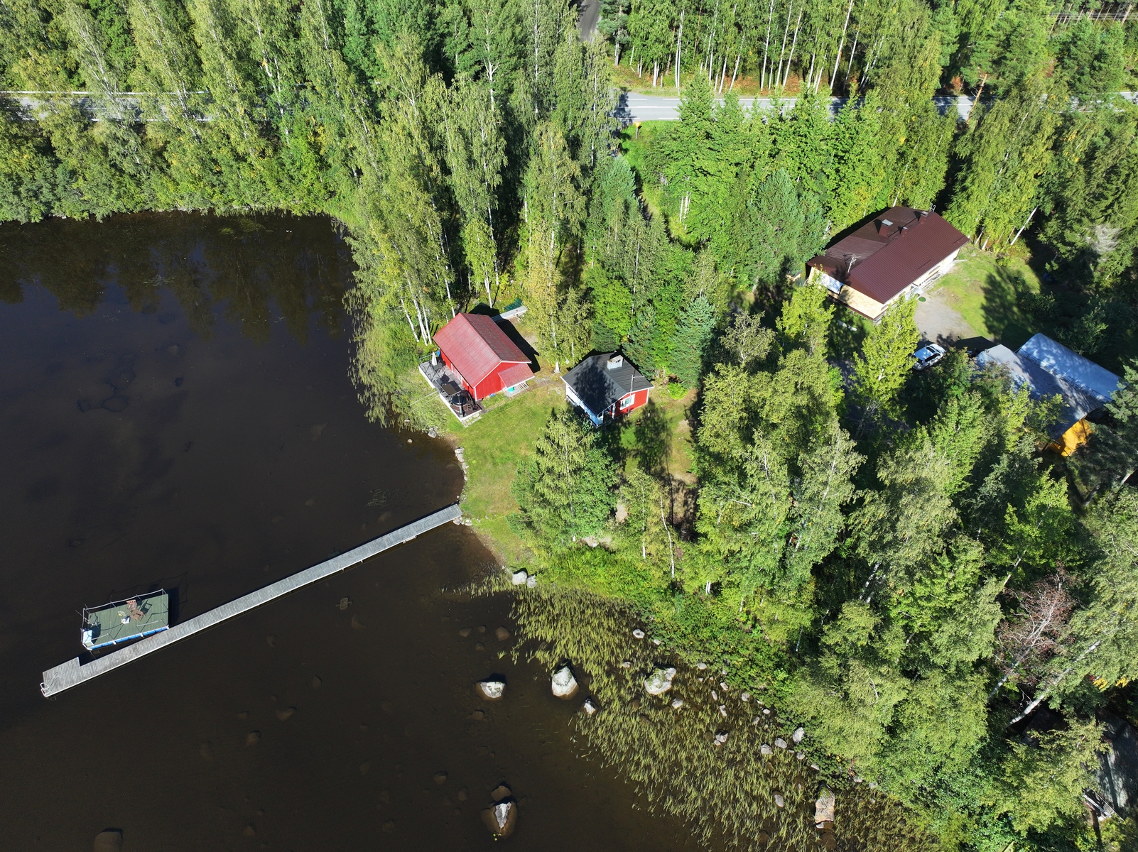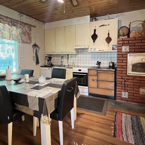 Asuinrakennus on valmistunut vuonna 1978 ja sitä on hoidettu ja päivitetty huolella. Keittiöstä löytyy niin modernit kodinkoneet kuin perinteinen leivinuuni, makuuhuoneita on kaksi ja takkahuone tuo tunnelmaa syksyn iltoihin. Pesuhuone ja sisäsauna remontoitiin kokonaan vuonna 2015, rantaterassi rakennettiin vuonna 2023 ja samana vuonna uusittiin myös takan sydän. Katto on maalattu ja kivijalka pinnoitettu vuonna 2025, joten isot huoltotoimet on tehty valmiiksi tulevia vuosia varten.