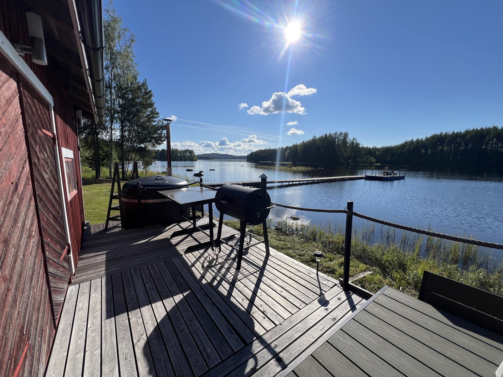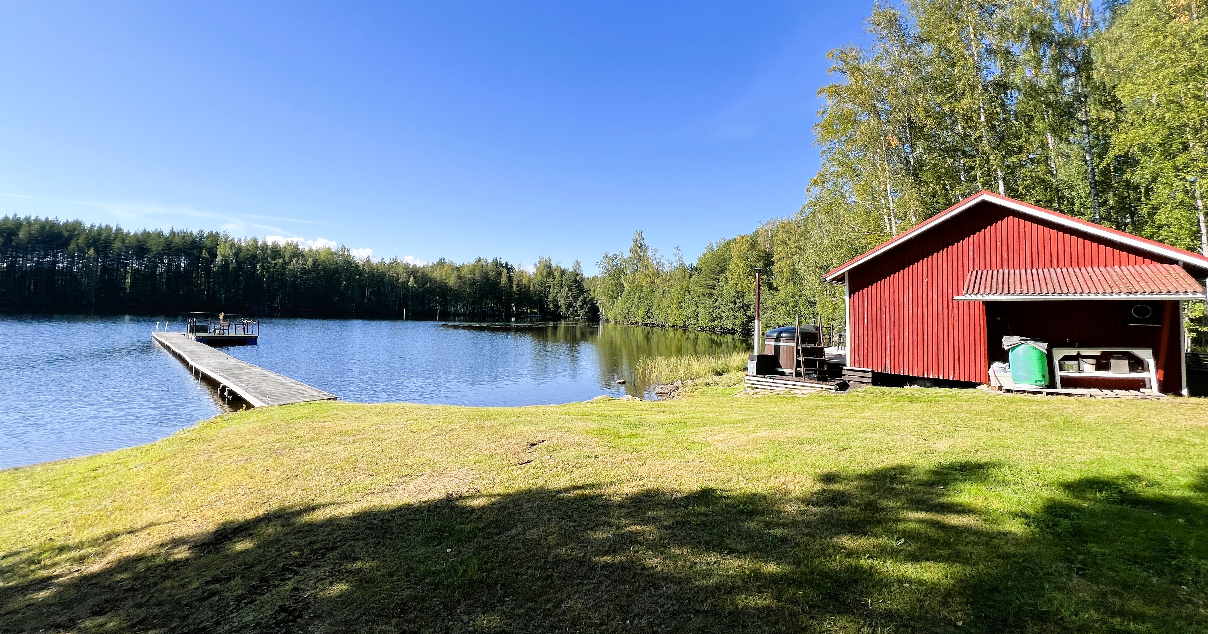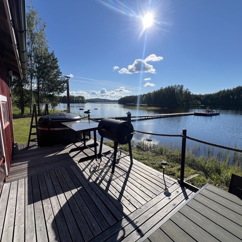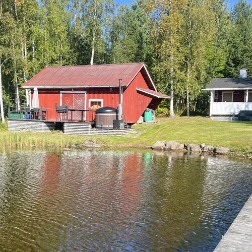 Rannan tuntumassa sijaitseva erillinen saunarakennus tarjoaa aidon järvimökkitunnelman. Saunan terassilta astut suoraan paljuun ja siitä virkistävään järviveteen. Vieressä oleva venevaja ja varastotilat pitävät huolen siitä, että välineille löytyy aina paikkansa. Lisäksi erillinen, korkeaa tilaa tarjoava autotalli palvelee erinomaisesti harrastajaa, kaluston säilyttäjää tai vaikkapa yrittäjää, joka tarvitsee lisätilaa työhönsä.