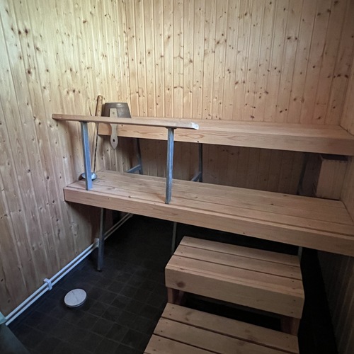 Lauteet, kiuas, ikkuna ulos. Lisäksi erillinen rantasauna.