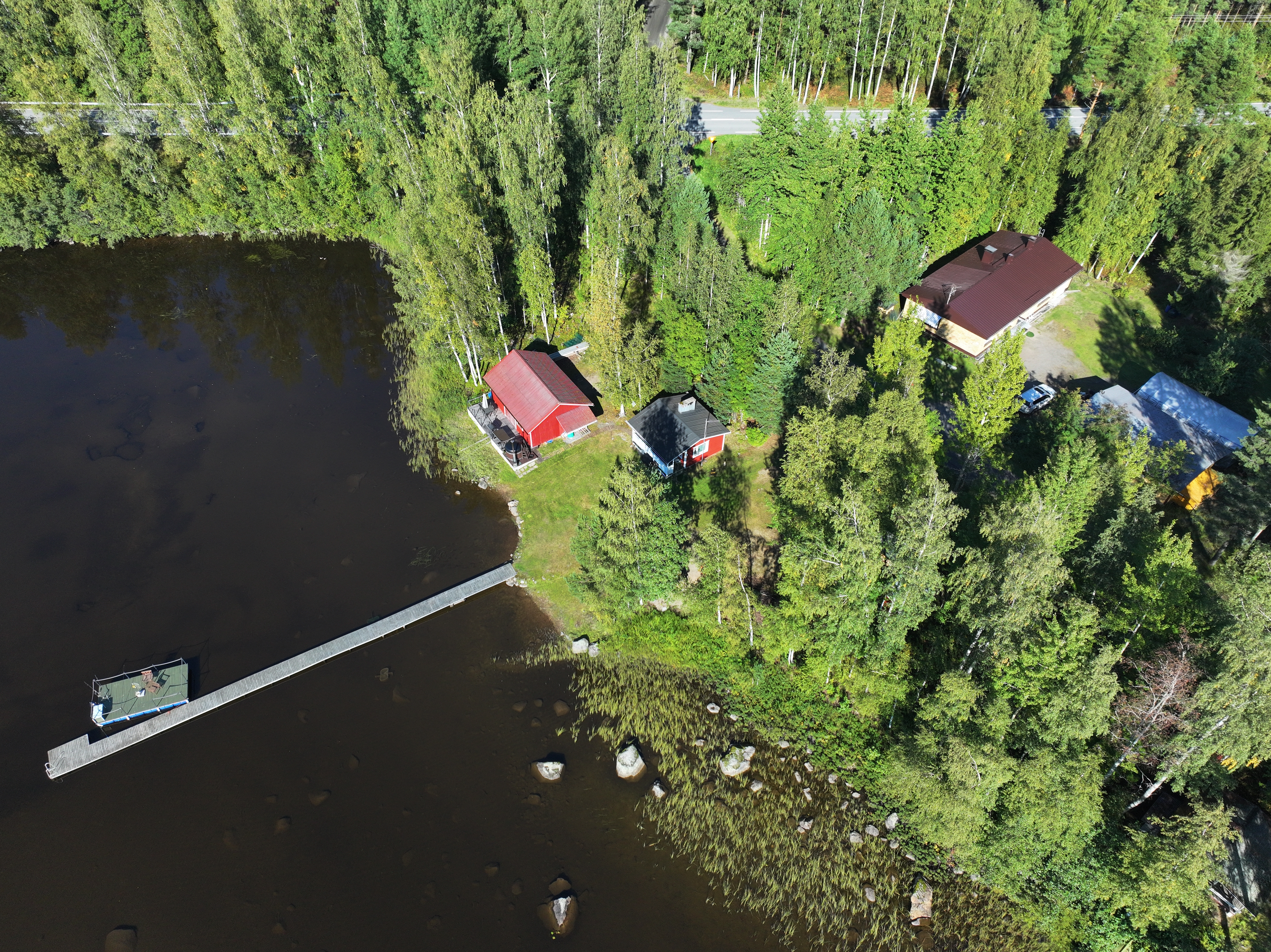 Sijainti on ihanteellinen. Asfalttitie tuo perille asti, ja Hirvensalmen keskustaan ajat autolla tai ajat veneellä vain noin kahdeksan kilometrin matkan. Tämä on paikka, jossa arjen helppous kohtaa mökkielämän vapauden.