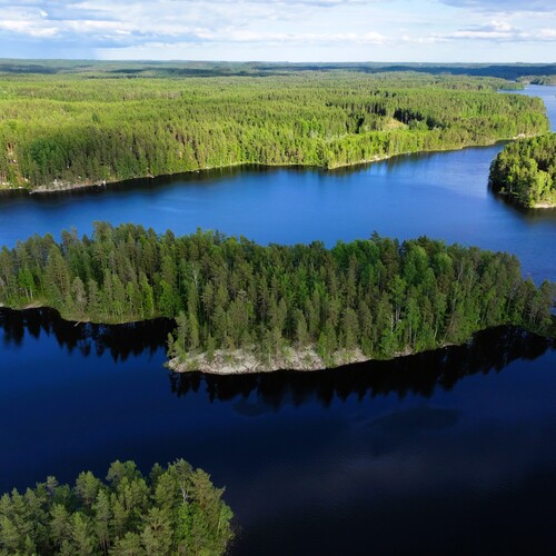 Unelmien saarikohde Puulalla – jykevä käsinveistetty hirsihuvila, 300 m rantaviivaa ja kirkasvetinen Puula!
