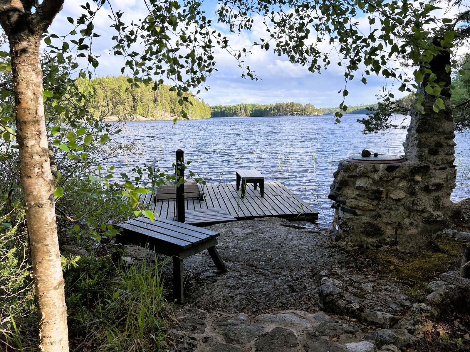 Etelärannalla sijaitseva hiekkapohjainen uimaranta sopii erinomaisesti lapsiperheille. Pohjoisrannalta avautuvat puolestaan jylhemmät näkymät ja tunnelmalliset ilta-auringot. Rantautuminen veneellä onnistuu helposti, ja lyhyt venematka tekee saaresta käytännöllisen myös arjen pikapakoihin.