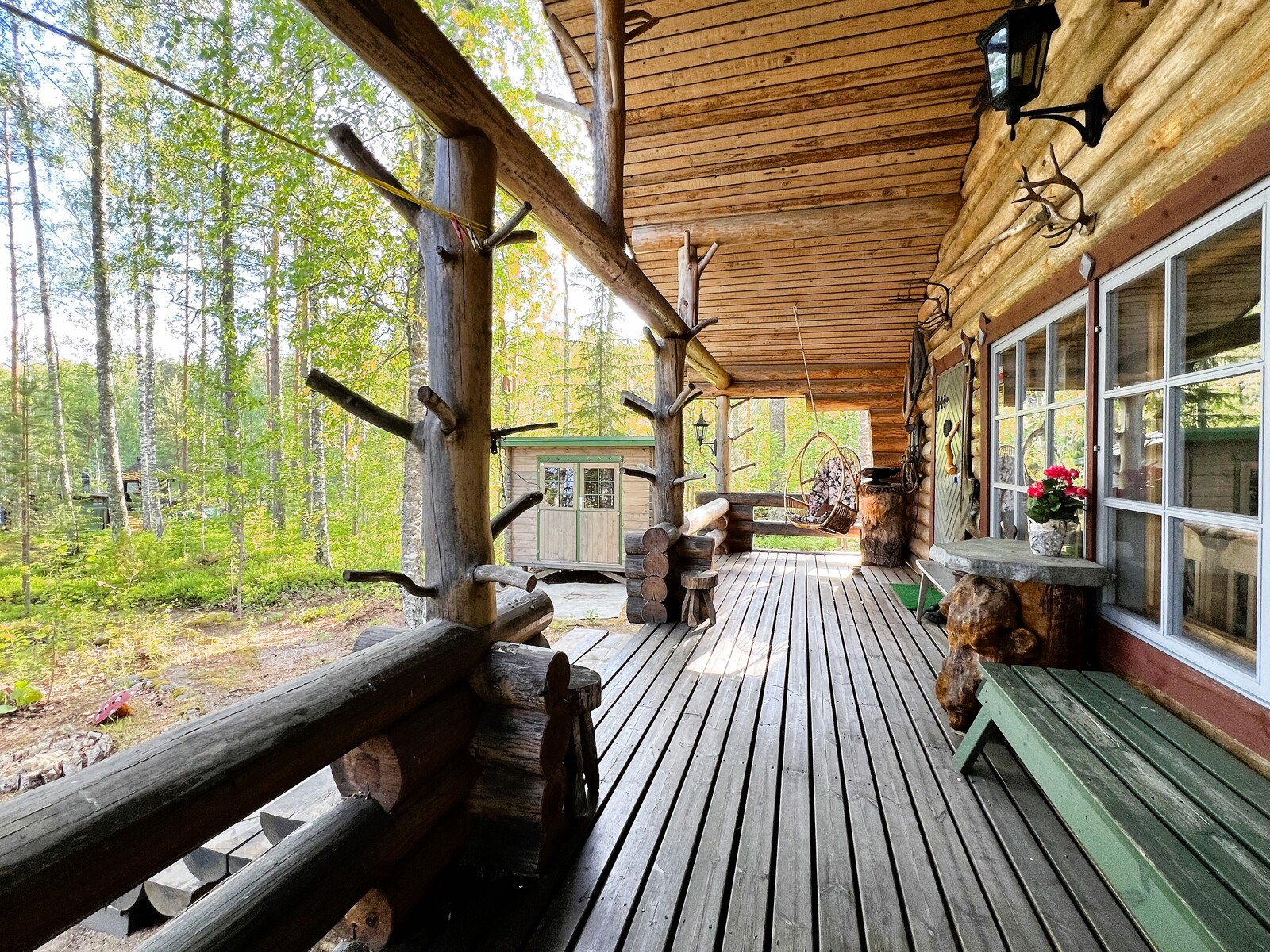 Massiivinen ja näyttävä päärakennus – käsinveistettyä hirttä parhaimmillaan