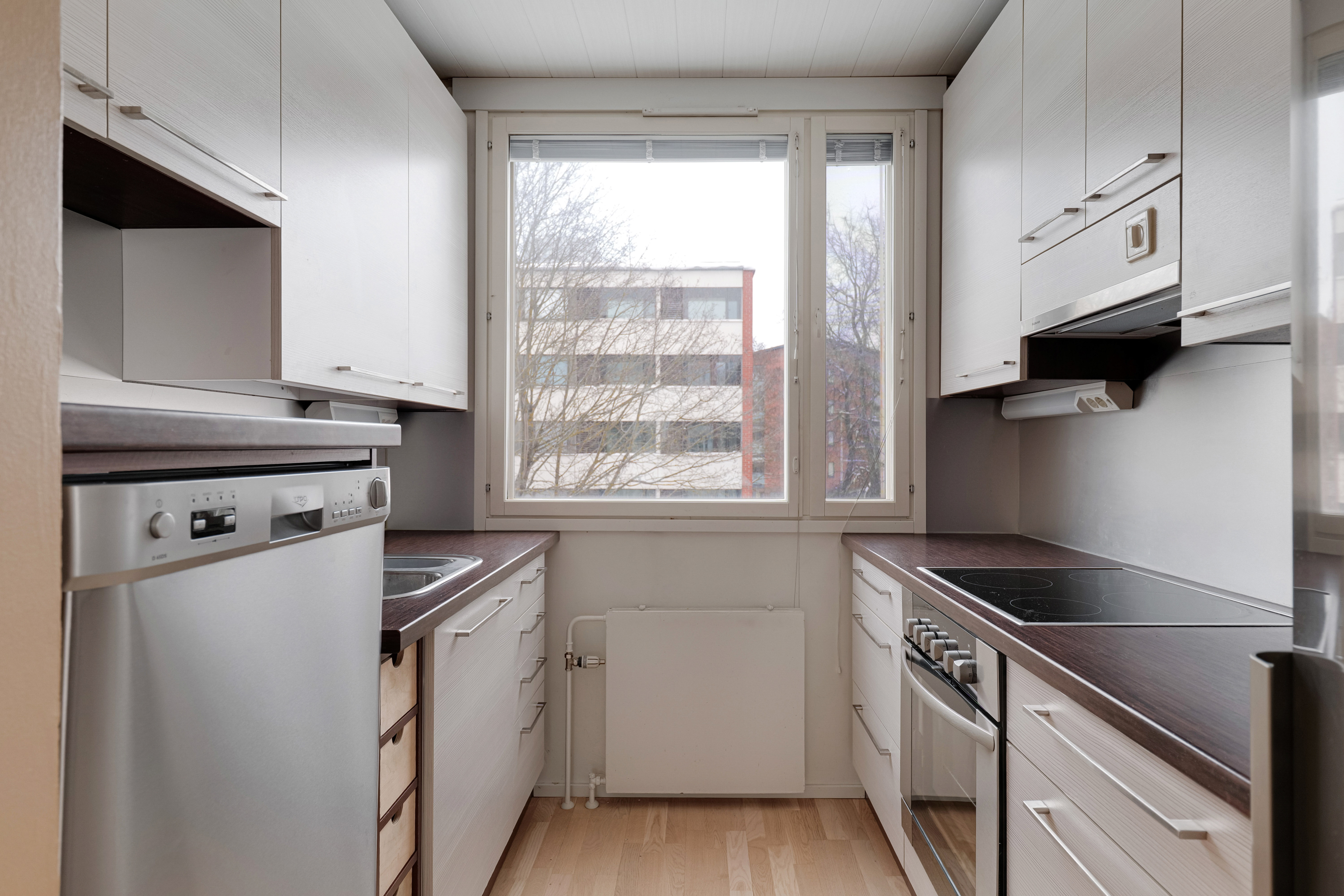 Varusteet: astianpesukone, astianpesukoneliitäntä, keraaminen liesi