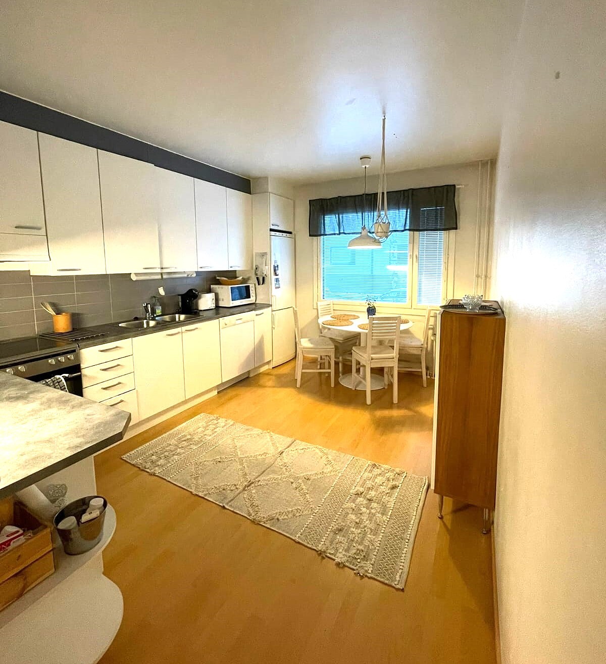 Kylpyhuone on täysin uusittu vuonna 2019 taloyhtiön LVIS-remontin yhteydessä ja vastaa nykypäivän vaatimuksia. Keittiö on vaalea ja valoisa, ja siellä on runsaasti säilytystilaa sekä arkea helpottavat kodinkoneet, kuten astianpesukone.