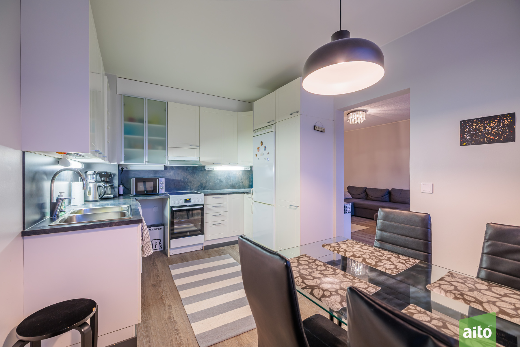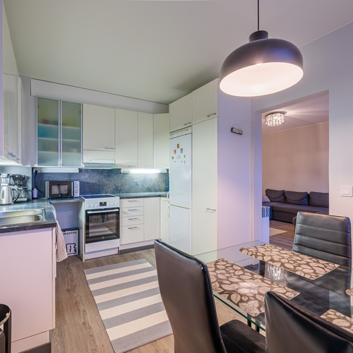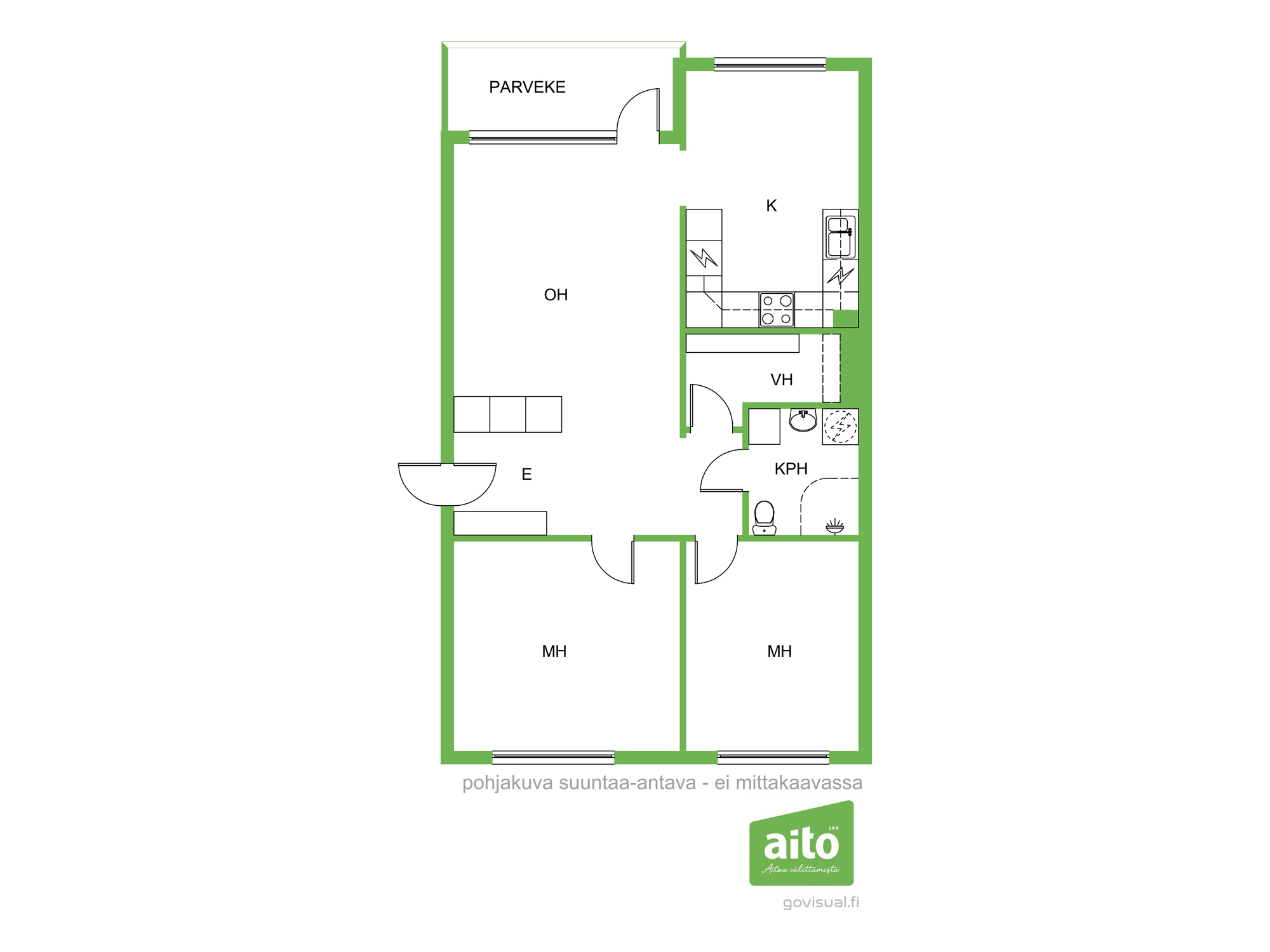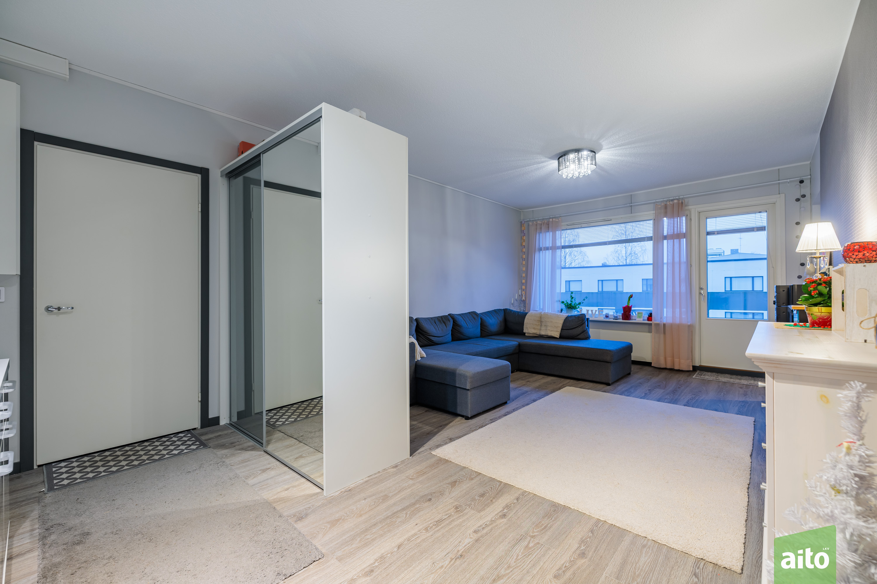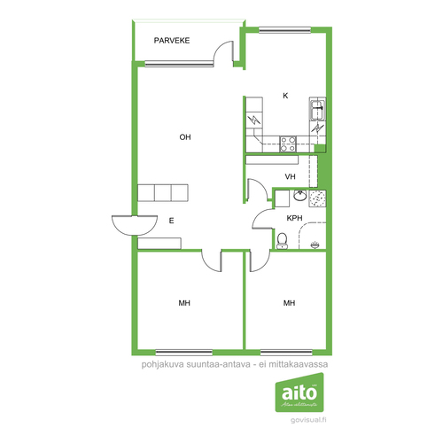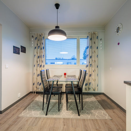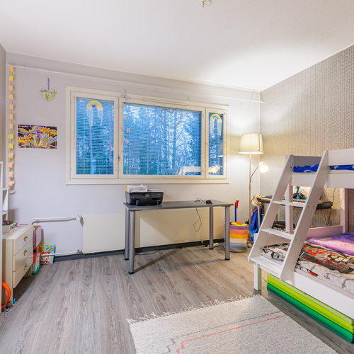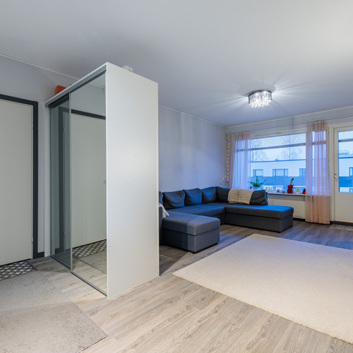 Asunnon selkeä ja käytännöllinen pohjaratkaisu (3h+k) tarjoaa kaksi makuuhuonetta, tilavan olohuoneen, erillisen keittiön sekä harvinaisen ison vaatehuoneen, joka tuo runsaasti säilytystilaa arkeen. Asunnossa on lisäksi parveke, joka lisää asumismukavuutta.