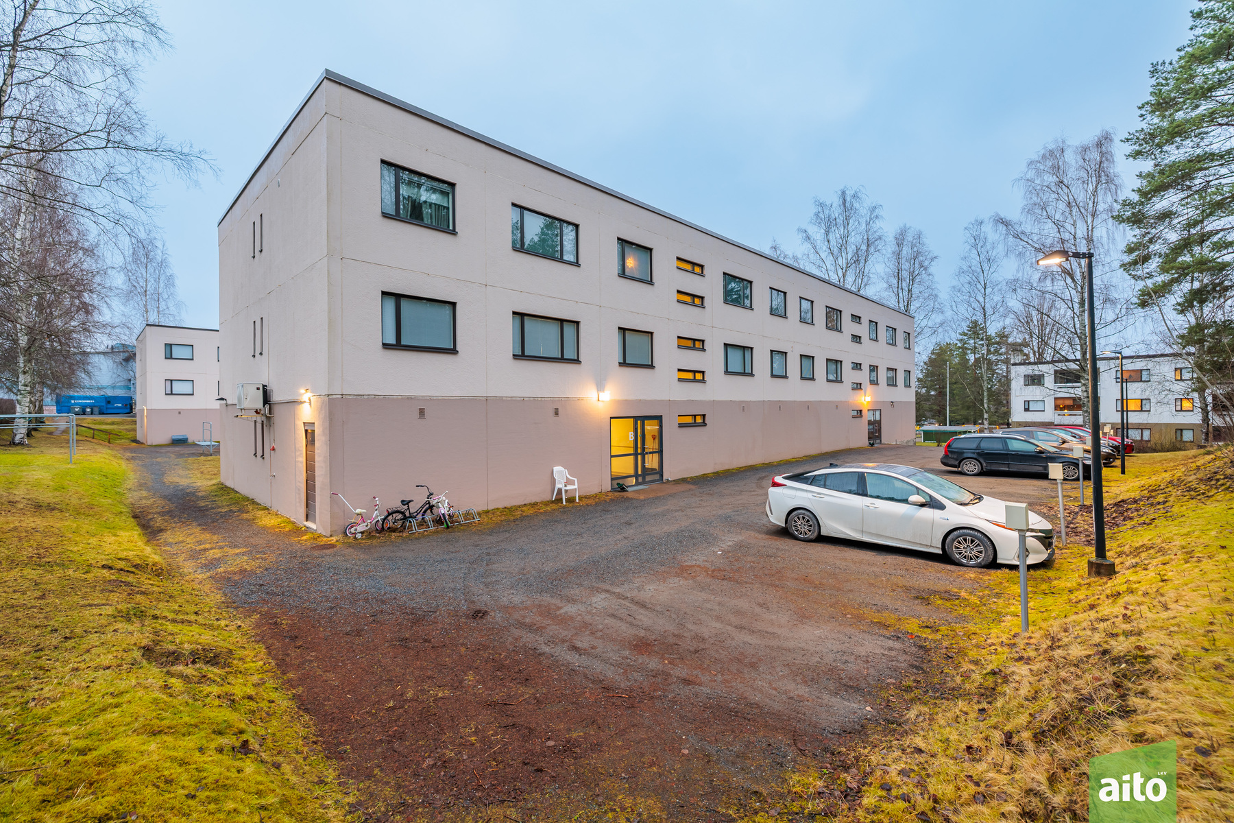 Asunnon käytössä olevat autopaikat: ulkoautopaikka sähköpistokkeella