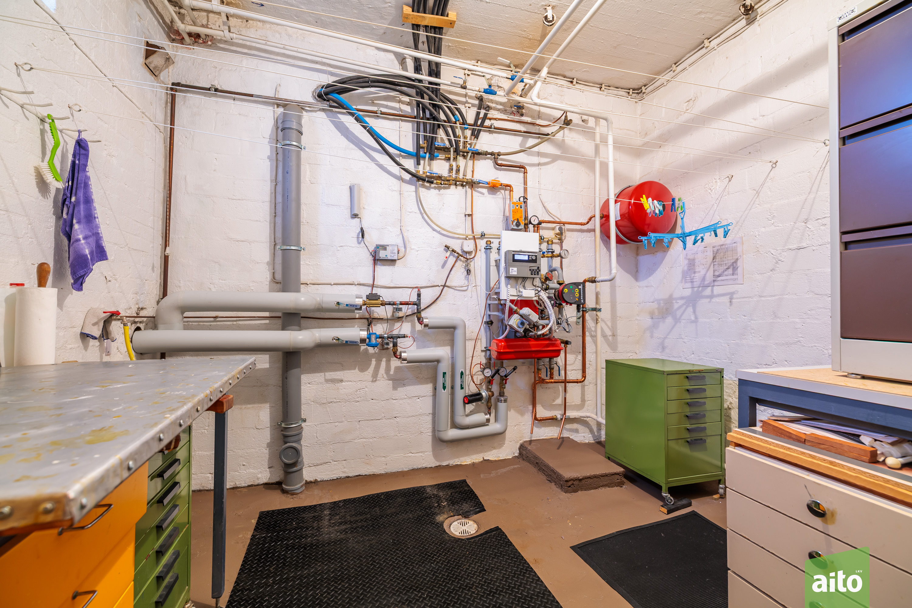 Talossa on sauna, useita wc-tiloja sekä runsaasti säilytystilaa kellari- ja ullakkotiloissa. Lämmitysmuotona on vaivaton ja energiatehokas kaukolämpö. Pihapiiri on tasainen ja helppohoitoinen, ja kiinteistöön kuuluu myös erillinen autotalli- ja varastorakennus.