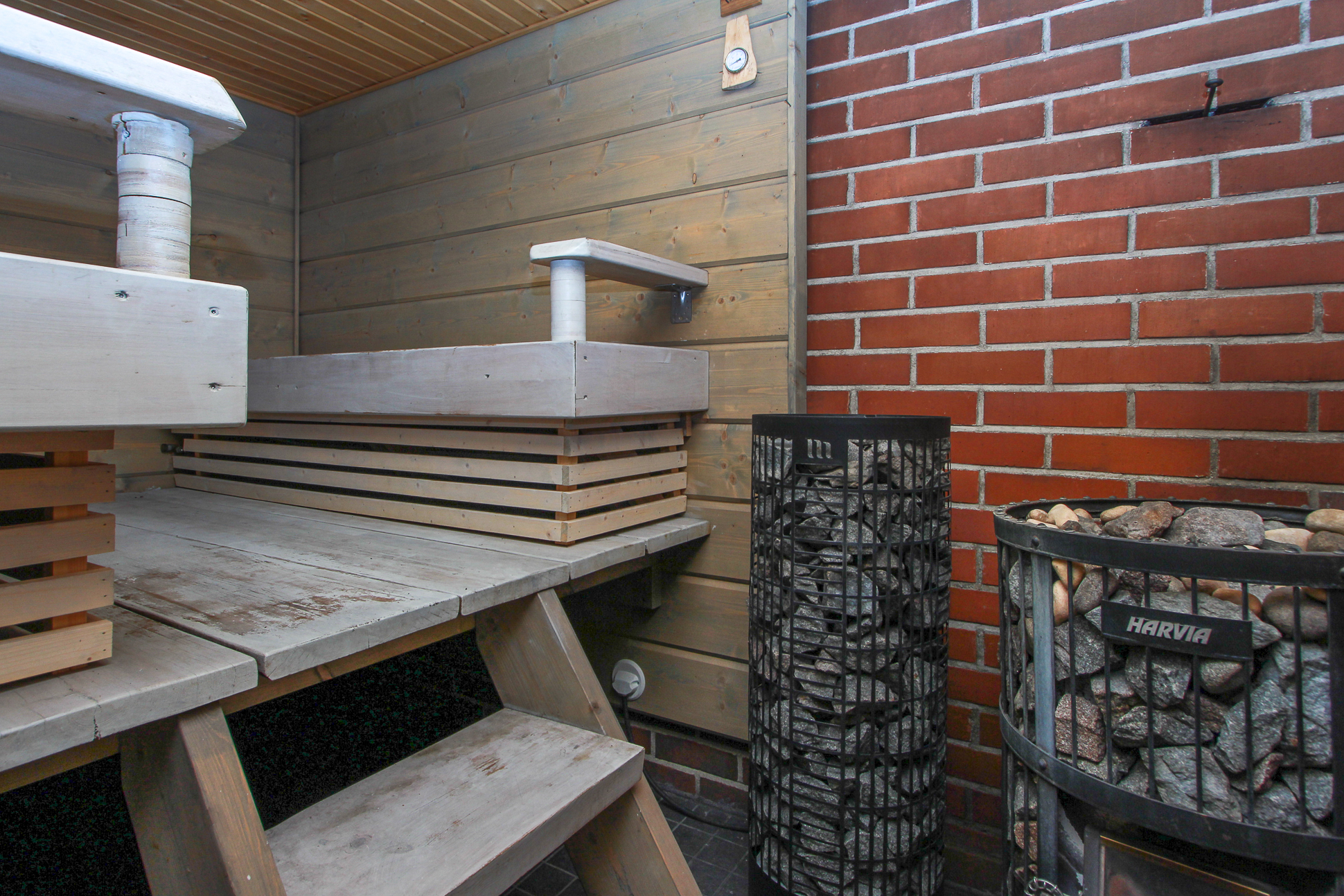 Lämmitysmuotona on huoleton kaukolämpö. Lisäksi talossa on lämmin autotalli.