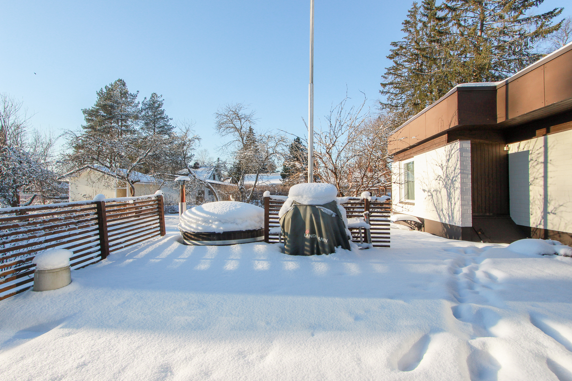 Oma 1350 m²:n tontti antaa runsaasti tilaa pihapiirin kehittämiseen, leikkeihin tai puutarhanhoitoon.