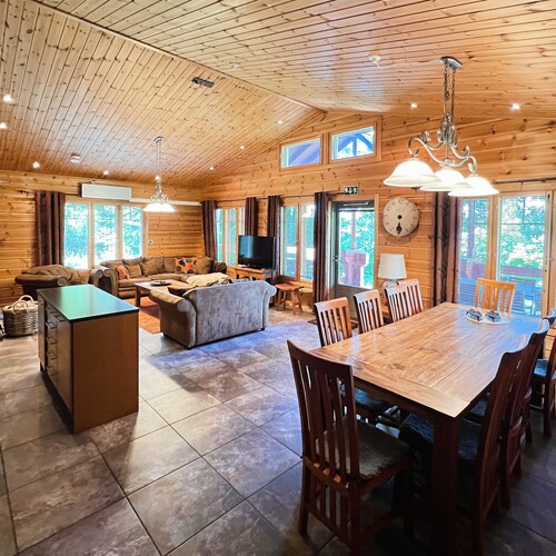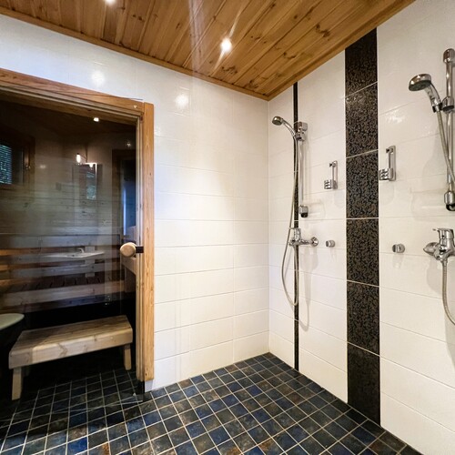 Guests can unwind in large and smaller lakeside saunas, including an impressive main sauna and two smaller ones, perfect for relaxation. The expansive private shoreline includes multiple large piers and sandy beaches, ideal for swimming, boating, and fishing.