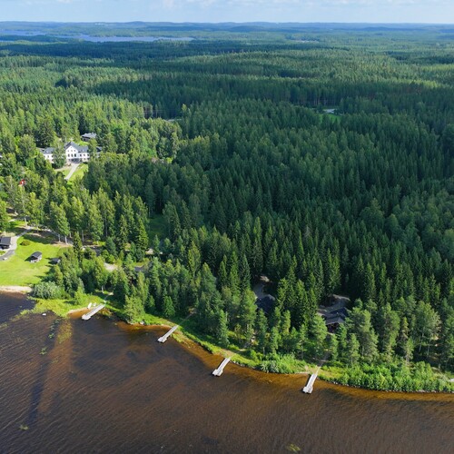 Set on over 8 hectares of serene lakeside land with a private shoreline on Lake Puula, this estate features accommodations for up to 80 guests. The main manor house blends historic charm with modern comforts, offering cozy rooms for about 40 guests. Additionally, there are four fully-equipped, high-end lakeside villas, each accommodating six guests, plus one villa for ten guests—all boasting stunning lake views.