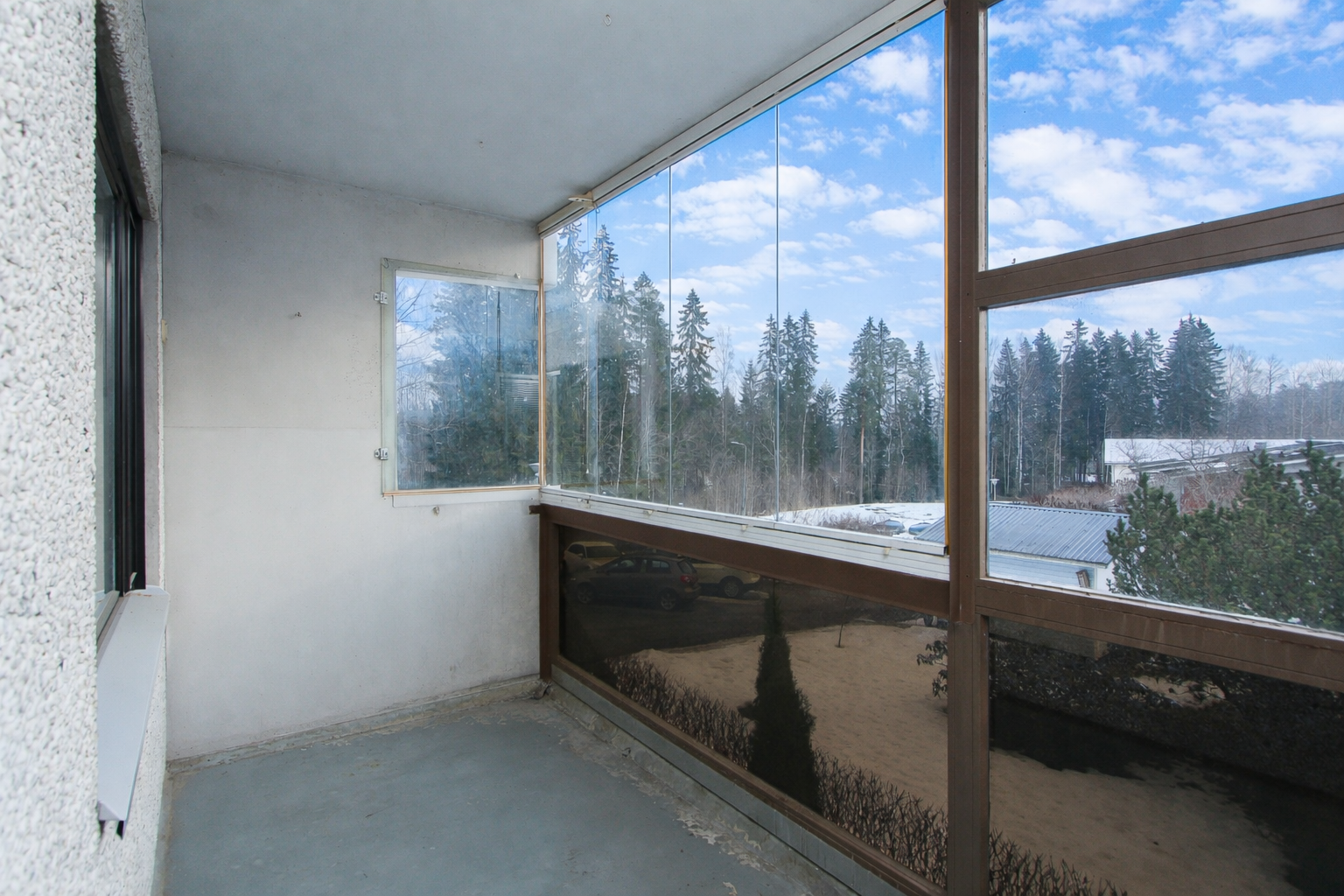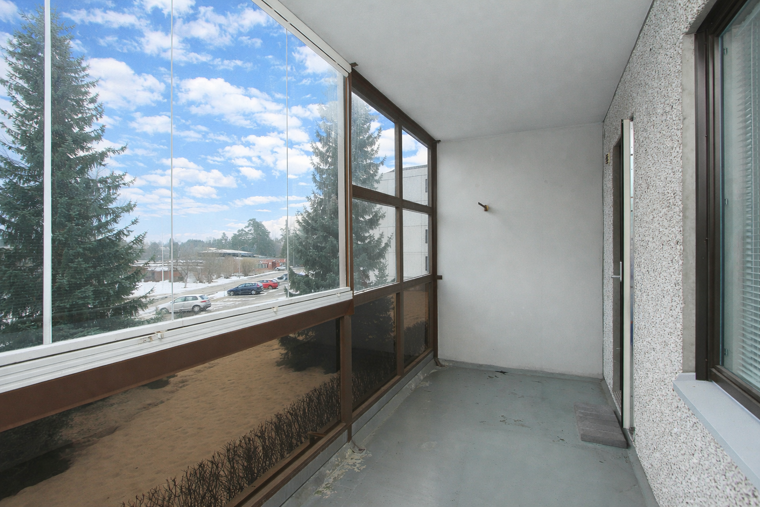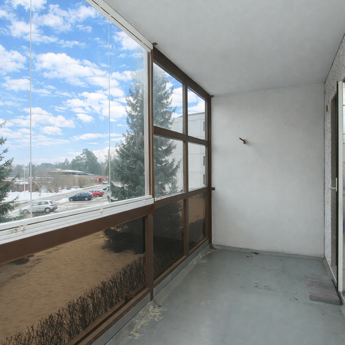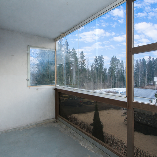 Tilava lasitettu parveke.