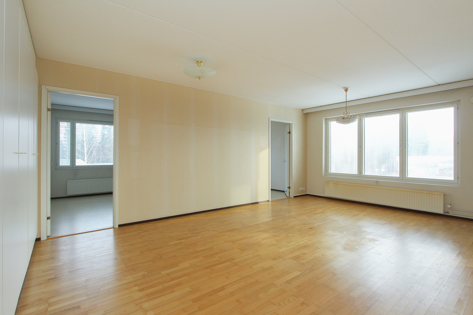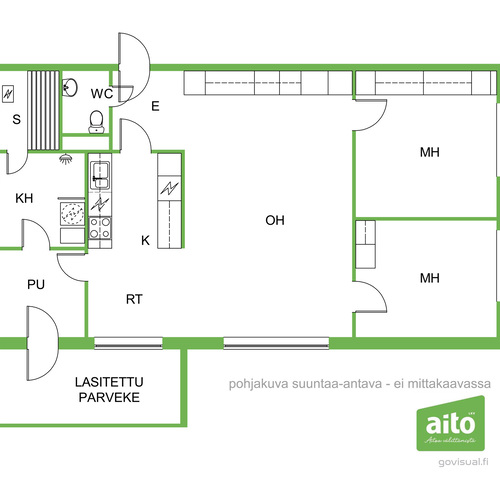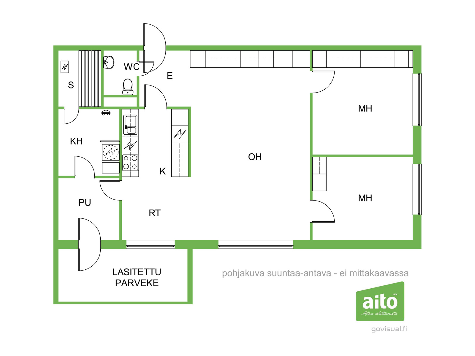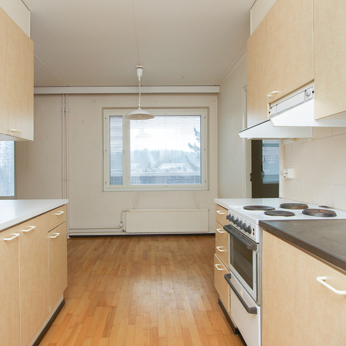 Asunnon sydämenä toimii iso olohuone. Lasitettu iso parveke tuo mukavasti lisätilaa ja toimii viihtyisänä oleskelupaikkana aikaisesta keväästä pitkälle syksyyn. Kaksi reilunkokoista makuuhuonetta tarjoavat hyvin tilaa niin lapsiperheelle kuin pariskunnalle. Keittiö ja ruokailutila sijoittuvat luontevasti olohuoneen läheisyyteen. Arjen mukavuutta lisää oma sauna. Keittiön vieressä on erillinen pukuhuone, mikä sopii myös vaikkapa etätyöpisteeksi.