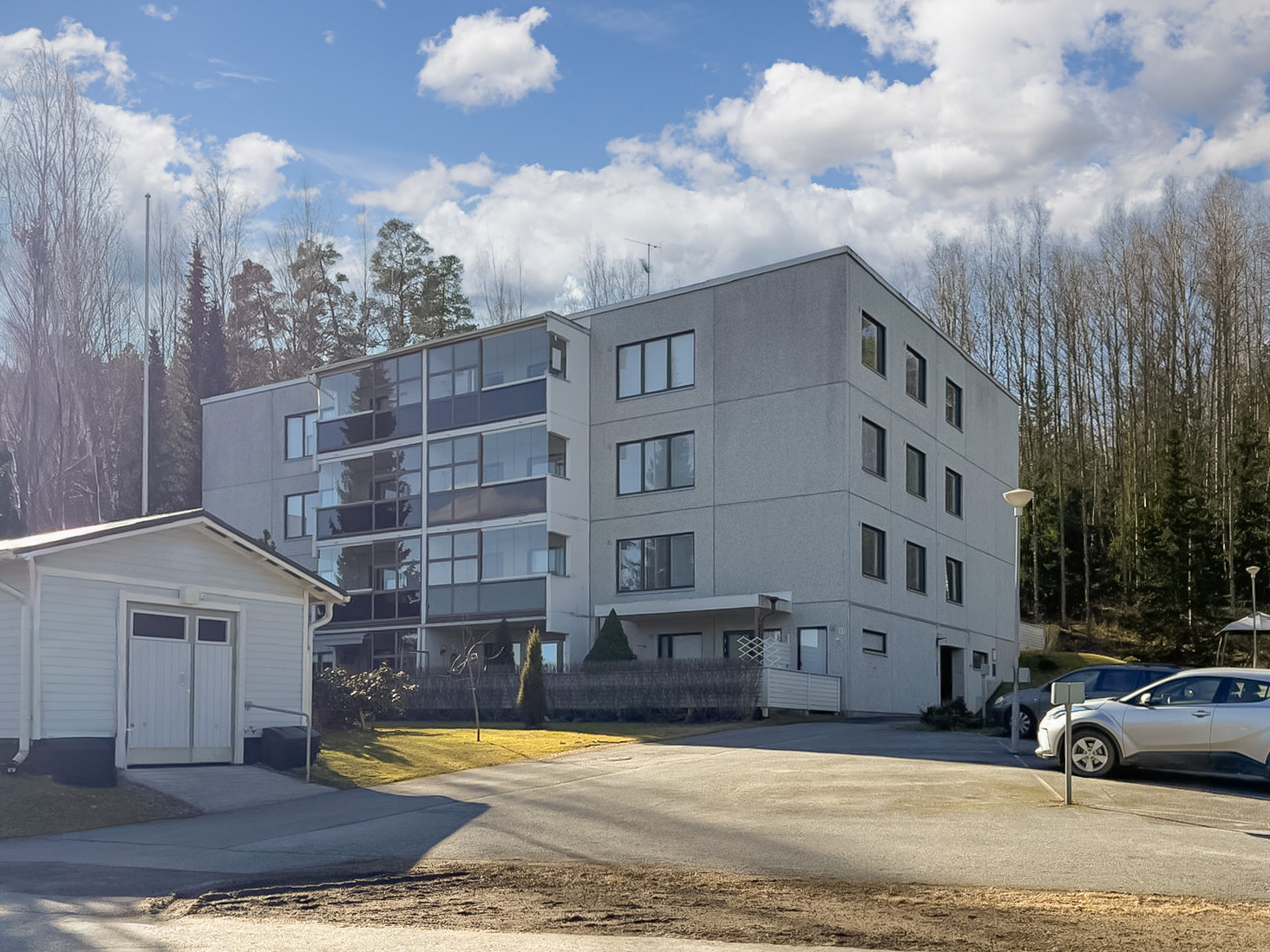 Asuntokaupan yhteydessä on mahdollisuus ostaa erillinen lukittava autokatospaikka omina osakkeina hintaan 3.000 euroa.