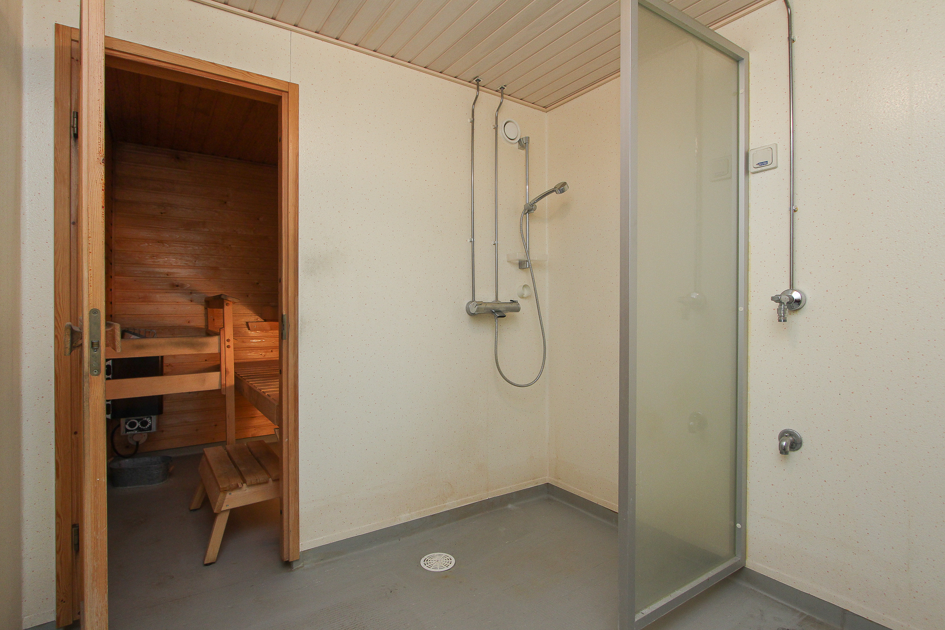 Lauteet, sähkökiuas, lattiassa muovimatto.