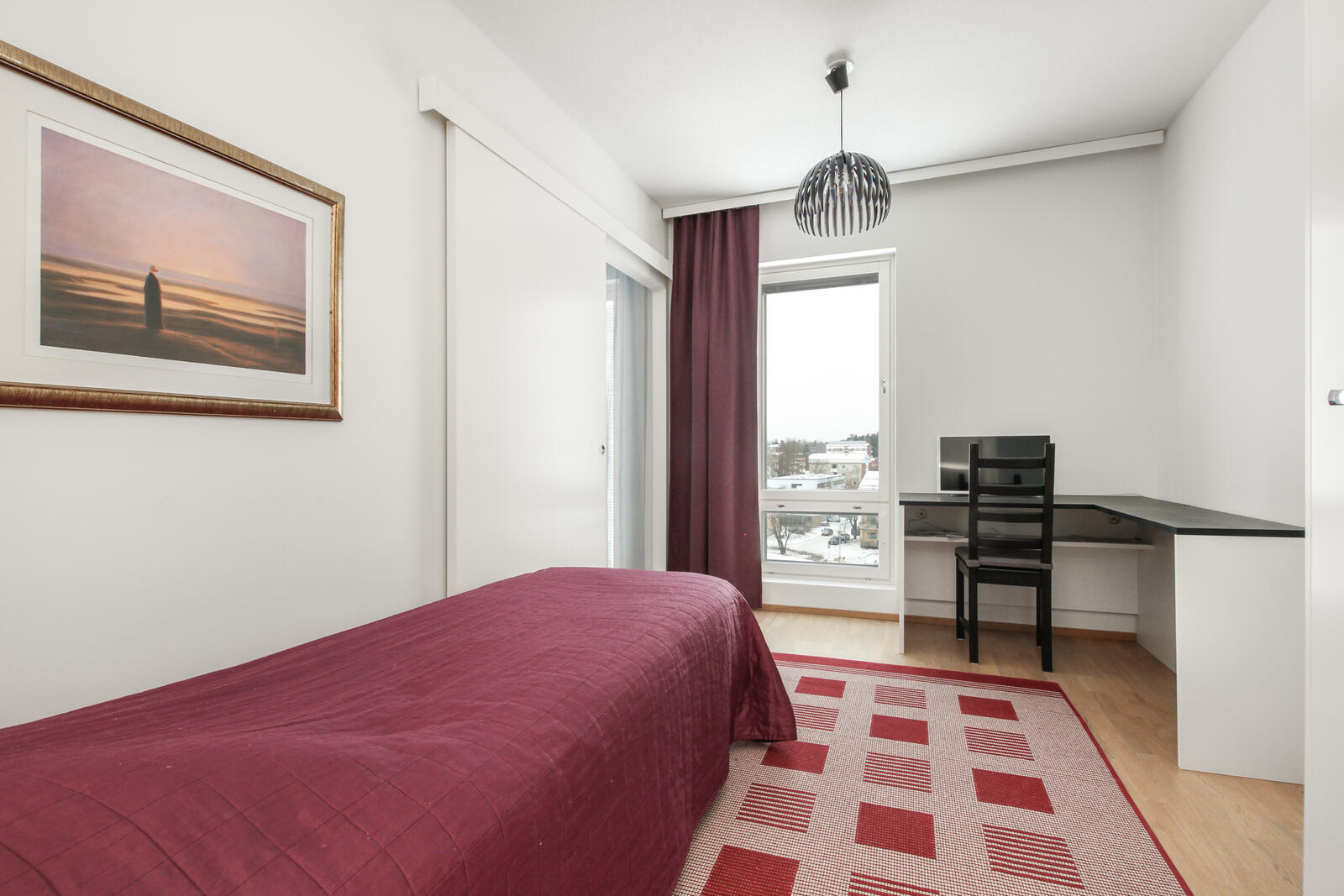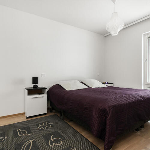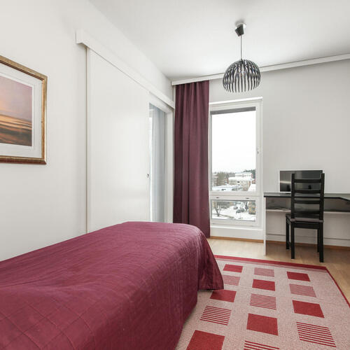 Toinen makuuhuone on isompi ja pienemmän makuuhuoneen voi myös käyttä ruokailutilana