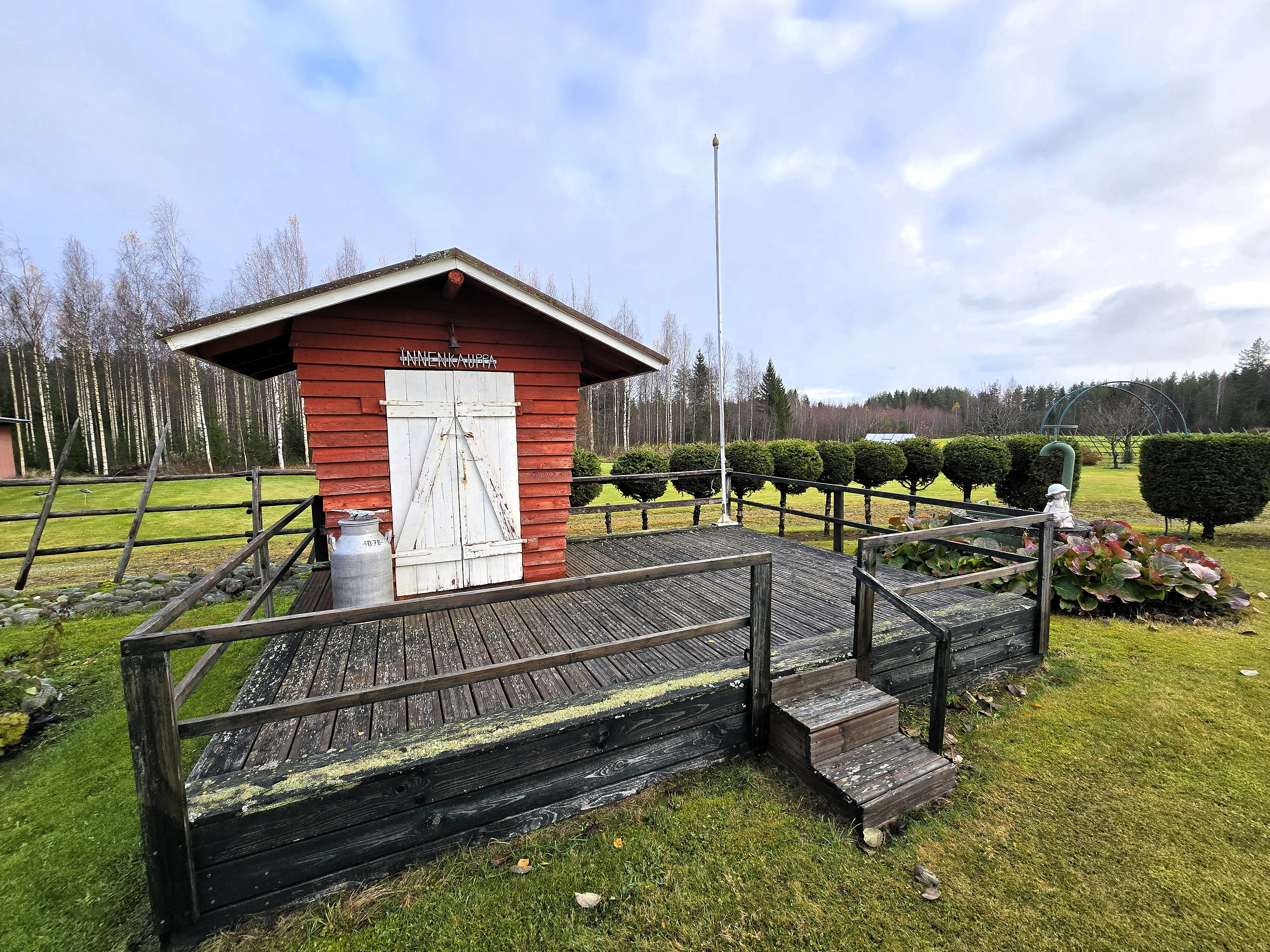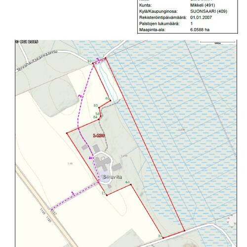 Pientila, jossa pieni osa peltoa, pääosa sekametsää. Tallirakennuksen takana oleva tukkipuukuusikko ei kuulu kauppaan.
