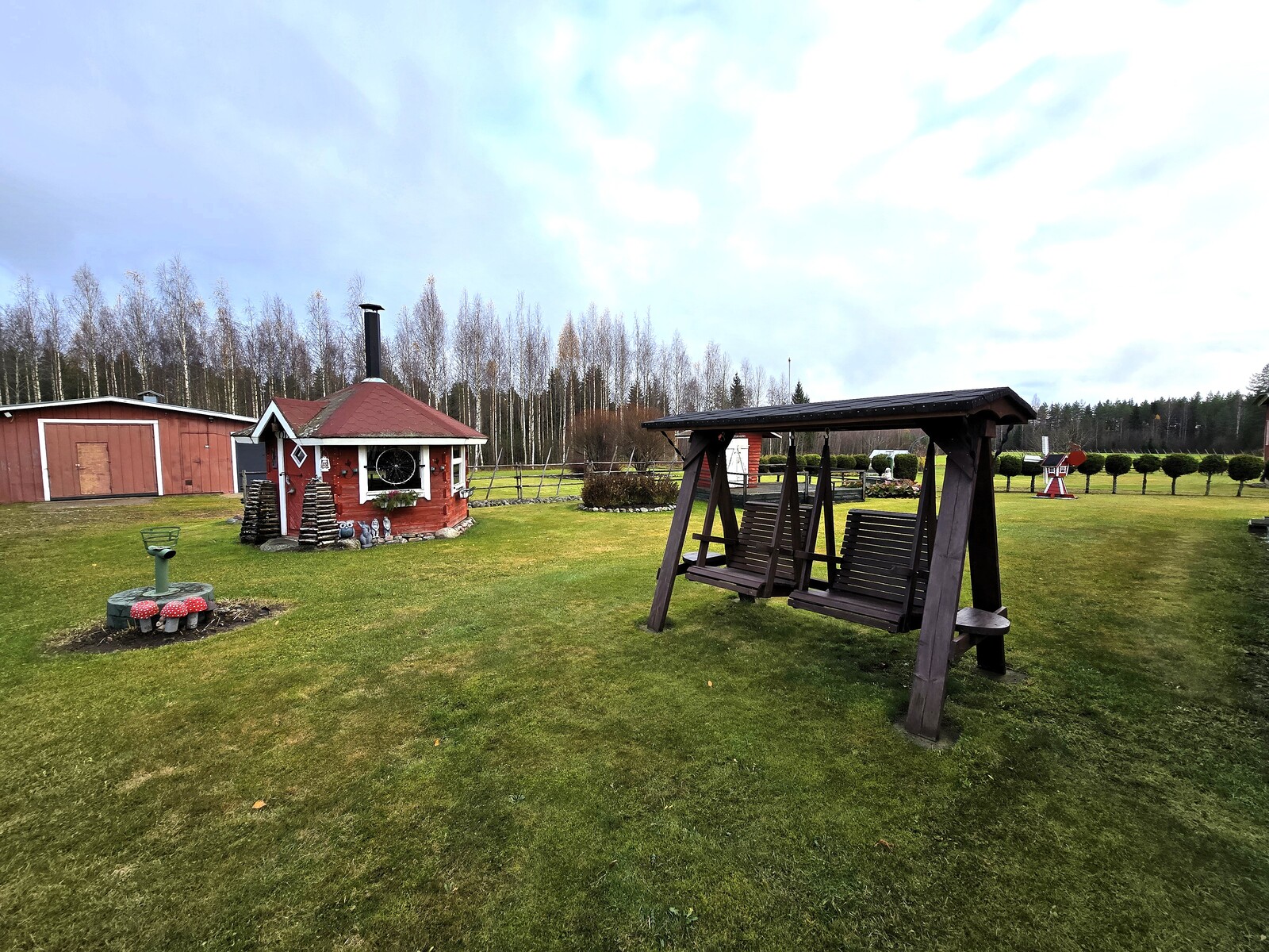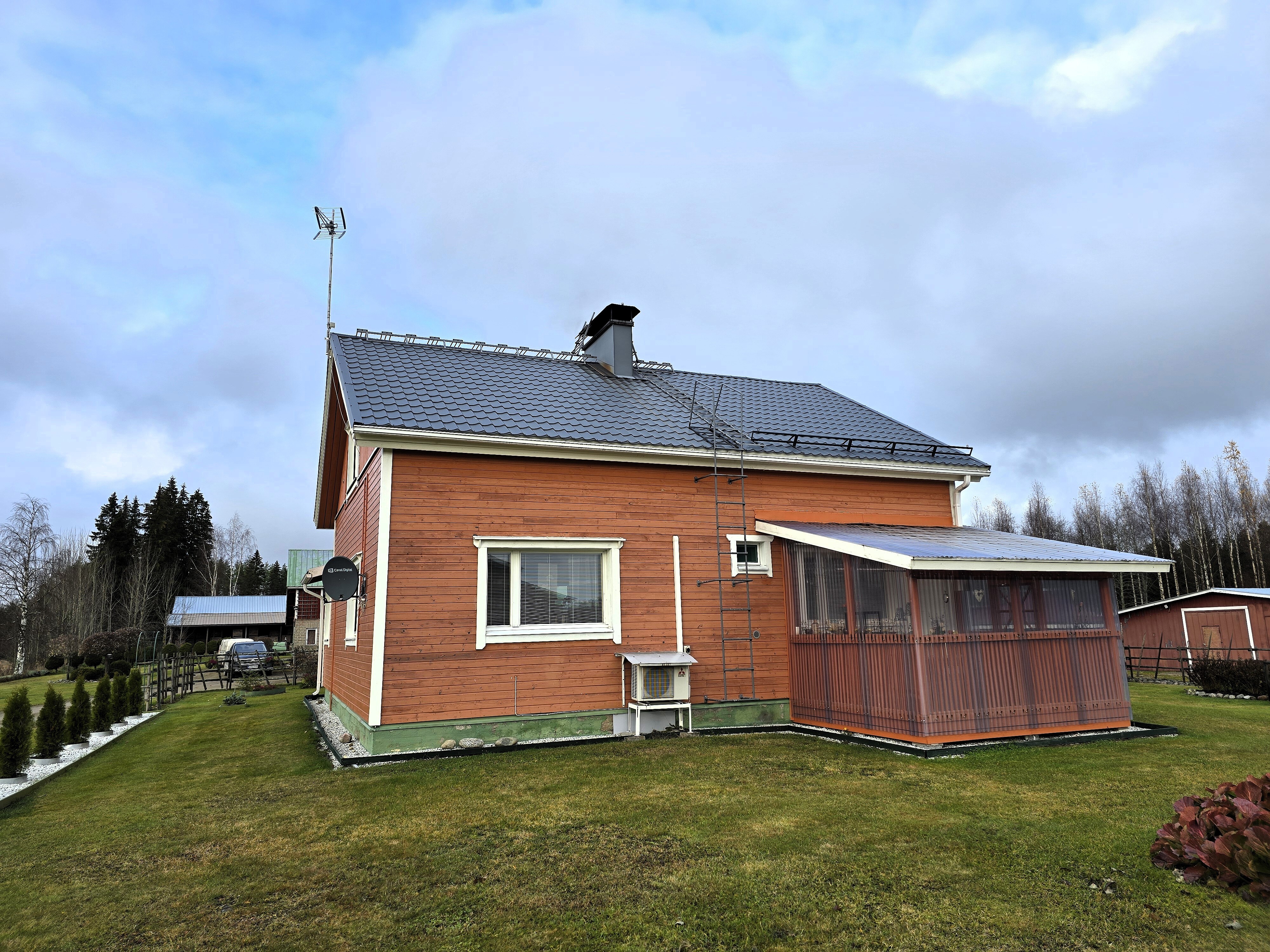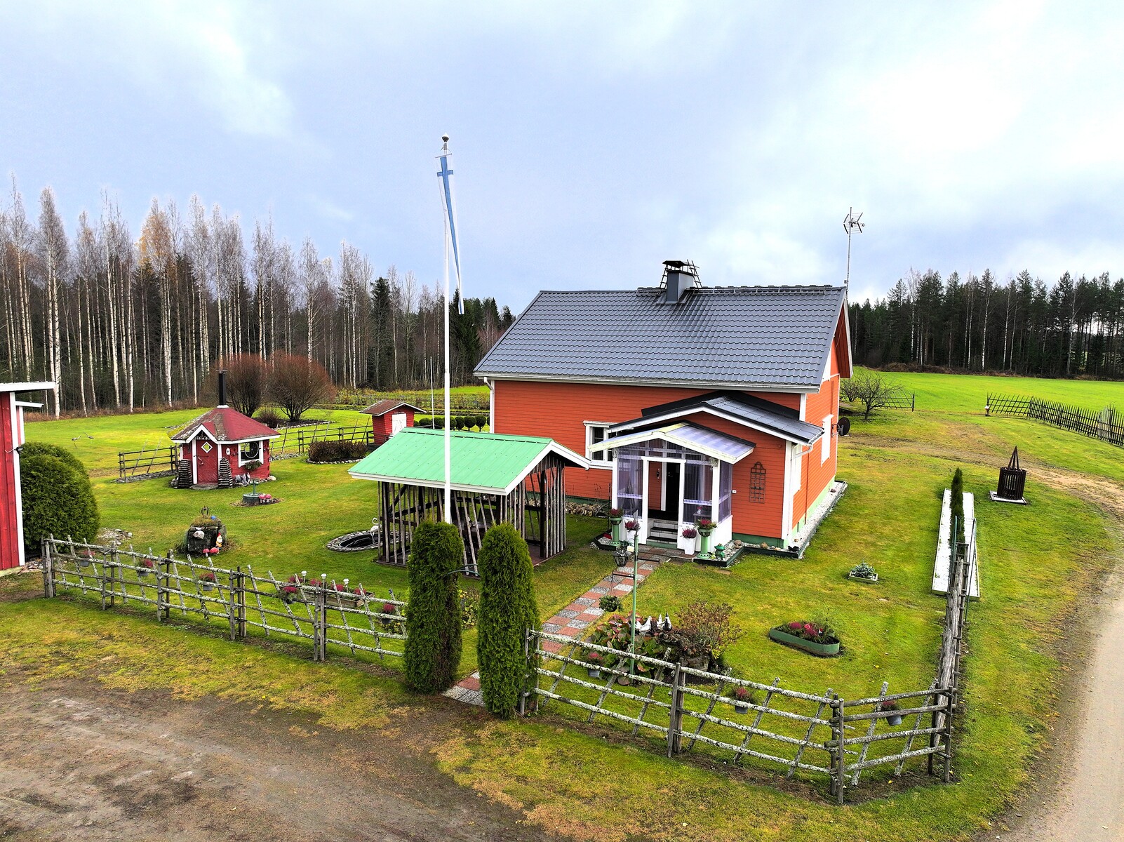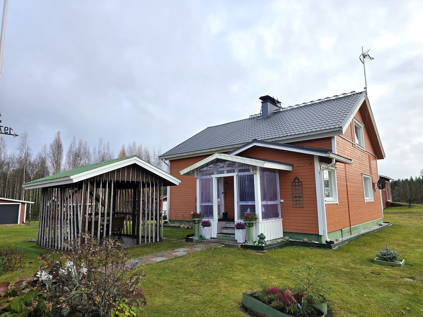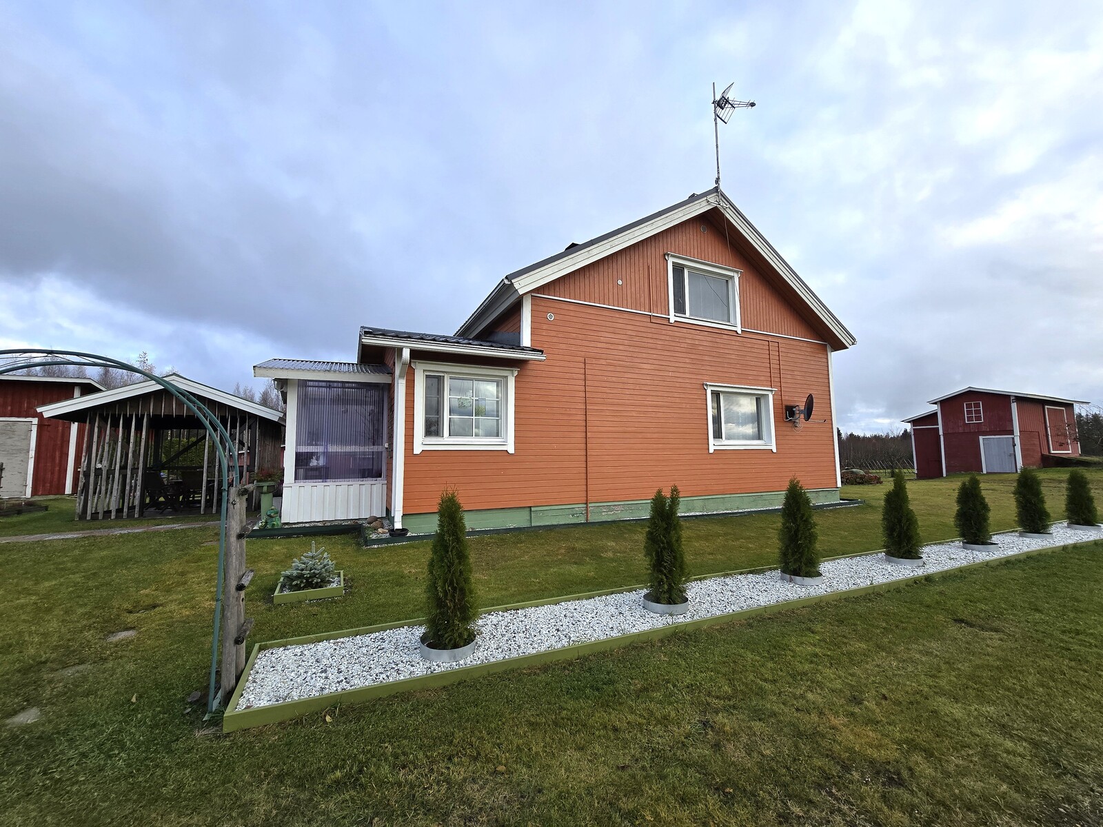 Pihapiiri on poikkeuksellisen viihtyisä ja huoliteltu. Laajat nurmialueet, koristekasvit ja huolella hoidetut istutukset luovat ympärille kauniin kehyksen. Pihasta löytyy myös kasvimaa ja kasvihuone, jotka tarjoavat erinomaiset mahdollisuudet omien vihannesten ja marjojen viljelyyn – täydellinen valinta sinulle, joka haaveilet omavaraisemmasta ja luonnonläheisemmästä elämästä.