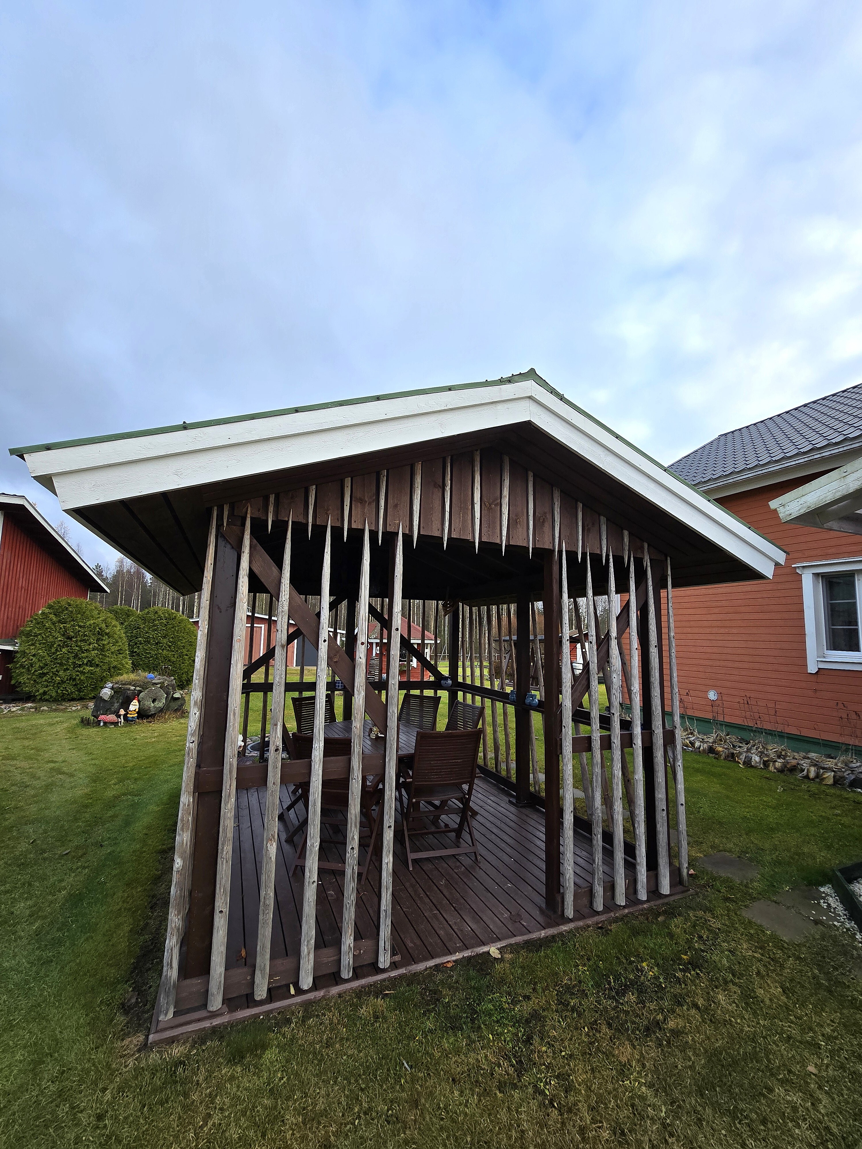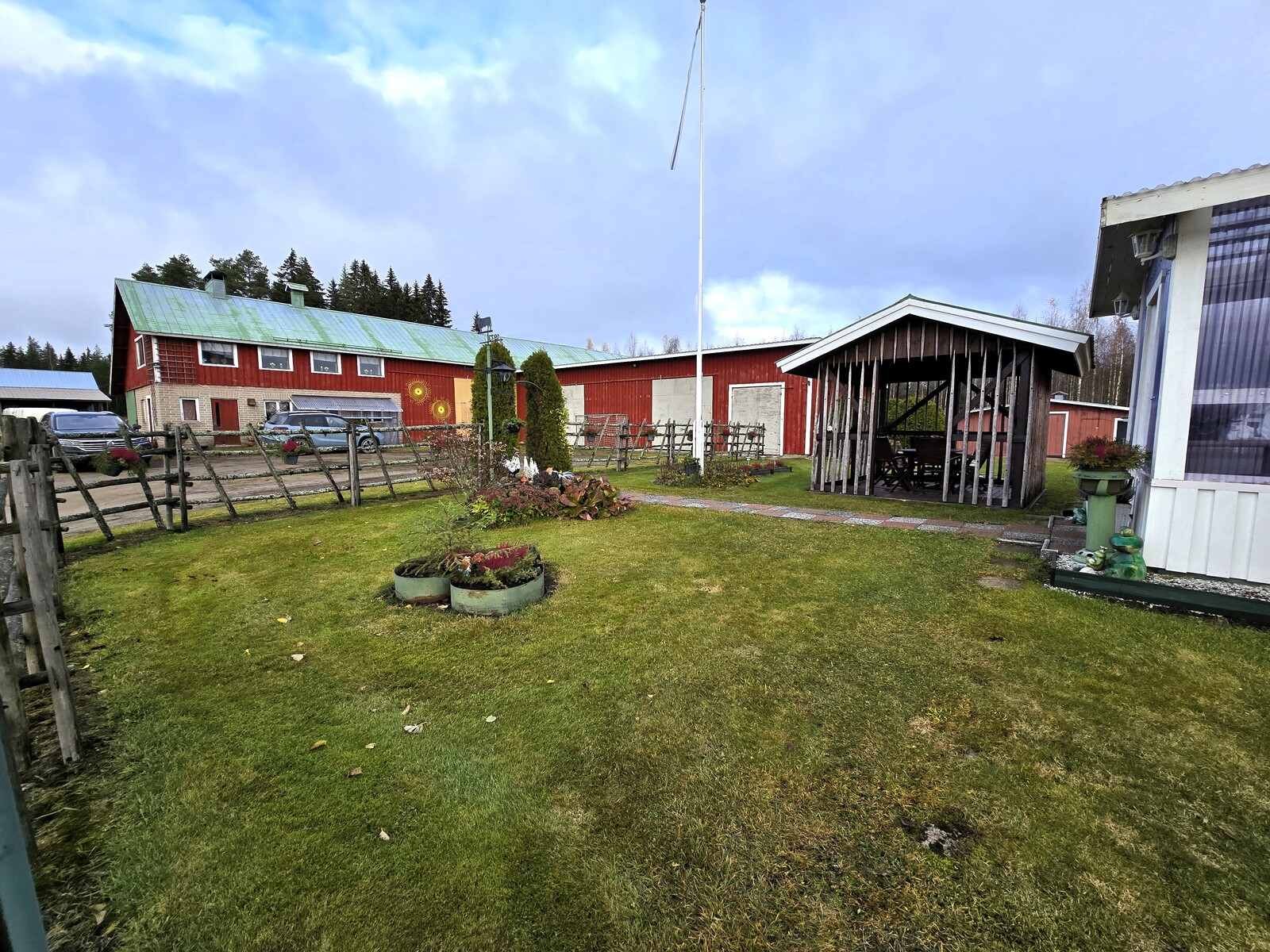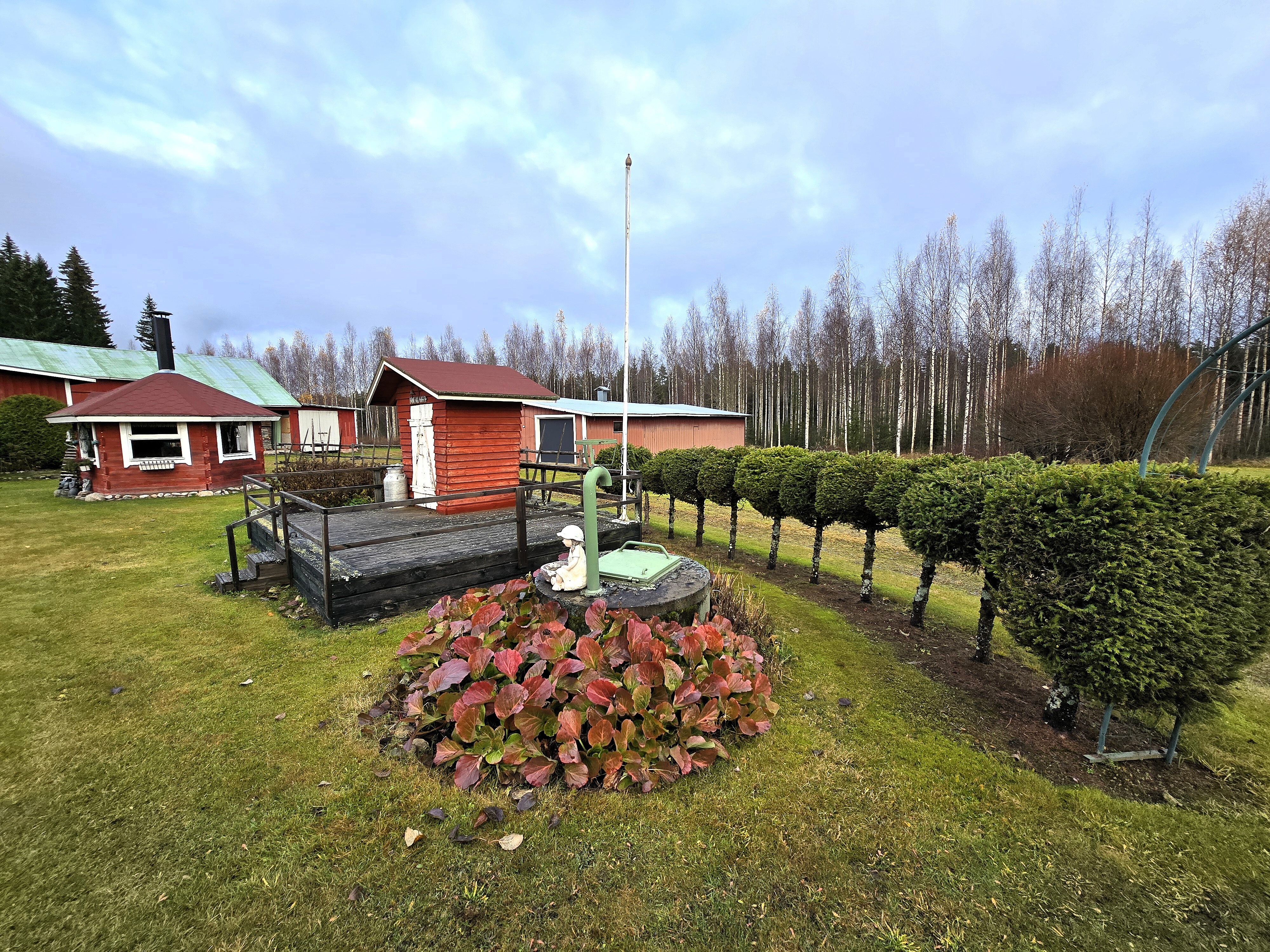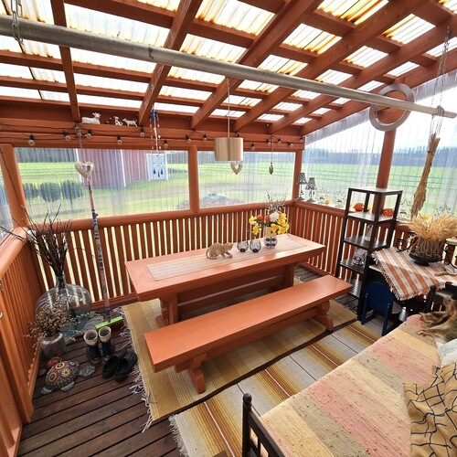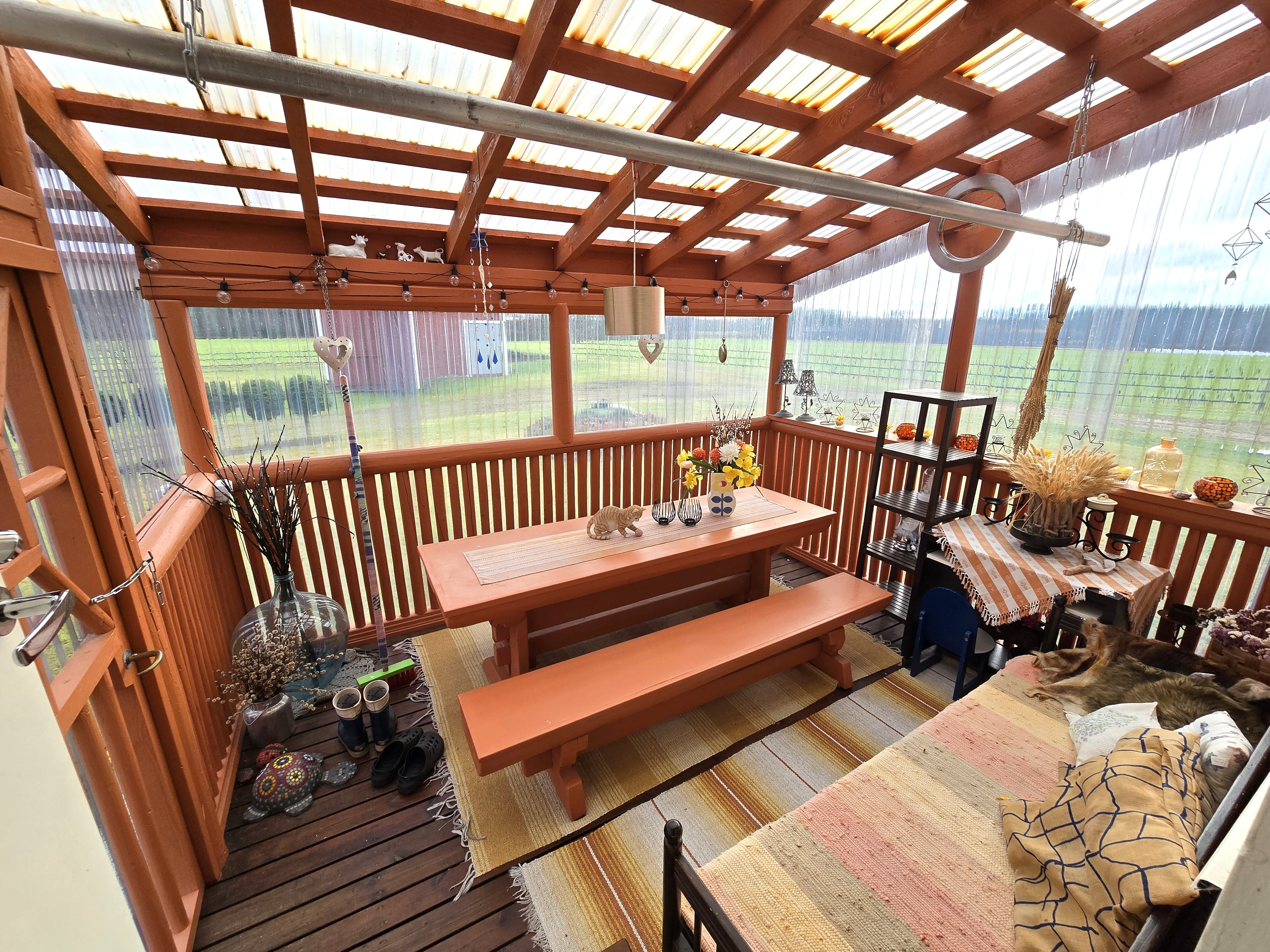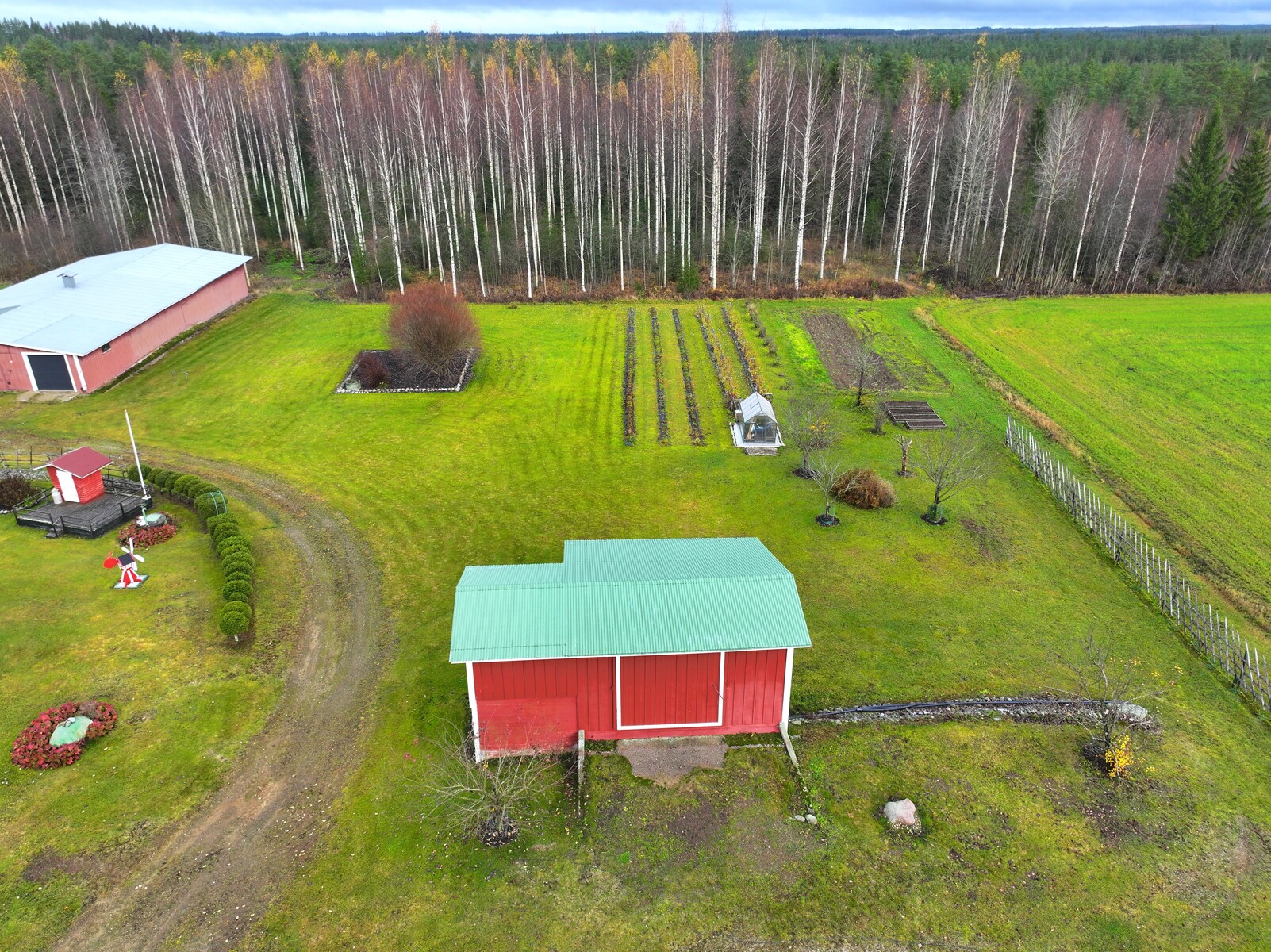 Pihapiiri on poikkeuksellisen viihtyisä ja huoliteltu. Laajat nurmialueet, koristekasvit ja huolella hoidetut istutukset luovat ympärille kauniin kehyksen. Pihasta löytyy myös kasvimaa ja kasvihuone, jotka tarjoavat erinomaiset mahdollisuudet omien vihannesten ja marjojen viljelyyn – täydellinen valinta sinulle, joka haaveilet omavaraisemmasta ja luonnonläheisemmästä elämästä.