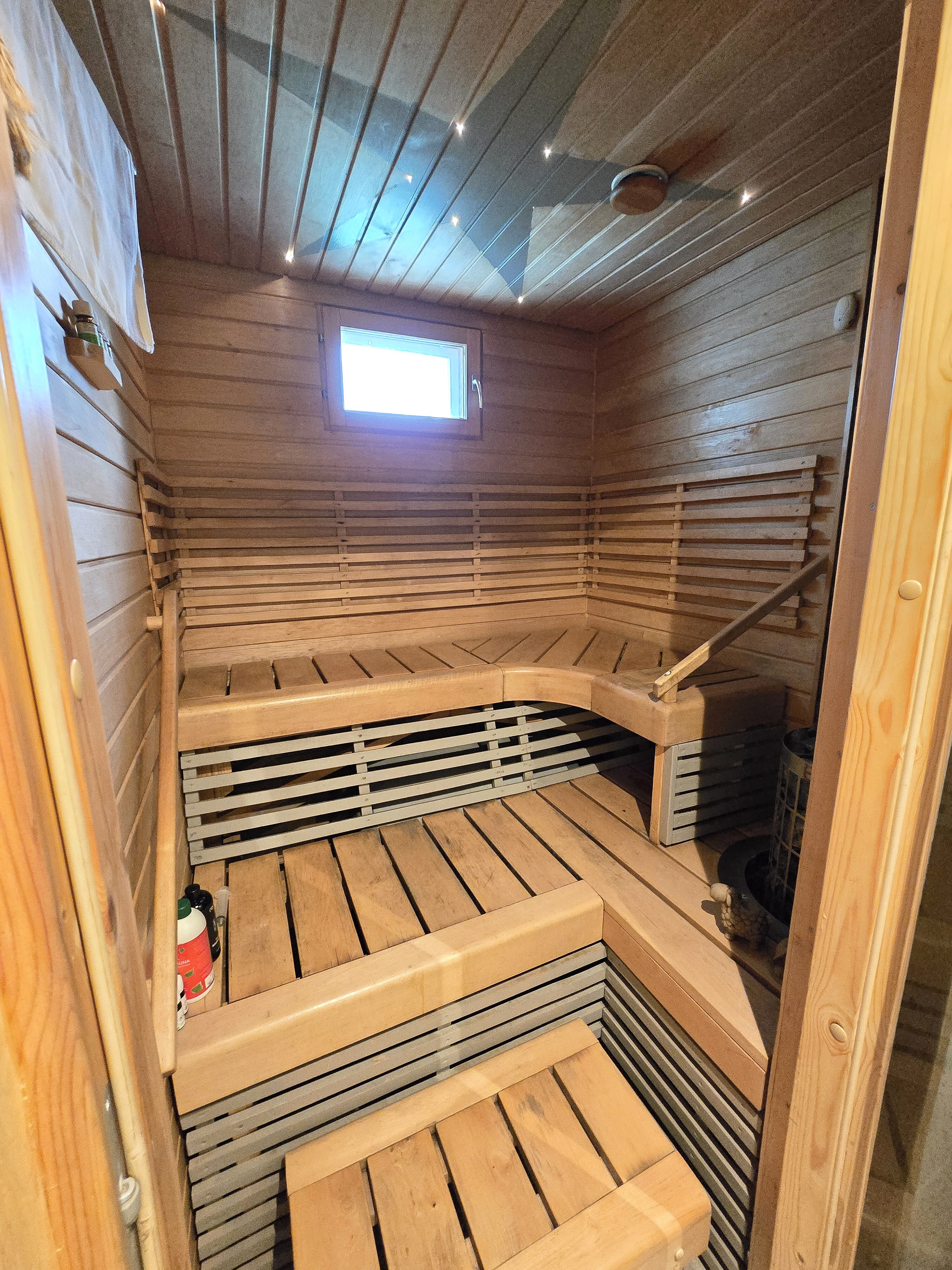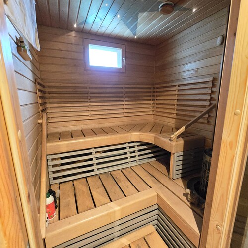 Sauna paneloitu. Sähkökiuas.
