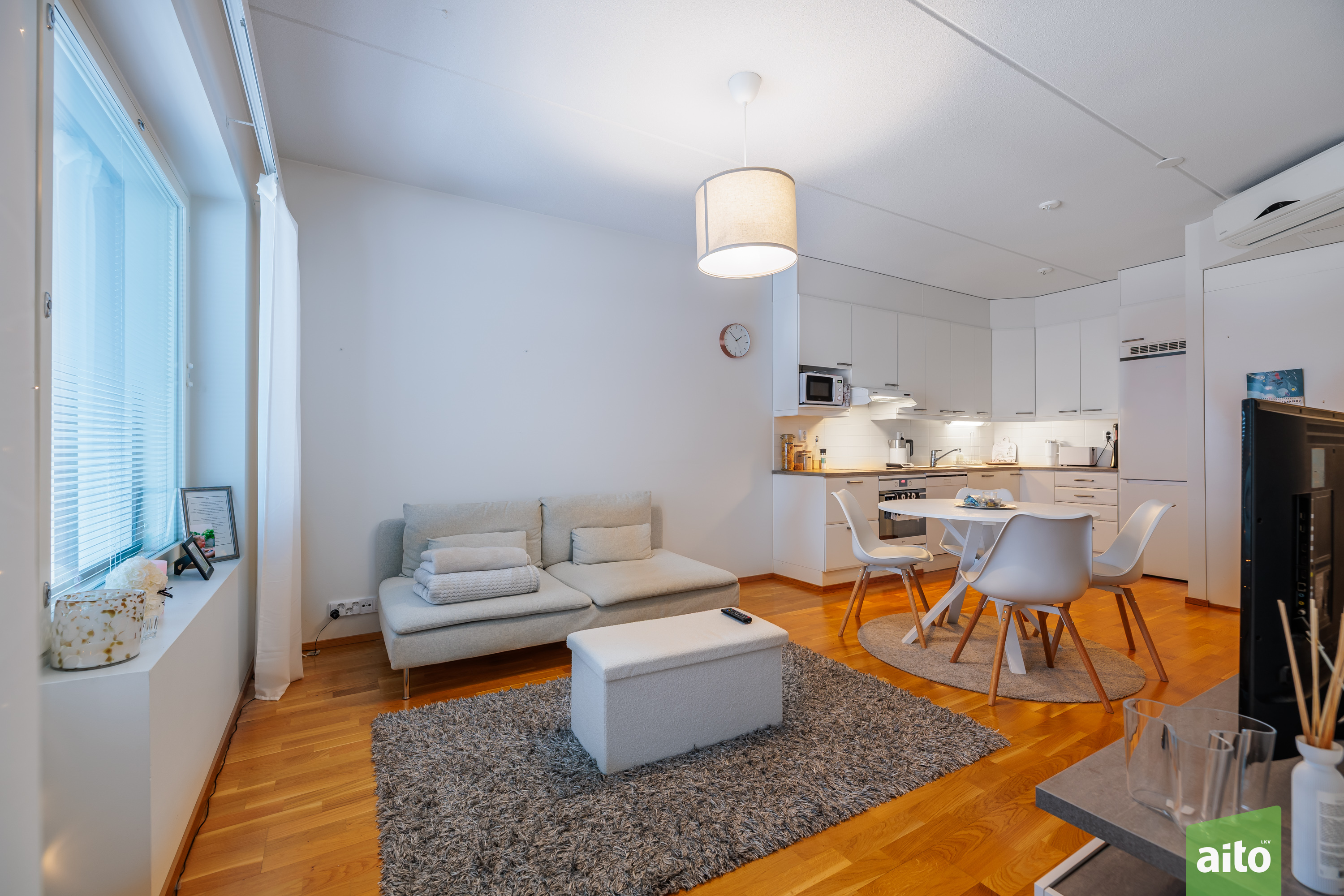 The apartment offers a functional floor plan, private sauna, and a glazed balcony, making it ideal for comfortable year-round living. This property is an excellent choice for owner-occupiers or investors alike, as it currently has a long-term, reliable tenant, providing stable rental income. The low monthly maintenance fee of only €176 ensures cost-efficient ownership and attractive investment returns.