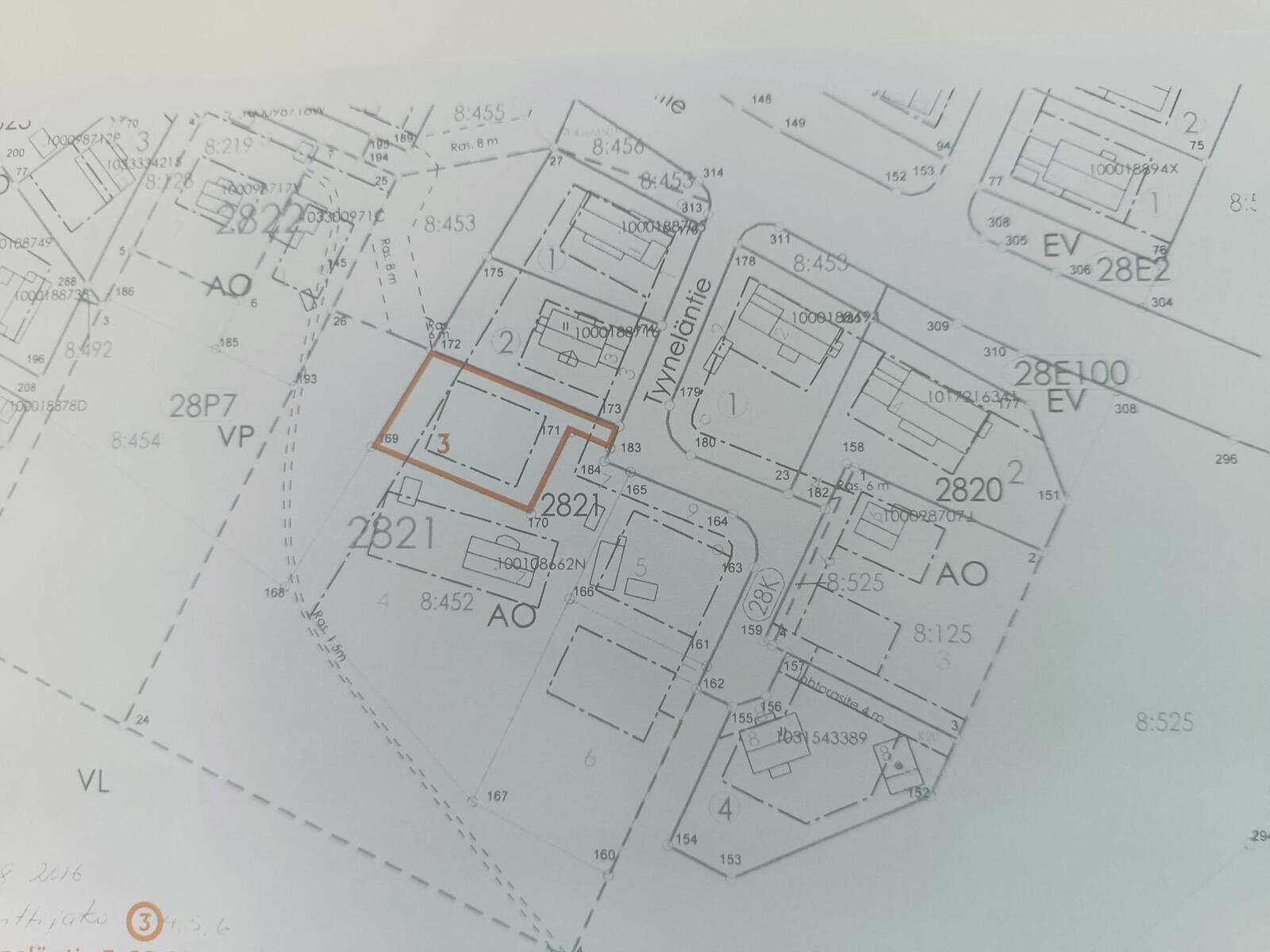 Tontin pinta-ala 911 m². Tonttijako on laadittu rekisteritunnus 28-2821-3. Lohkotaan tilasta Tyynelä, rekisteritunnus 694- 45-8-452.