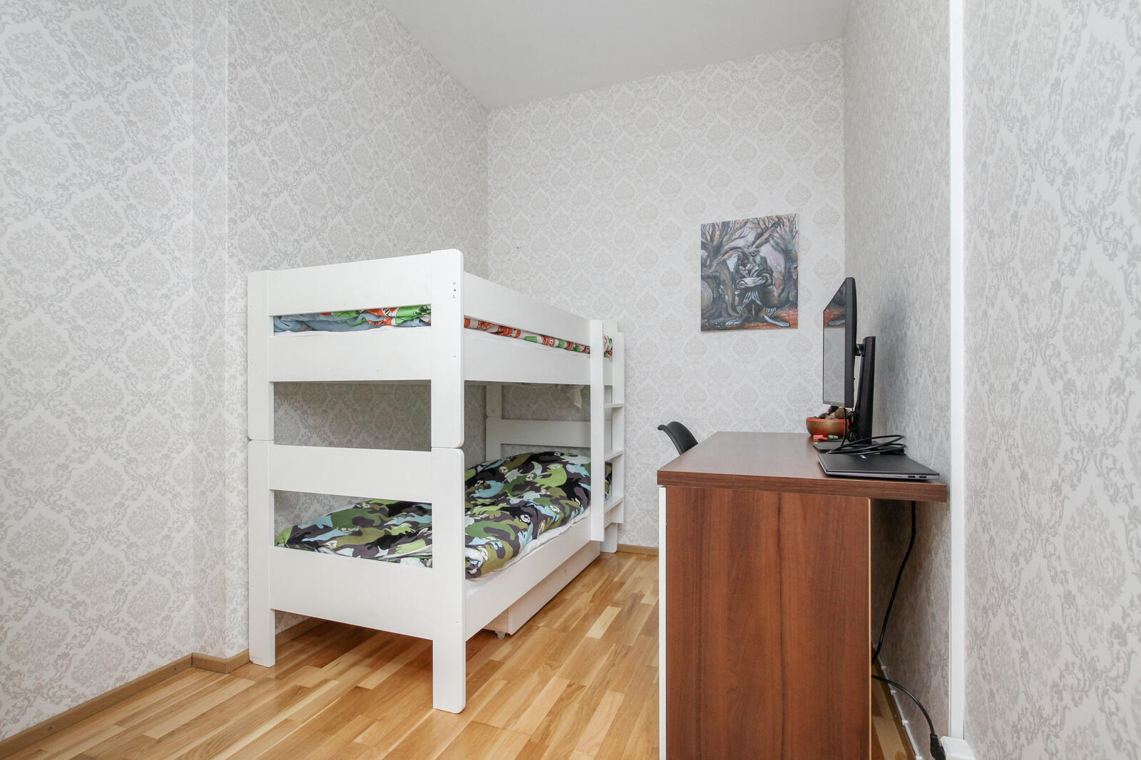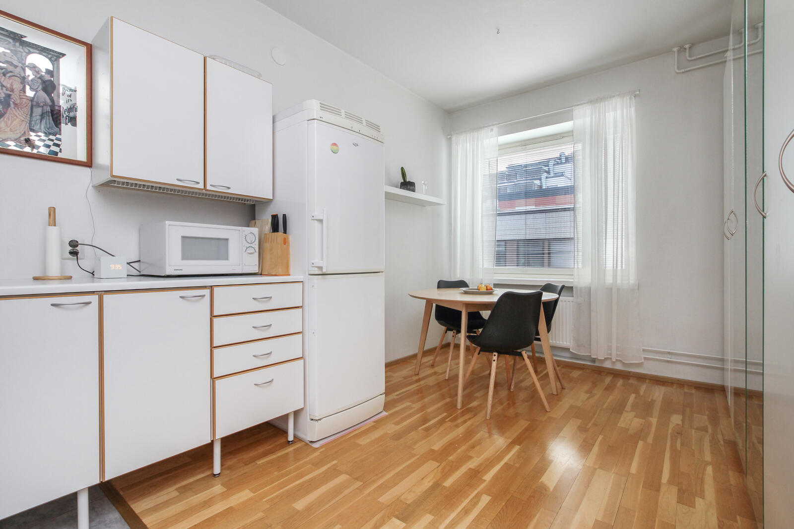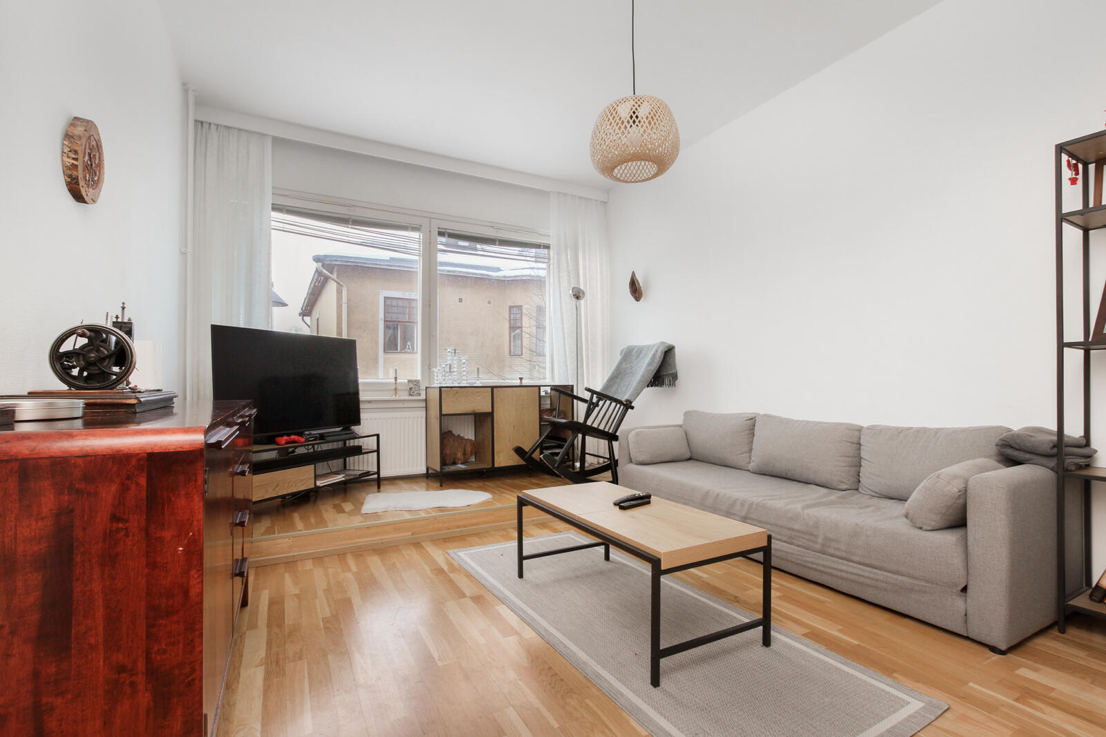 Huoneisto on valoisa ja avara – ikkunat avautuvat yhteen suuntaan, tuoden tilaan rauhallisen ja tasaisen luonnonvalon. Kodin pohjaratkaisu on selkeä ja helposti sisustettava.