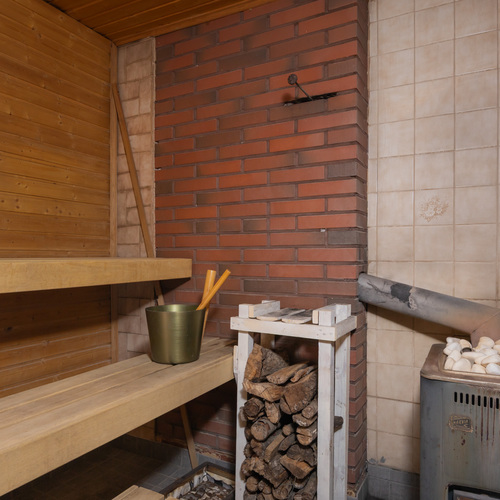 Lauteet, laattalattia, puulämmitteinen kiuas.
