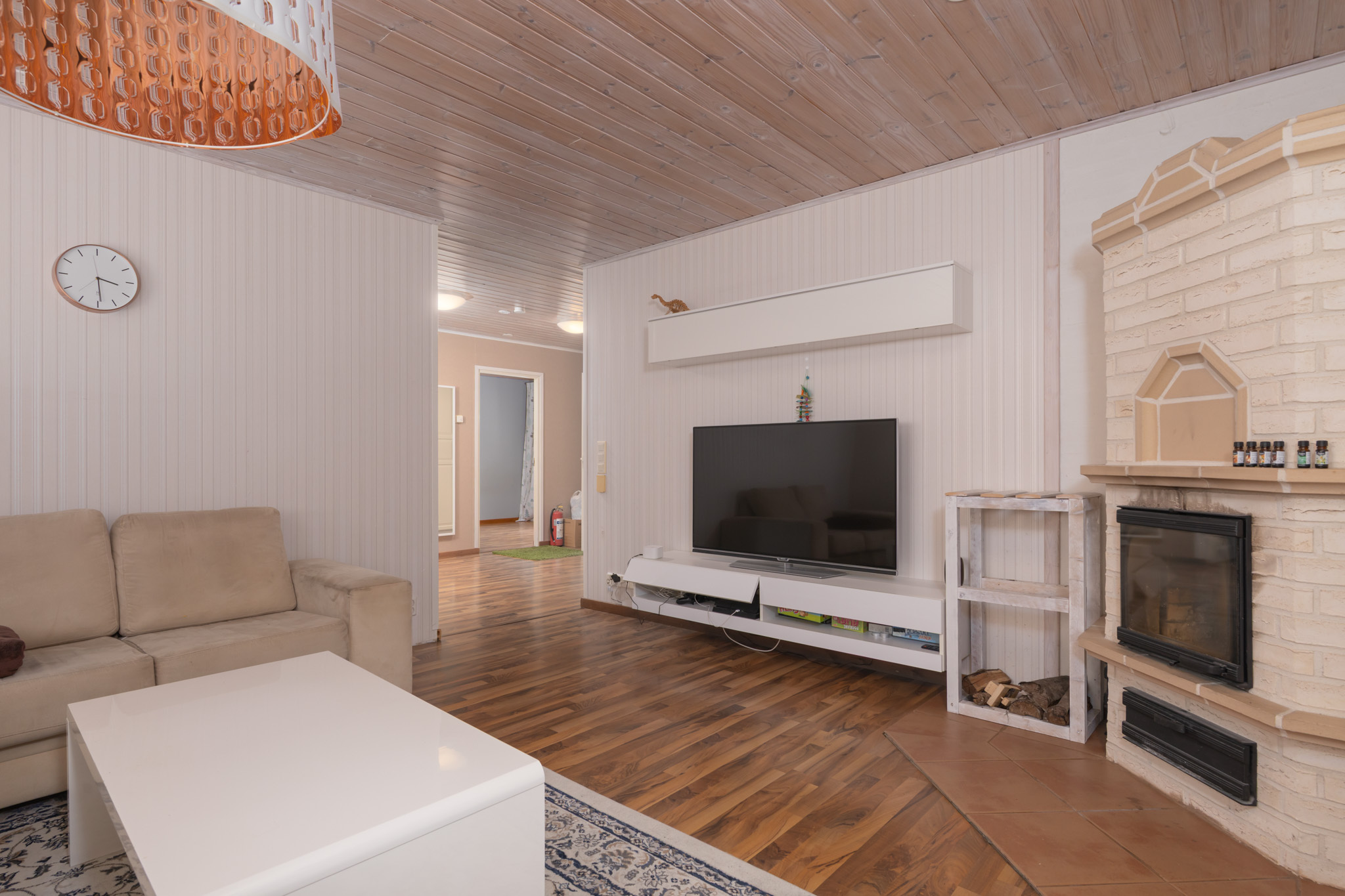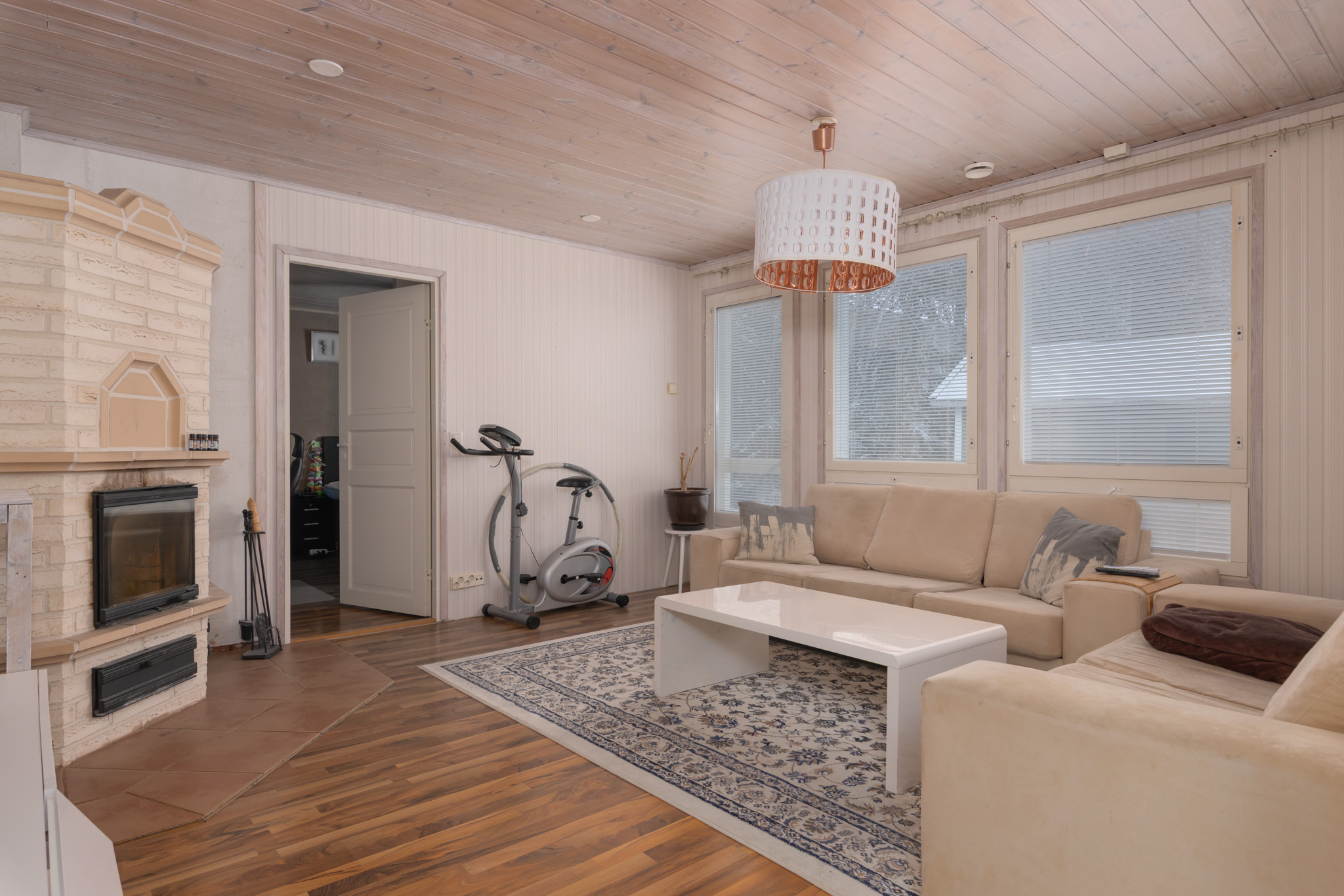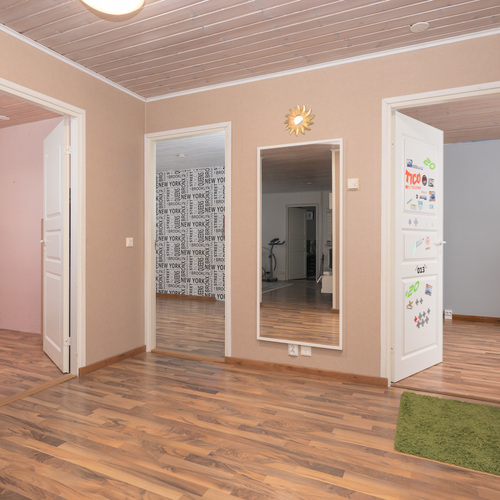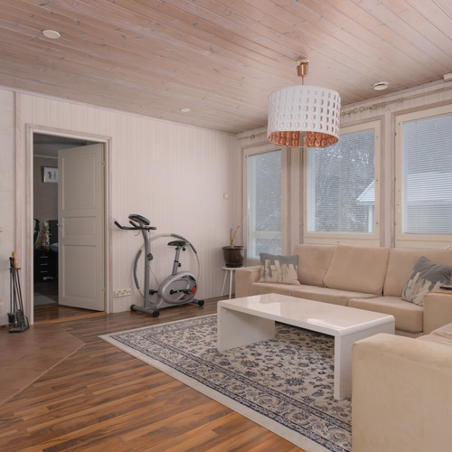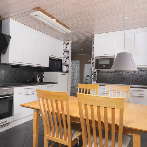 Kodin tilat jakautuvat toimivasti yksikerroksiseen pohjaratkaisuun. Neljä makuuhuonetta tarjoavat riittävästi tilaa isommallekin perheelle. Kodin sydämenä on tilava keittiö, jossa on runsaasti kaappi- ja tasotilaa sekä ihastuttava puuliesi niin ruuanlaittoon kuin lämmitykseen. Olohuoneen varaava takka luo lämpöä sekä tunnelmaa ja ilmalämpöpumppu energiatehokkuutta.