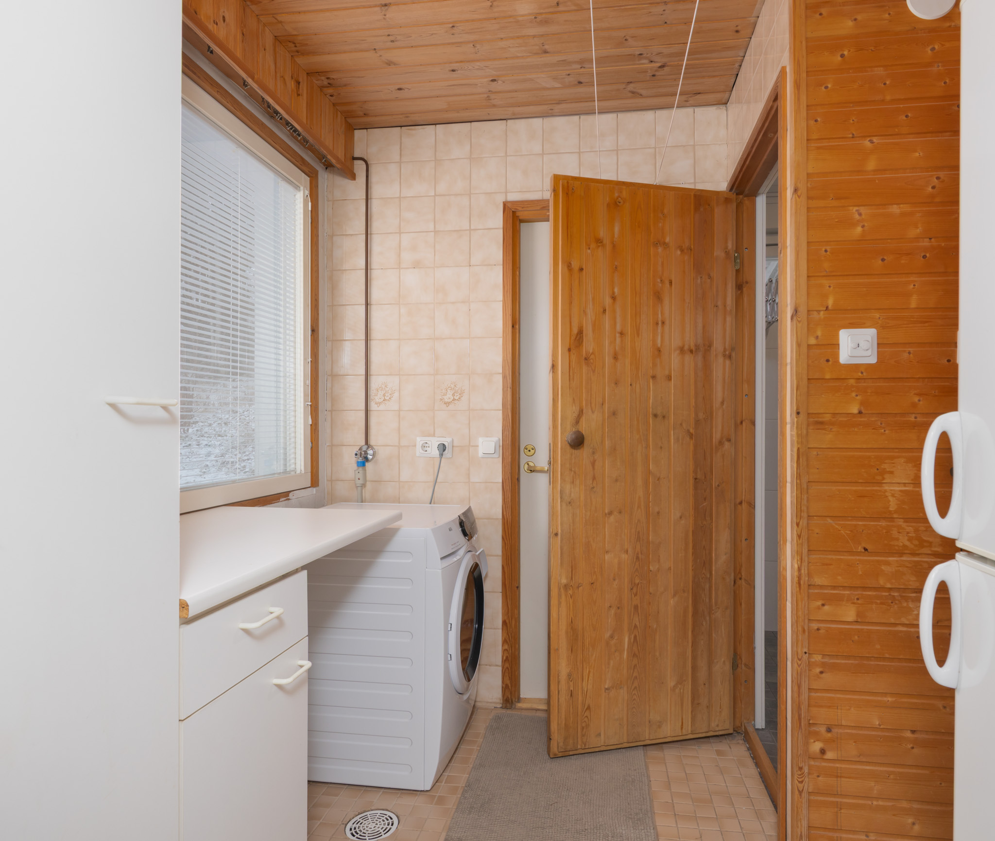 Tilava varasto, kulku autotallista.