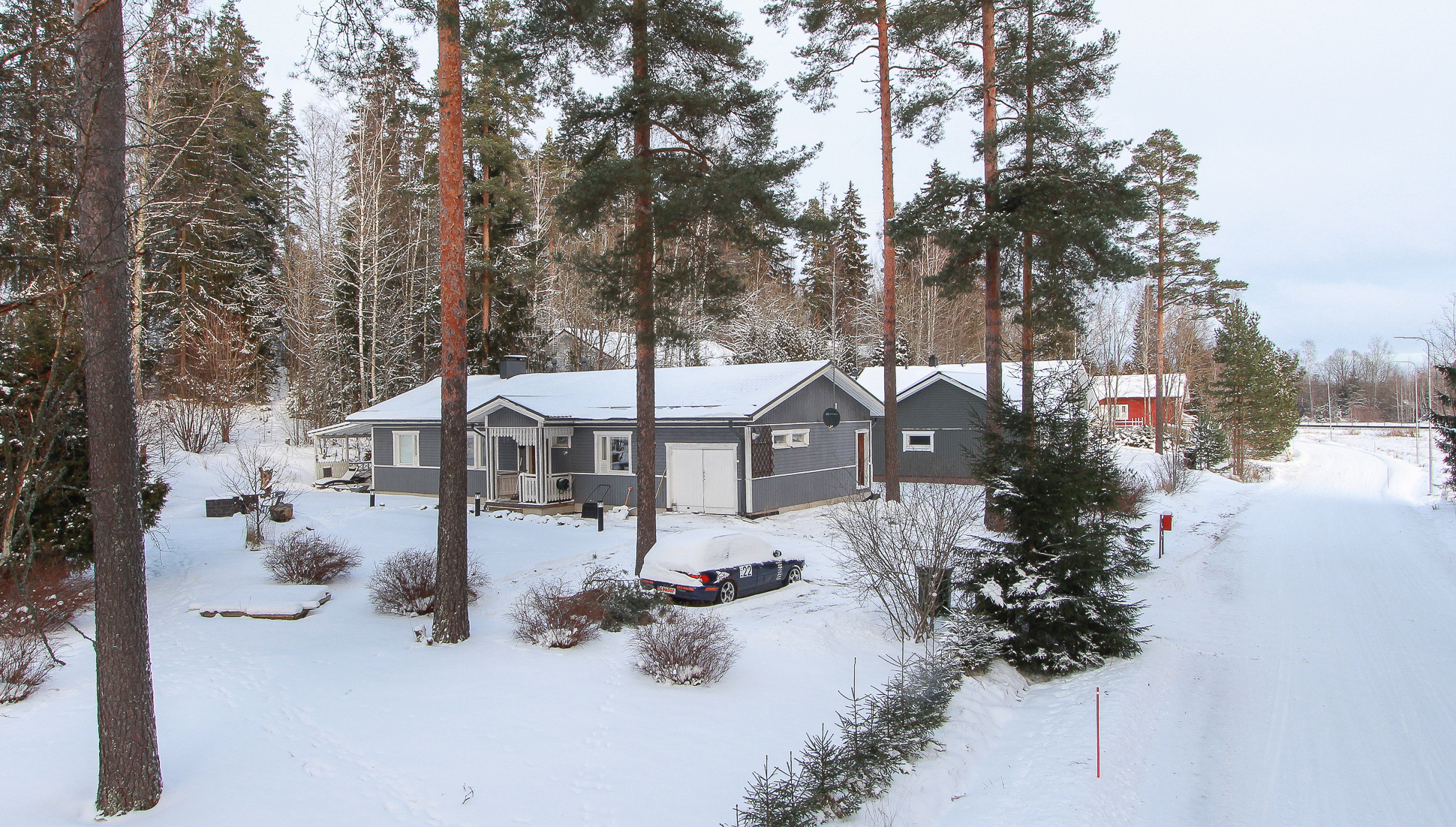 Autolle on paikoitustilaa pihalla sekä autotalli, jonka yhteydessä on reilunkokoinen varasto.