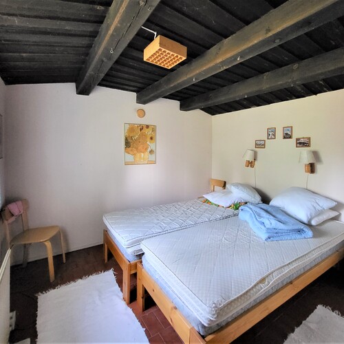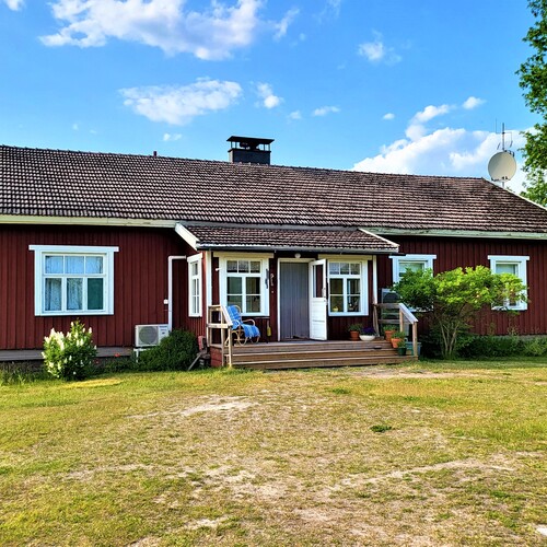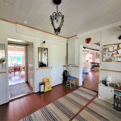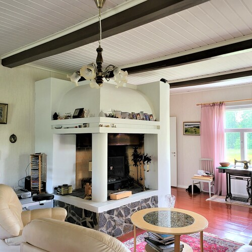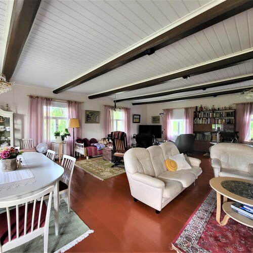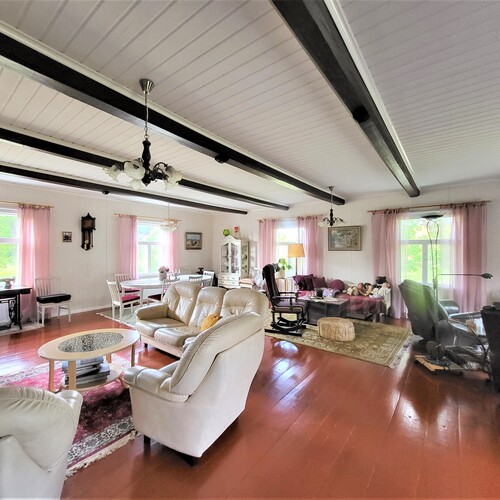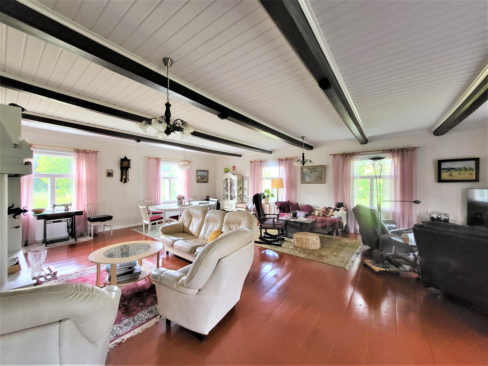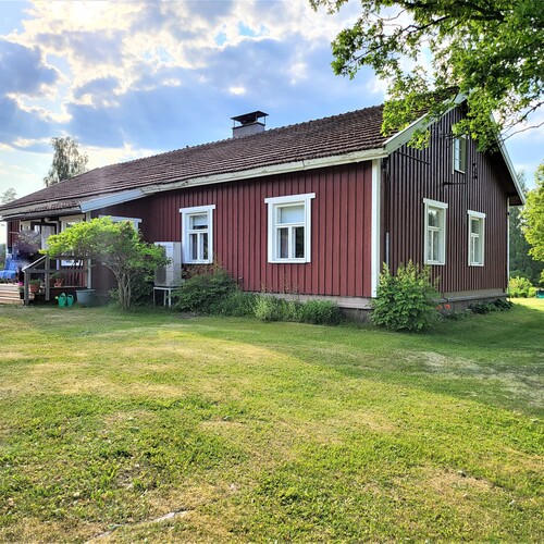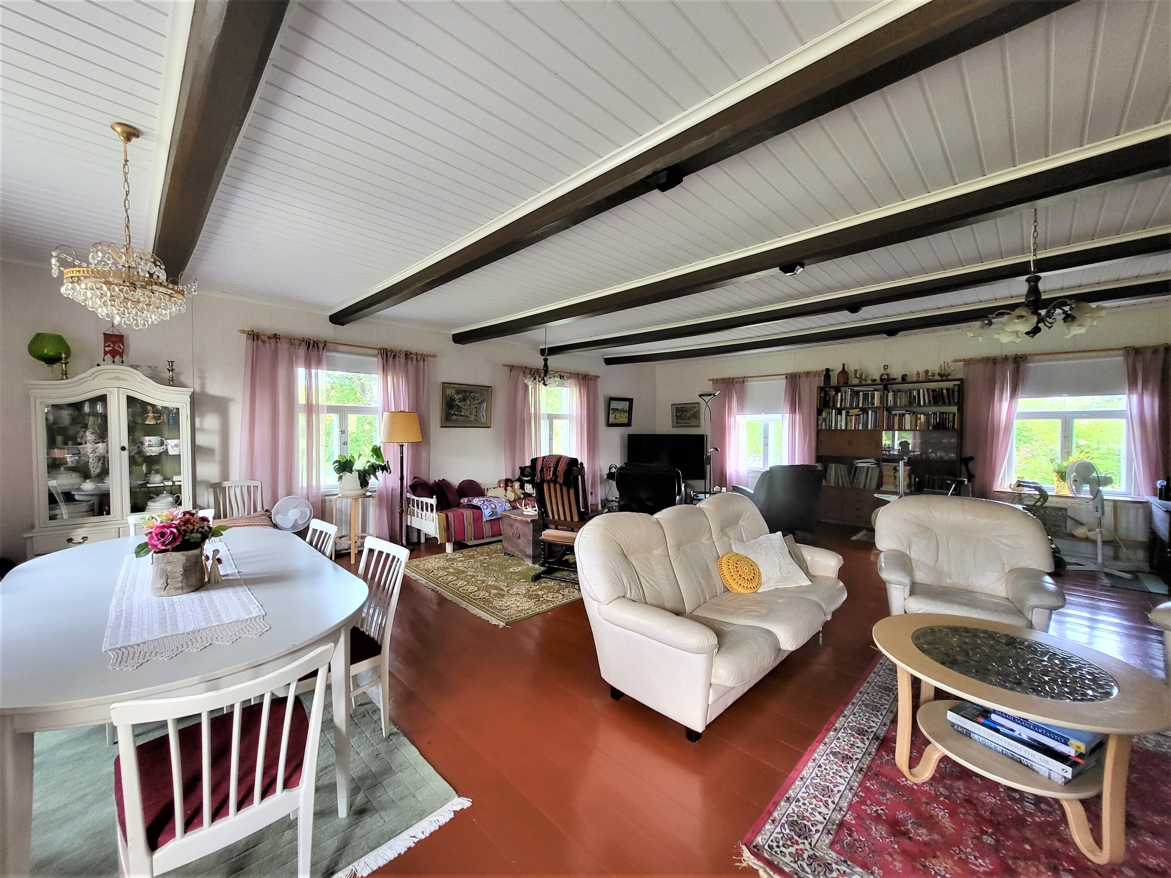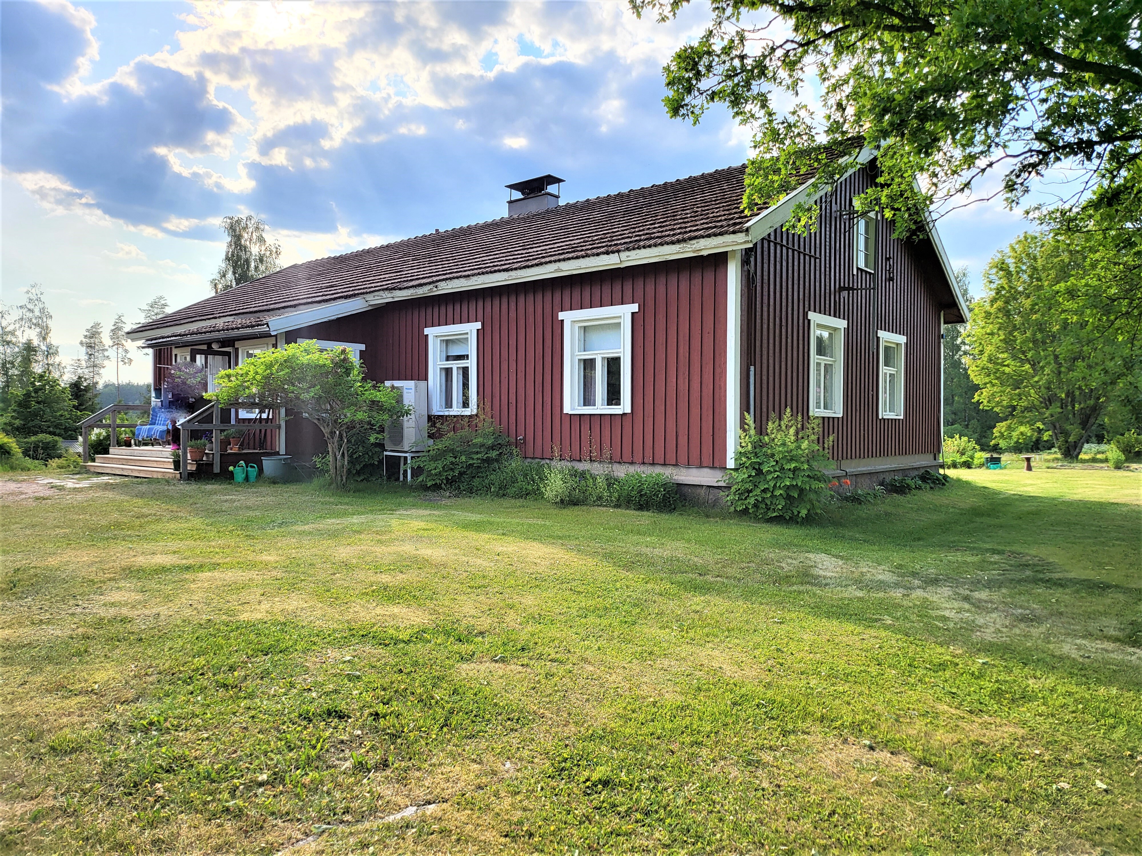 1900-luvun alkupuolella rakennettu jykevä hirsinen päärakennus henkii perinteistä tunnelmaa ja kestävää rakentamista. Kodin keskiössä on suuri ja valoisa sali näyttävällä tulisijalla, joka luo tunnelmaa ympäri vuoden. Tilava keittiö tarjoaa erinomaiset puitteet arkeen ja yhdessäoloon.