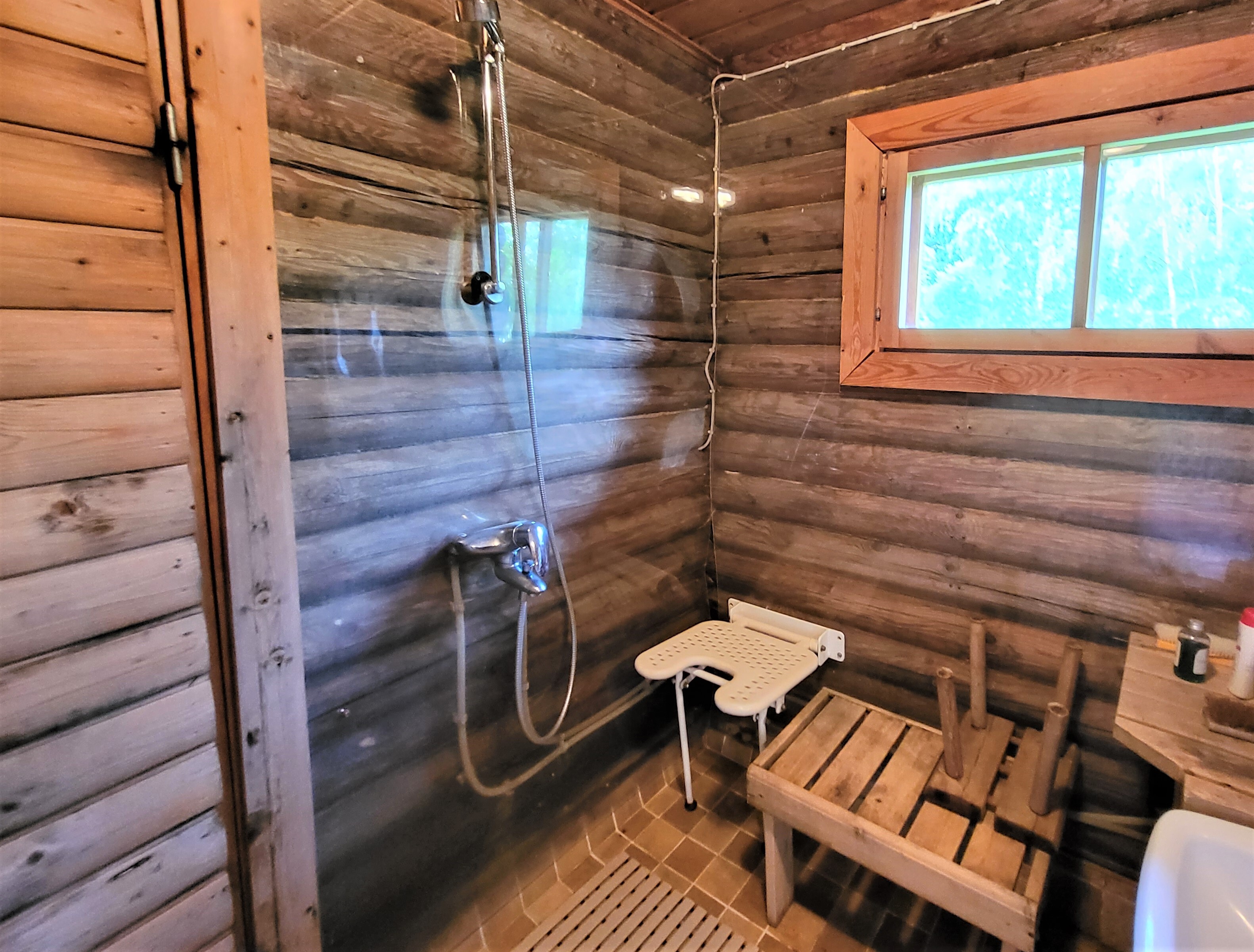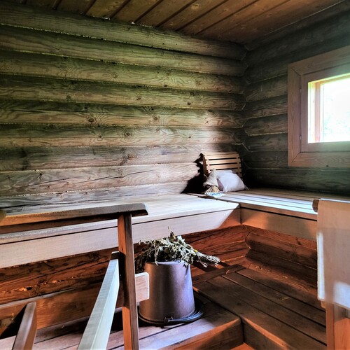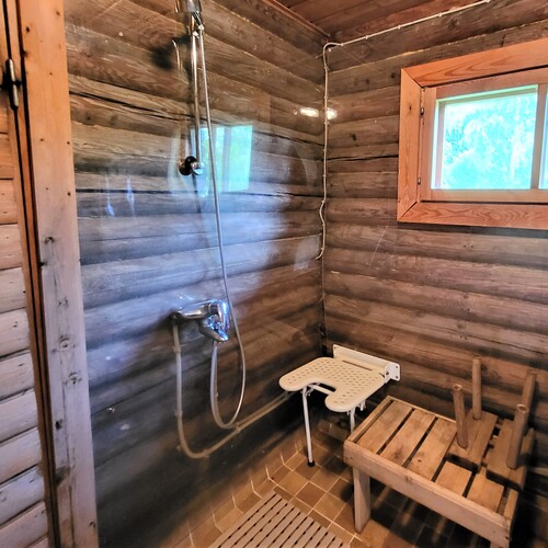 Puukiukaalla varustettu rantasauna, tilavat lauteet. Erillinen suihkulla varustettu pesuhuone. Rantasaunan tuvassa ilmalämpöpumppu ja takka.