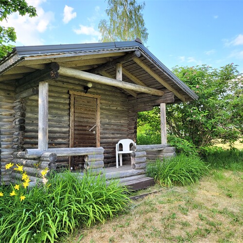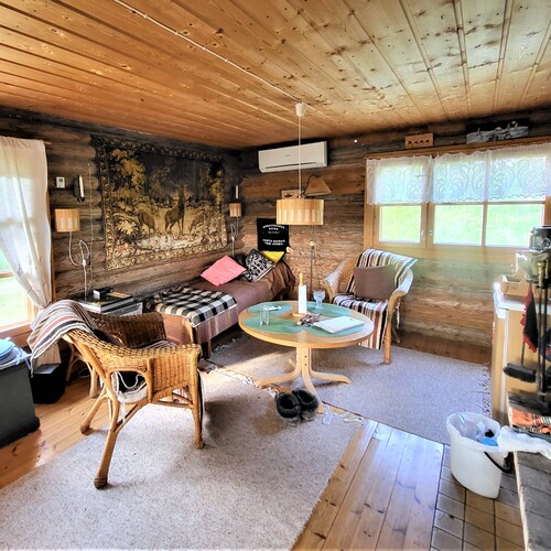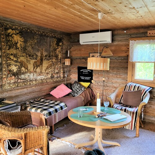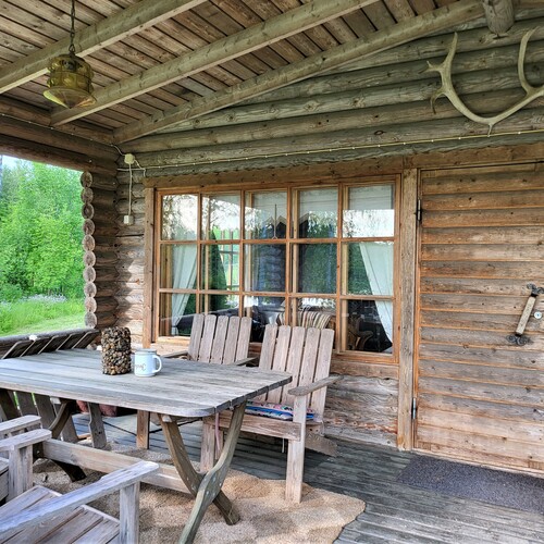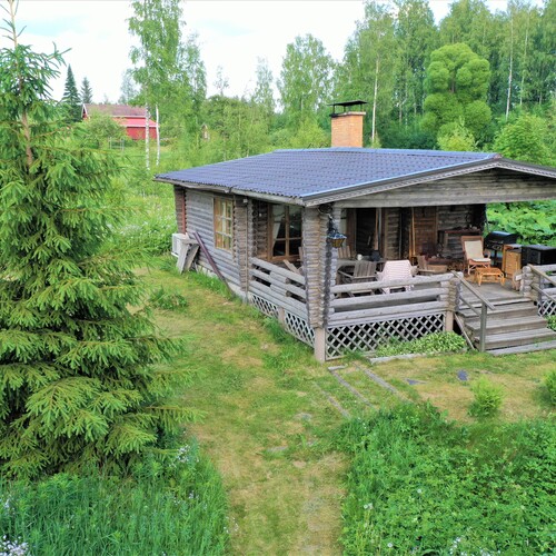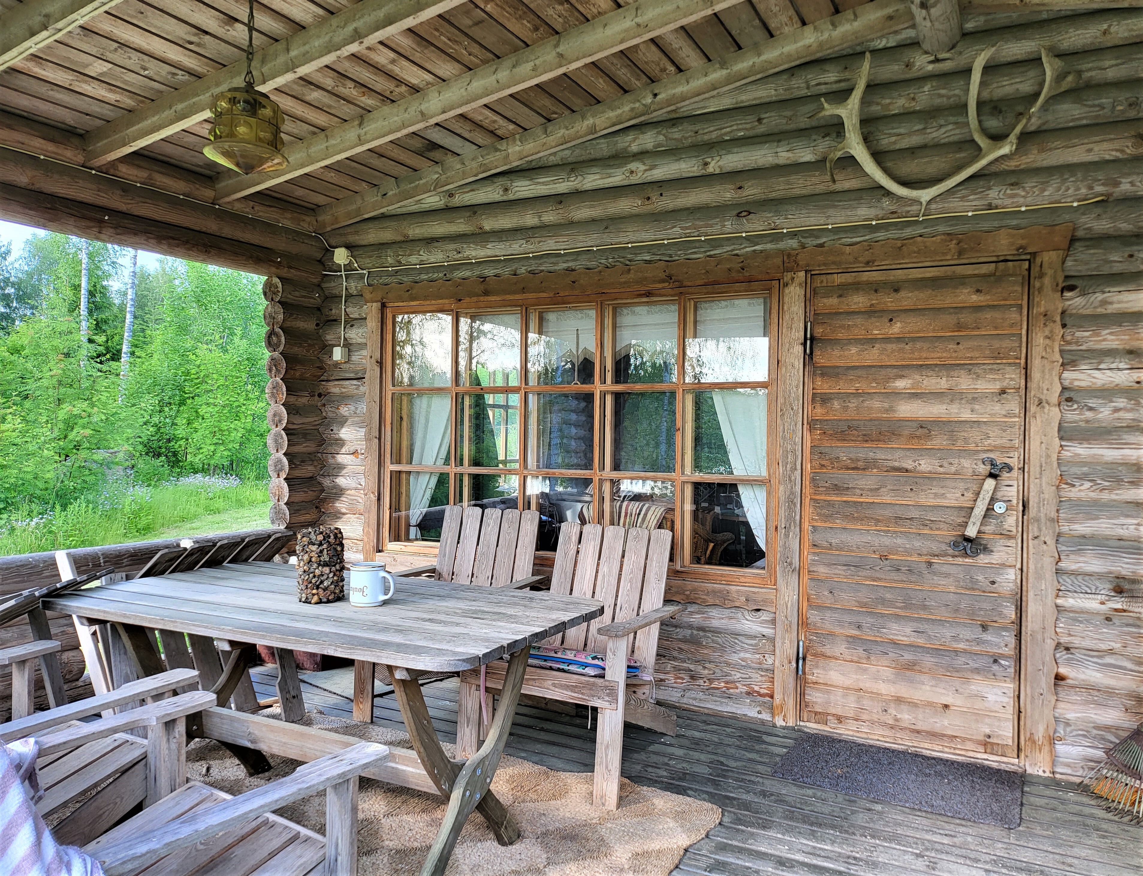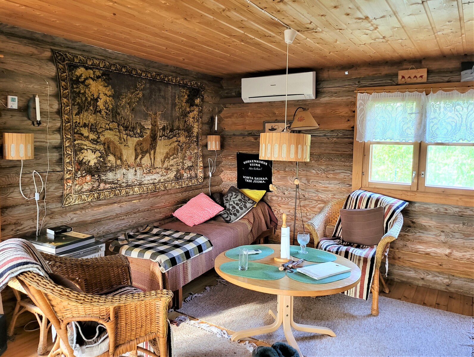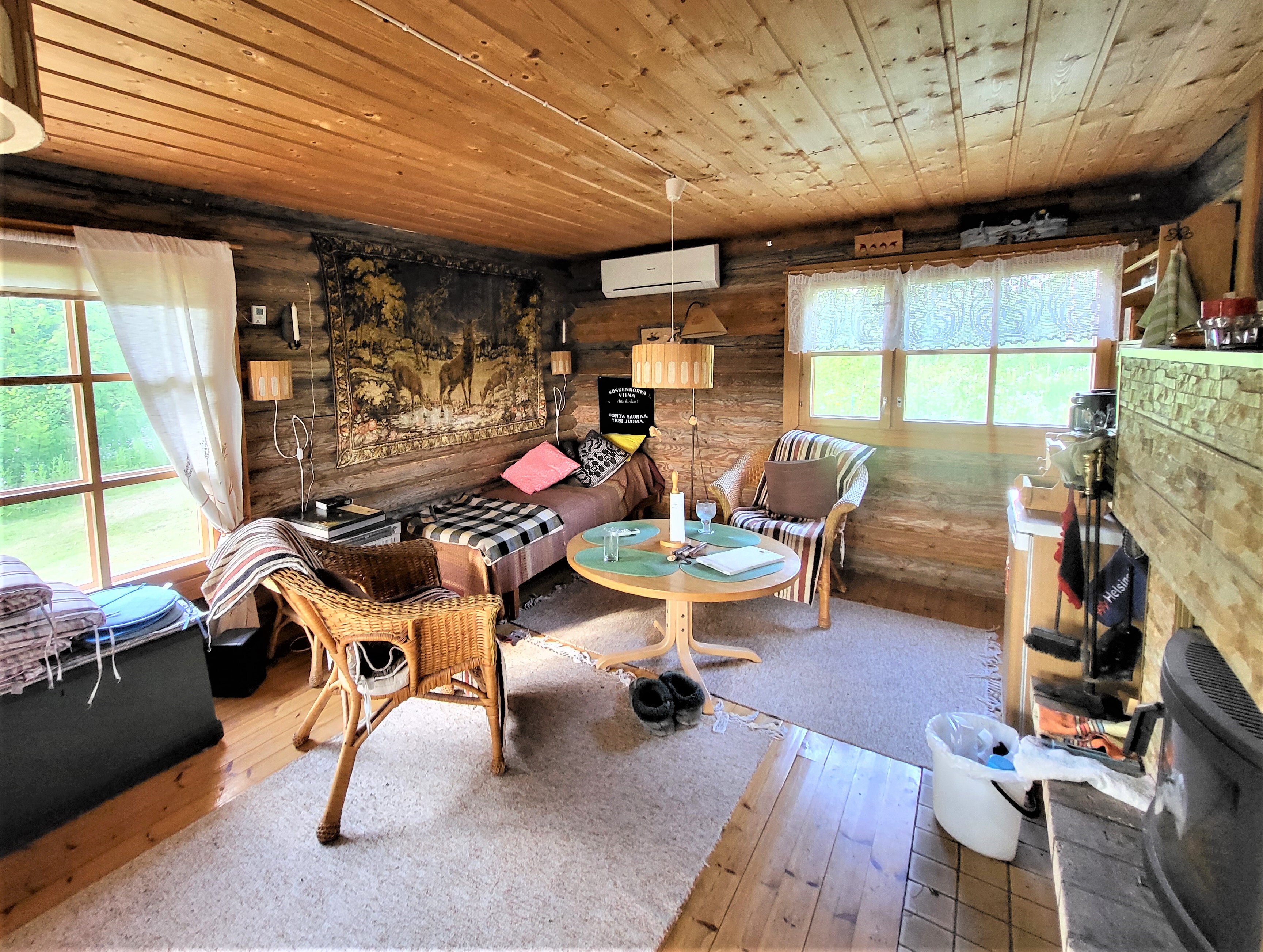 Persoonallinen hirsitalo omalla rannalla, mahdollisuus vakituiseen asumiseen