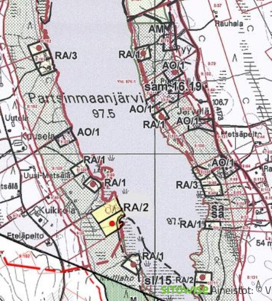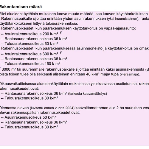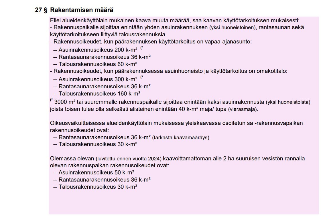 Kohde sijaitsee AO-1 kaava-alueella (erillispientaloalue), mikä mahdollistaa vakituisen asumisen – harvinainen yhdistelmä oman rannan ja maaseuturauhan kanssa.