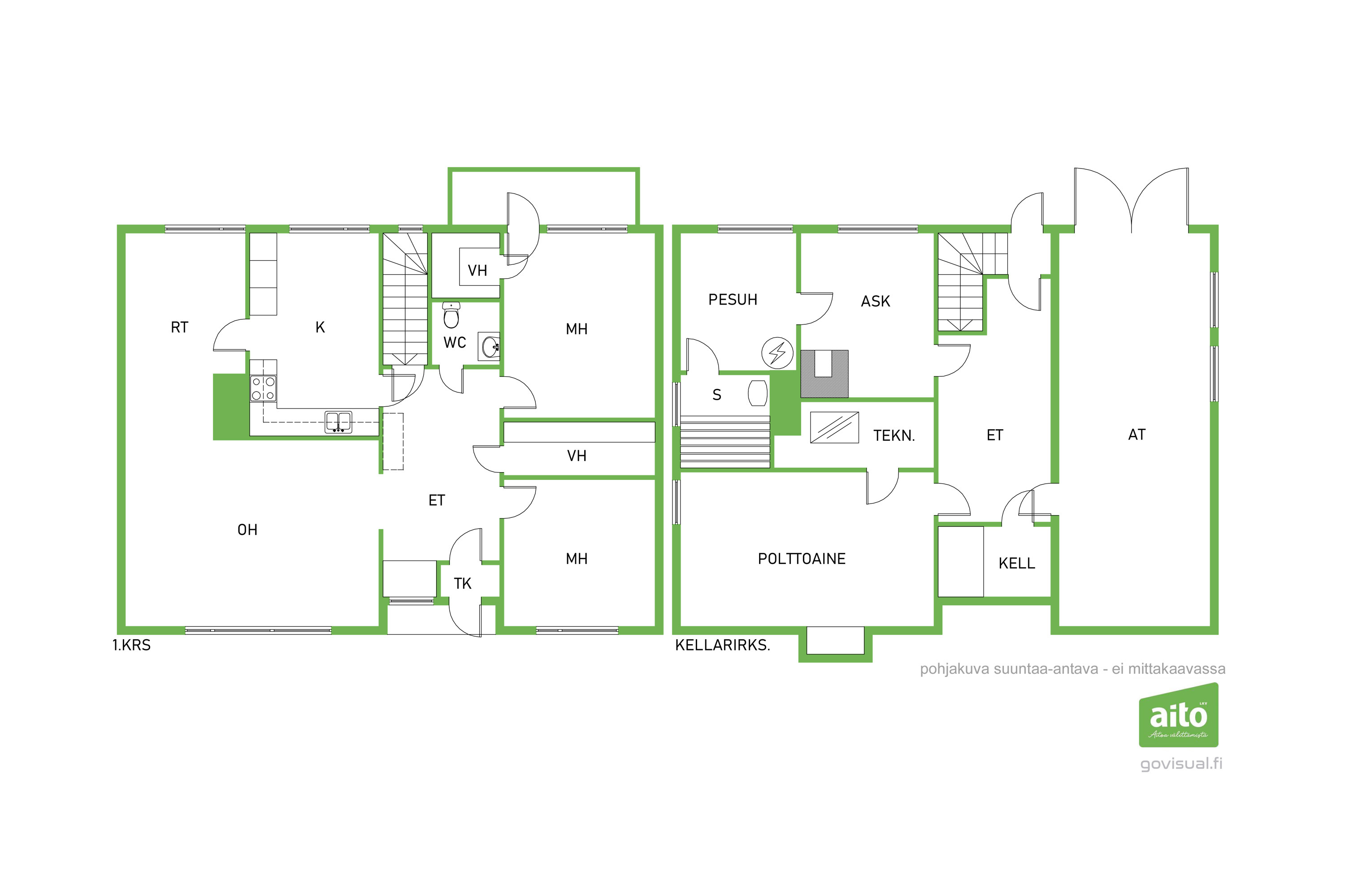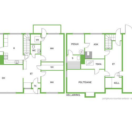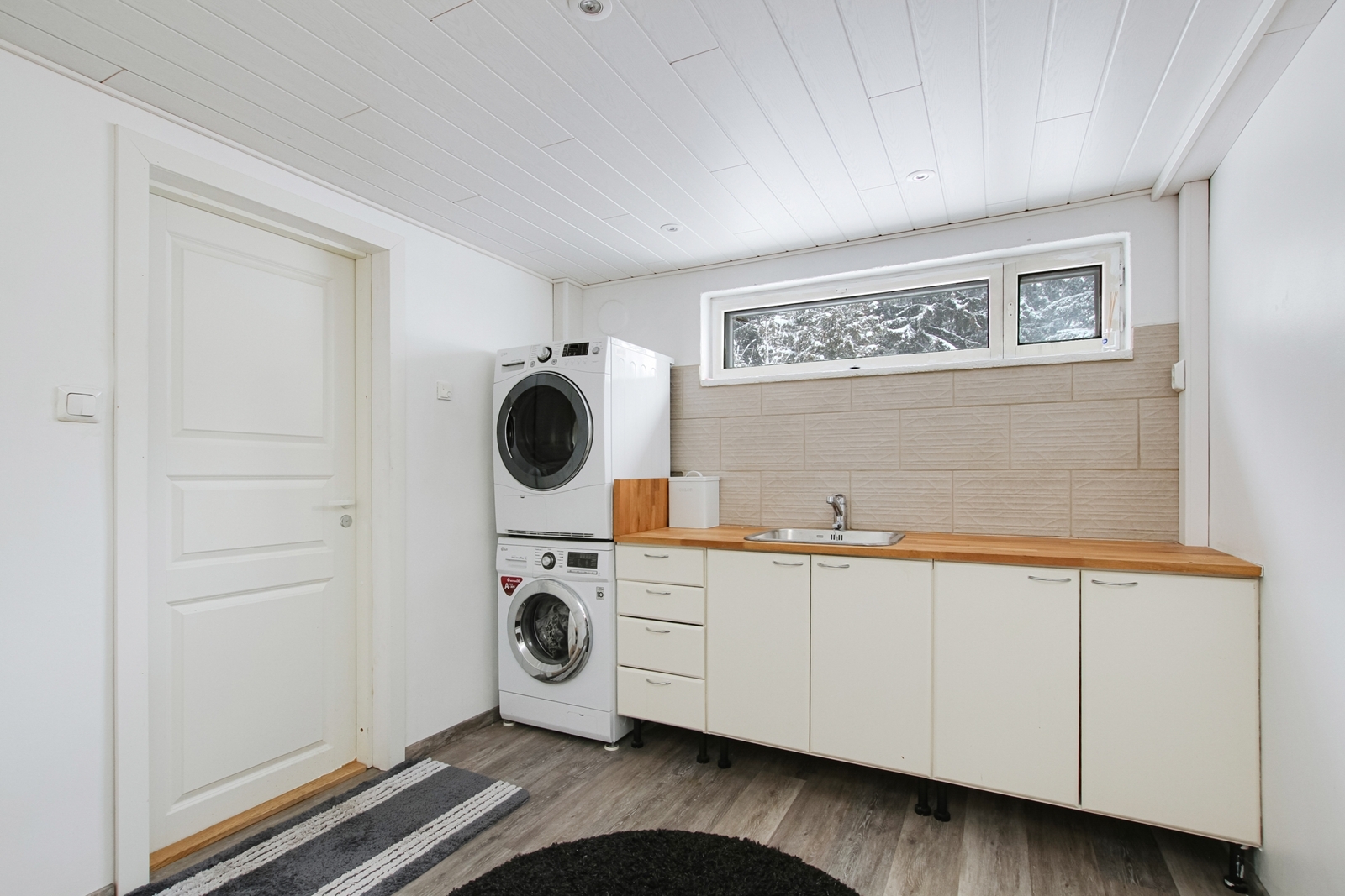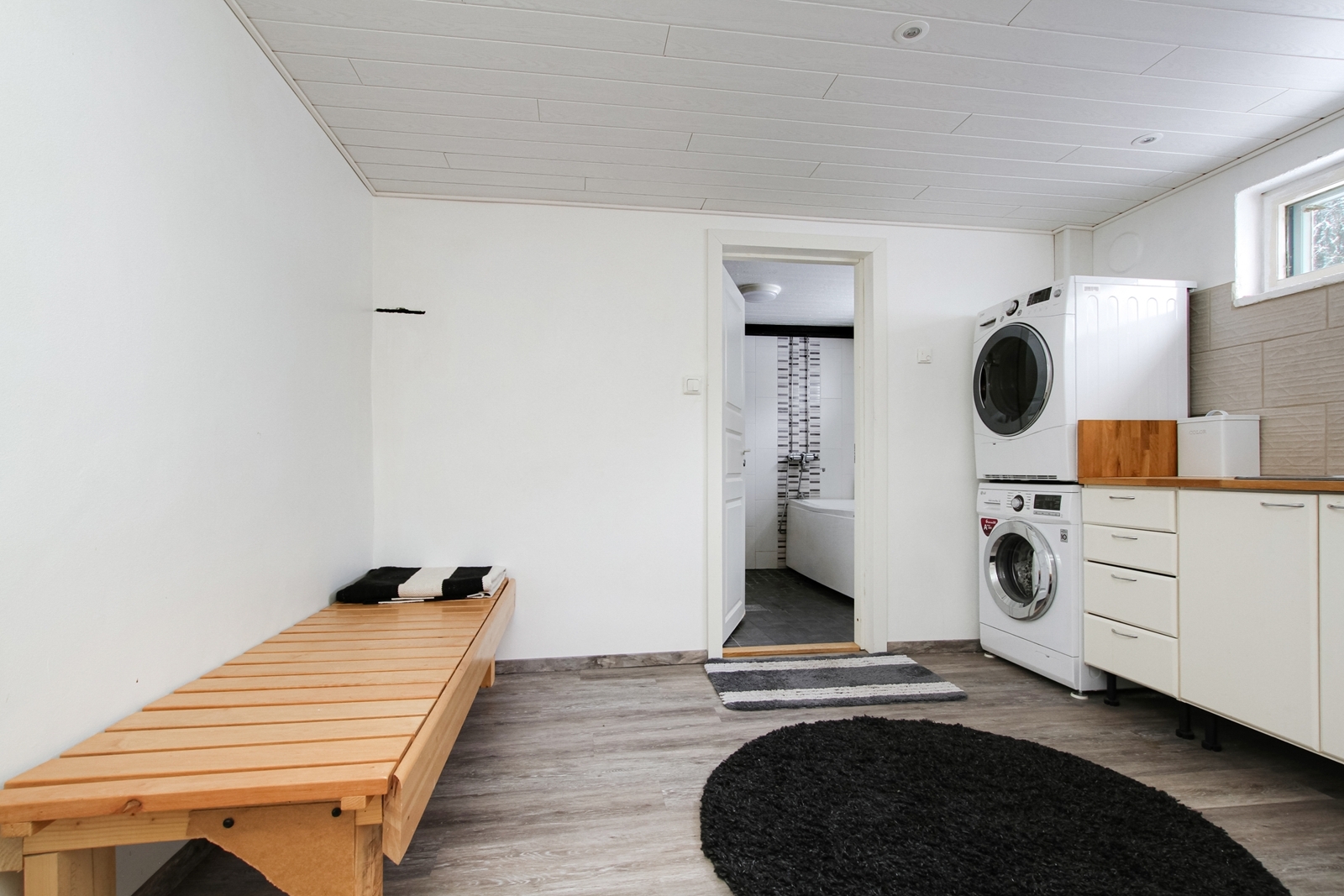 Varusteet: pesukoneliitäntä, lattialämmitys, pöytätaso, pesuallas