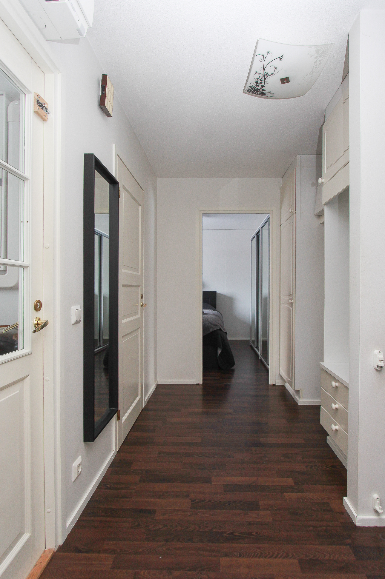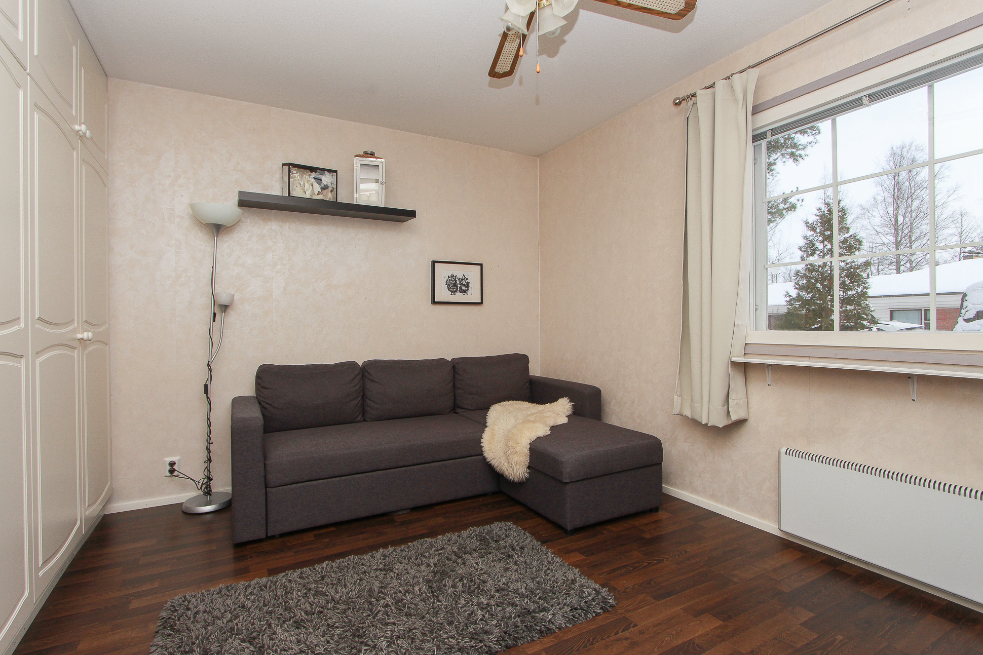 Molemmissa makuuhuoneissa kaappeja.