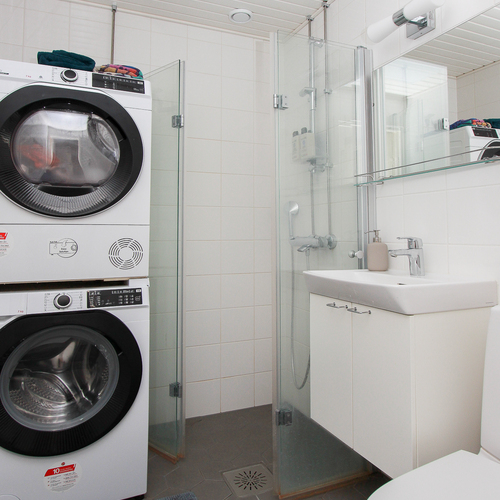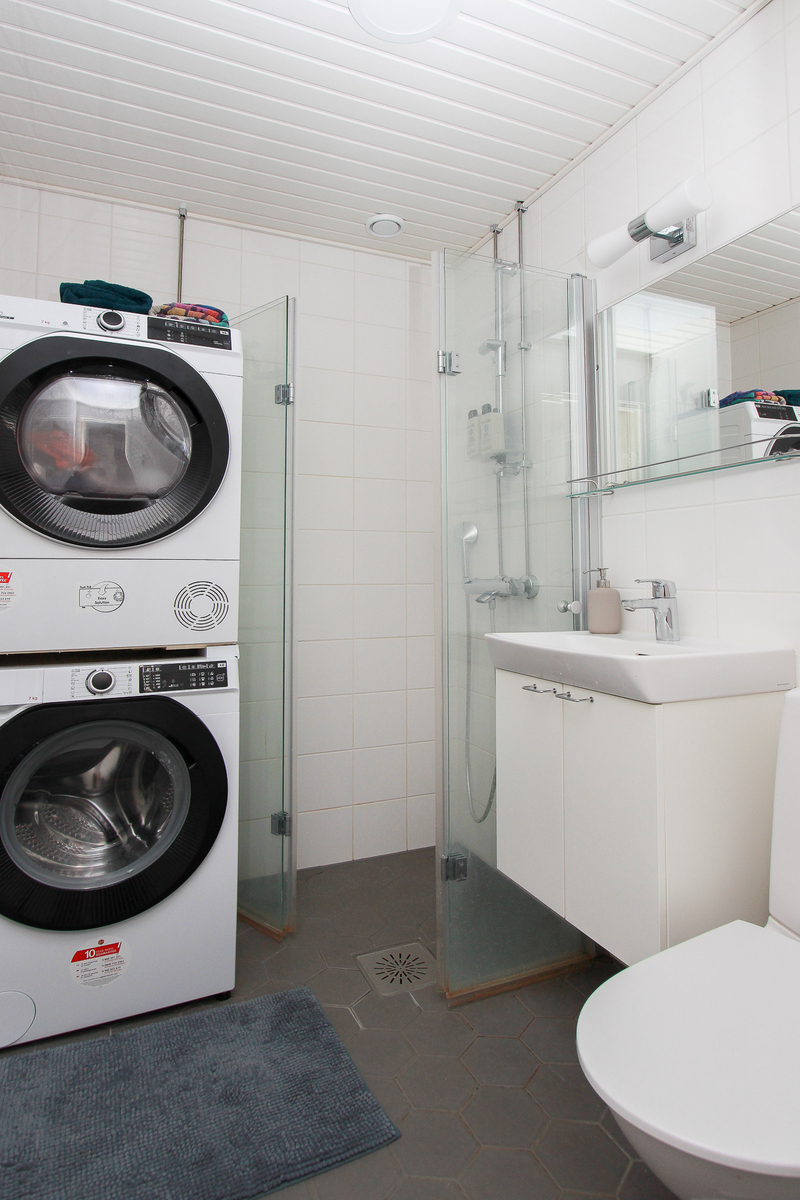 Kylpyhuone ja WC remontoitu LVI-saneerauksen yhteydessä taloyhtiön toimesta.