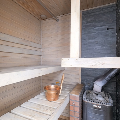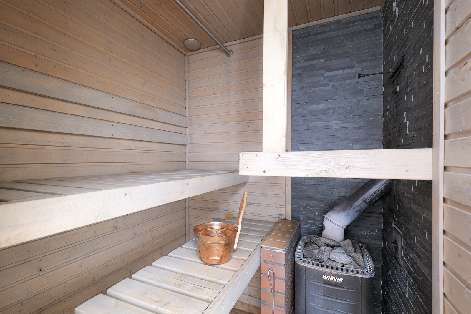 Varusteet: puukiuas, varaus sähkökiukaalle