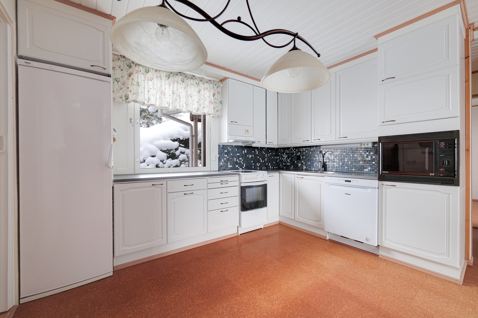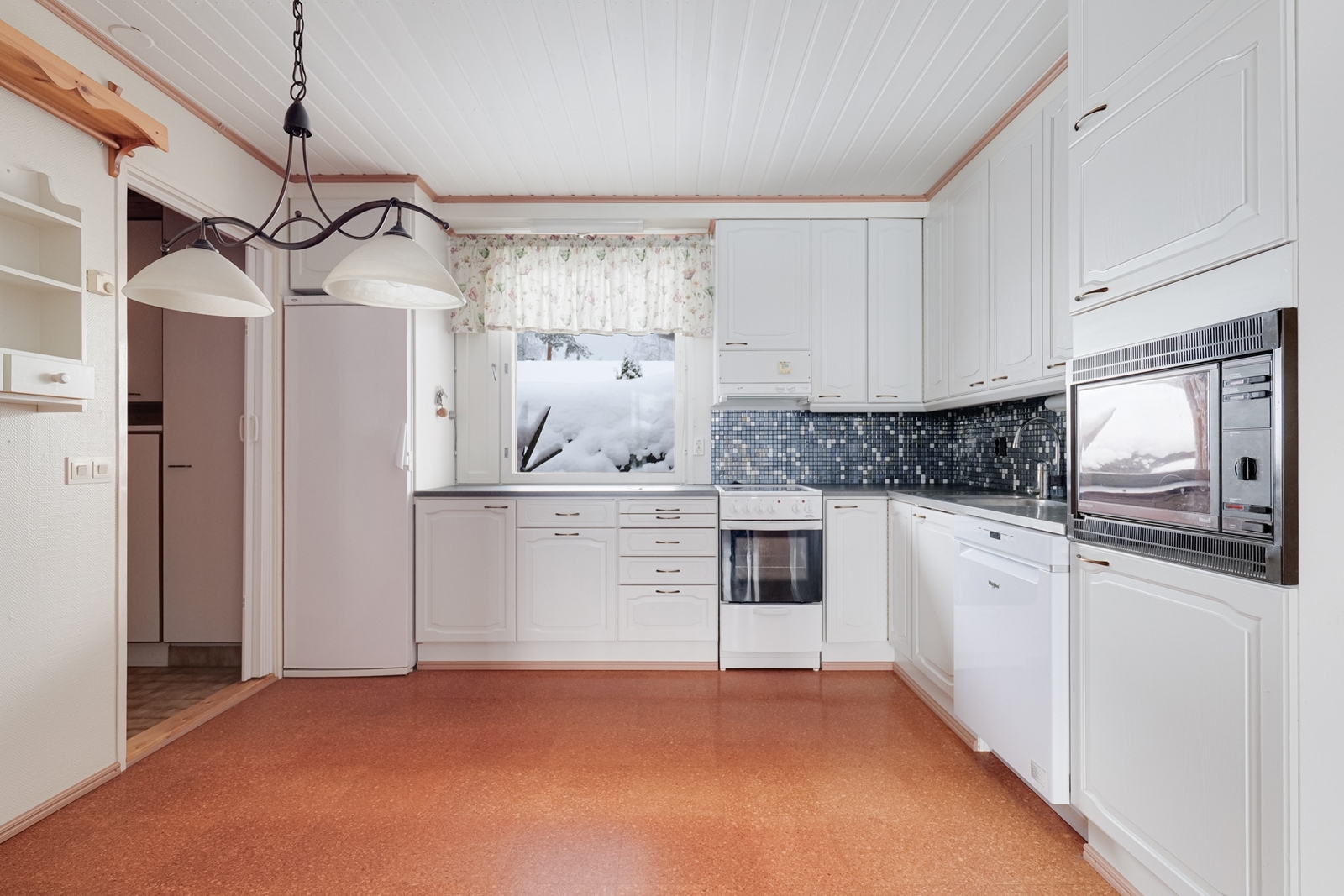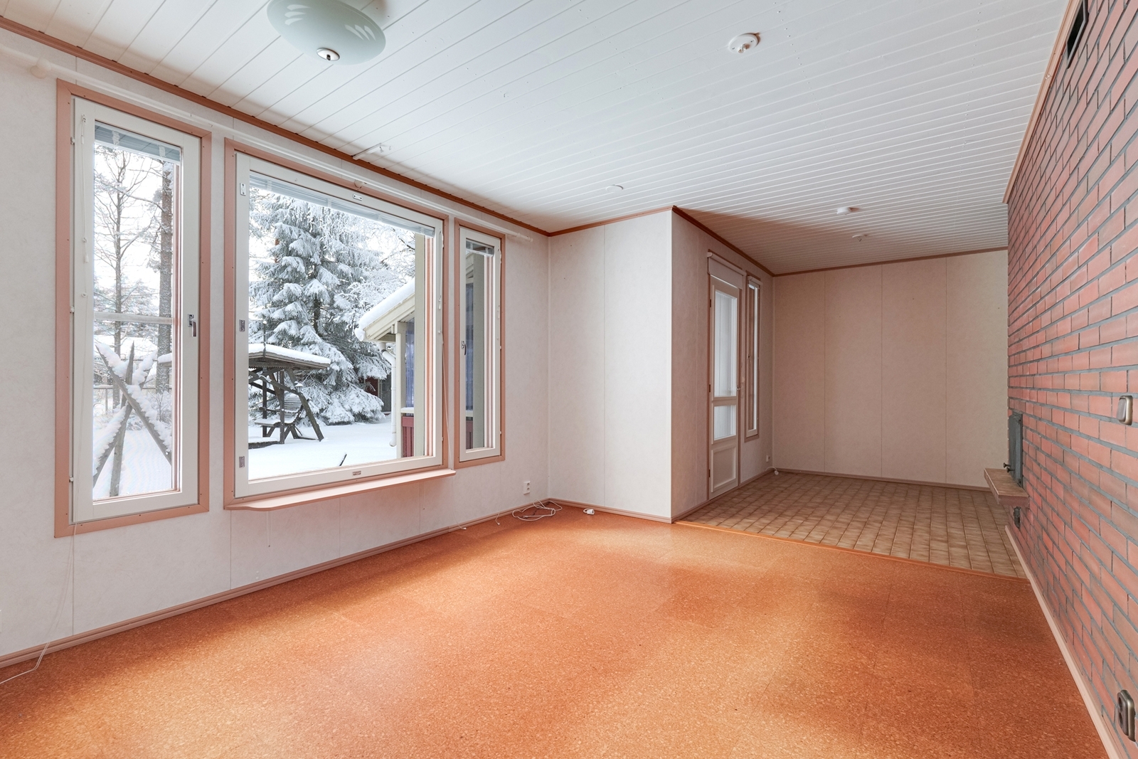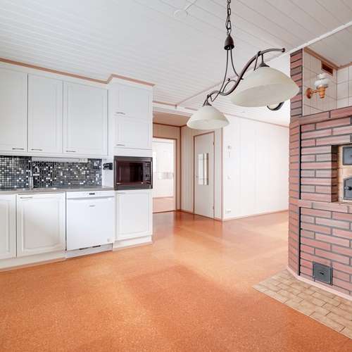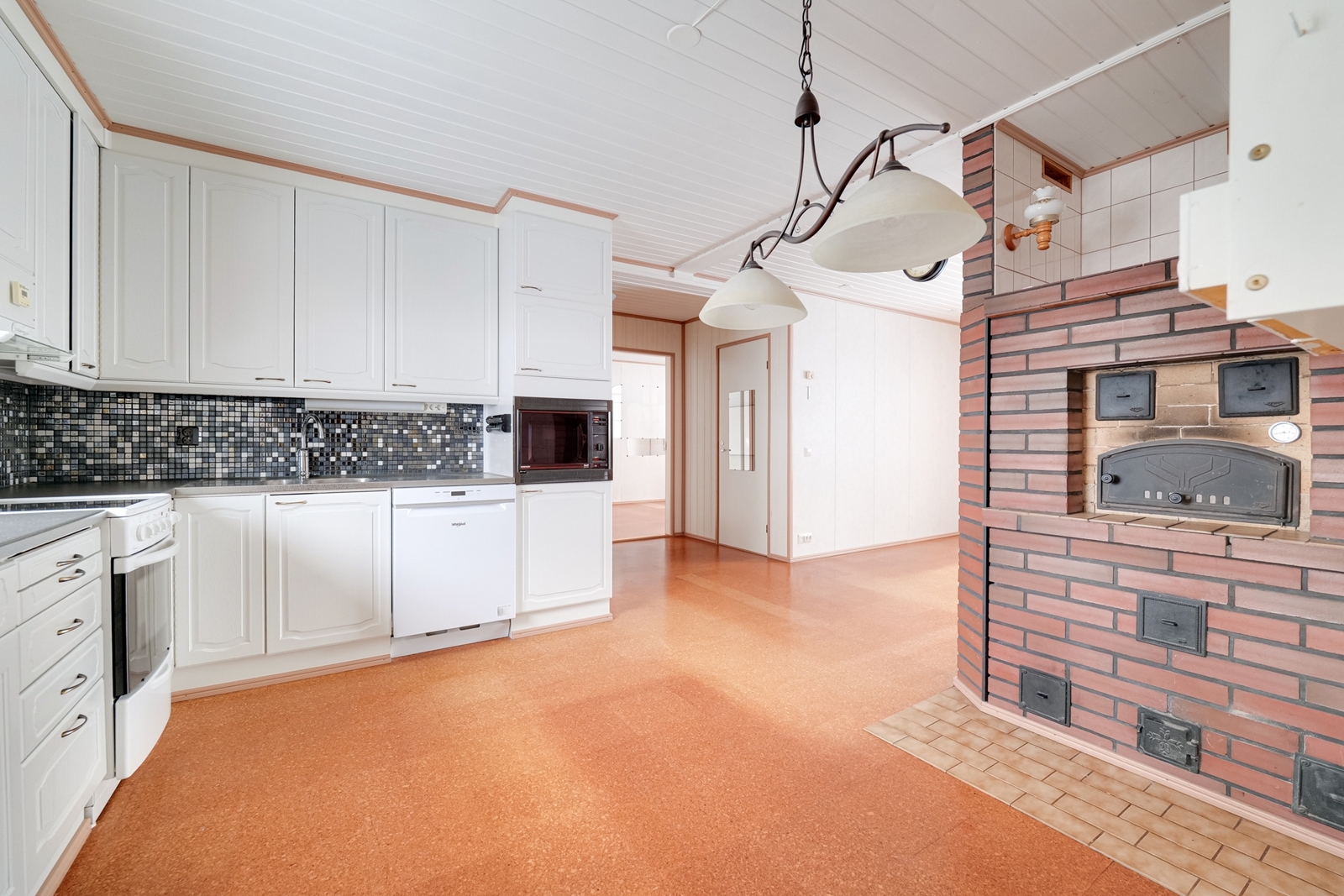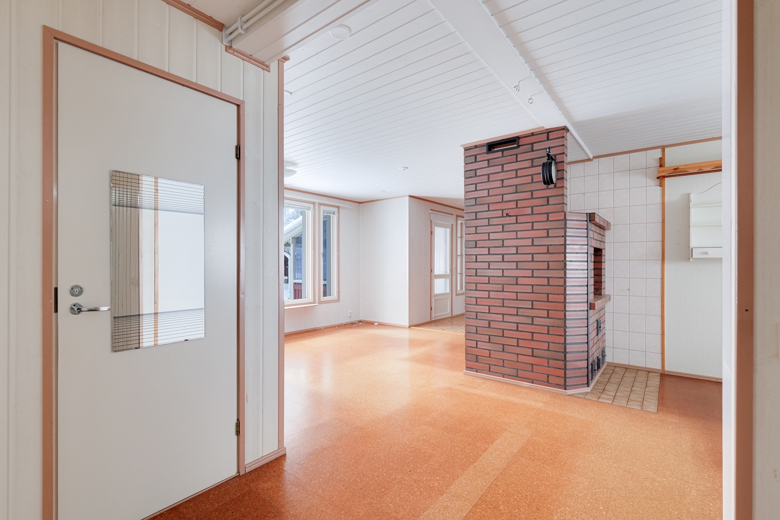 Kodissa on avara olohuone ja keittiö, joiden välistä seinää on avattu tuomaan tilaan modernia yhtenäisyyttä ja valoa. Keittiöön mahtuu hyvin ruokailuryhmä, ja olohuoneen varaava takka sekä keittiön leivinuuni luo tunnelmaa sekä auttaa pitämään lämmityskustannuksia kurissa. Olohuoneesta on käynti katetulle terassille ja suojaisalle takapihalle, jossa voit nauttia ulkoilmasta varhaisesta keväästä pitkälle syksyyn.