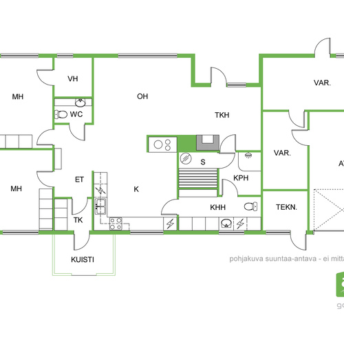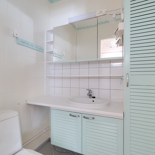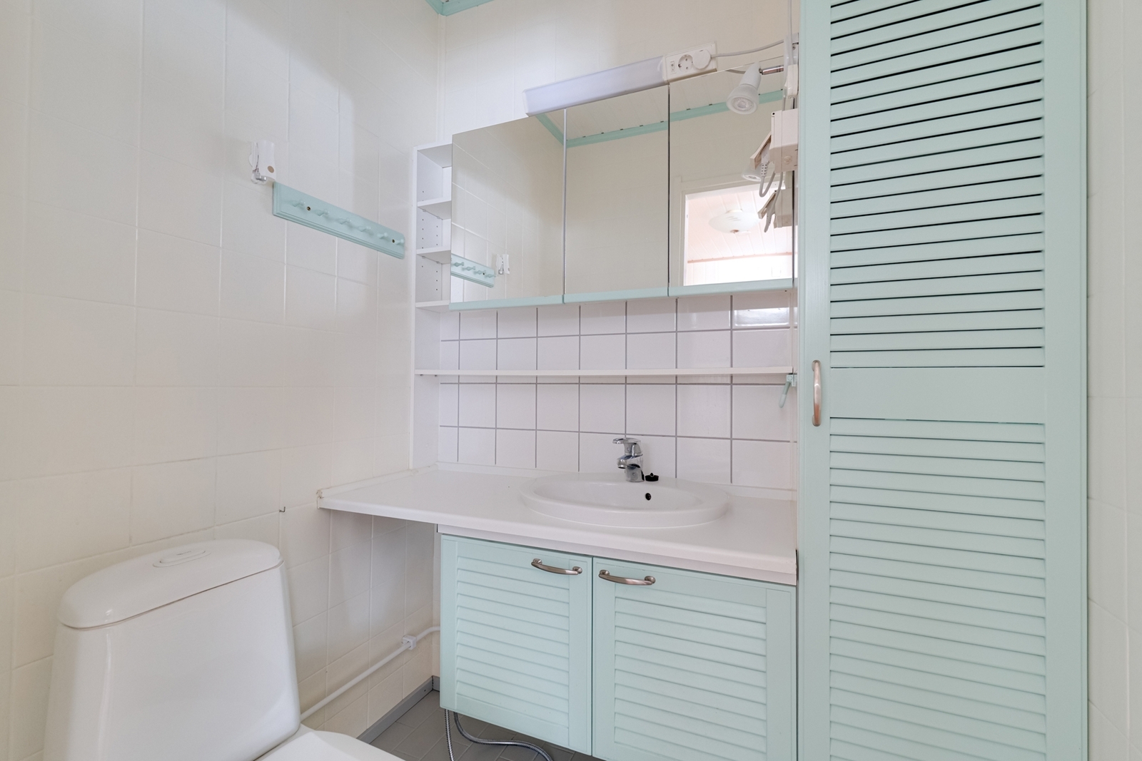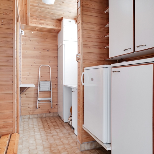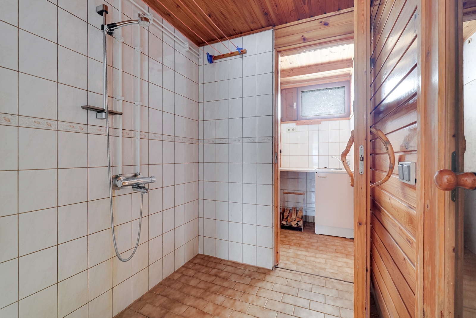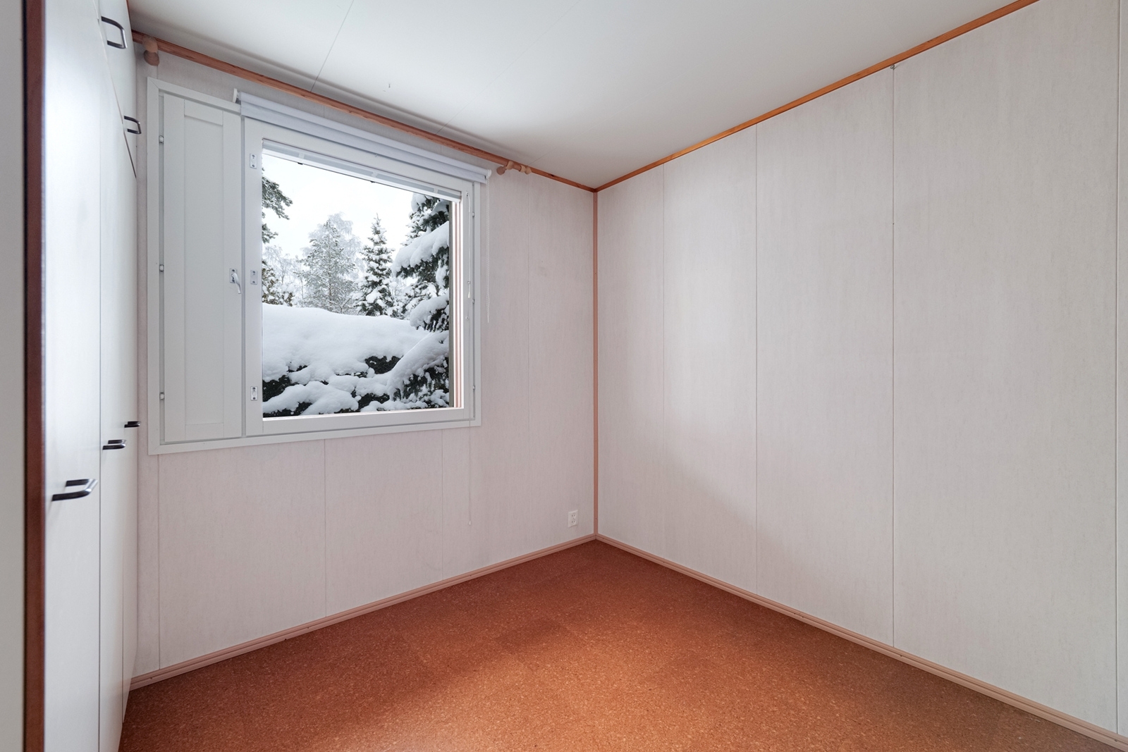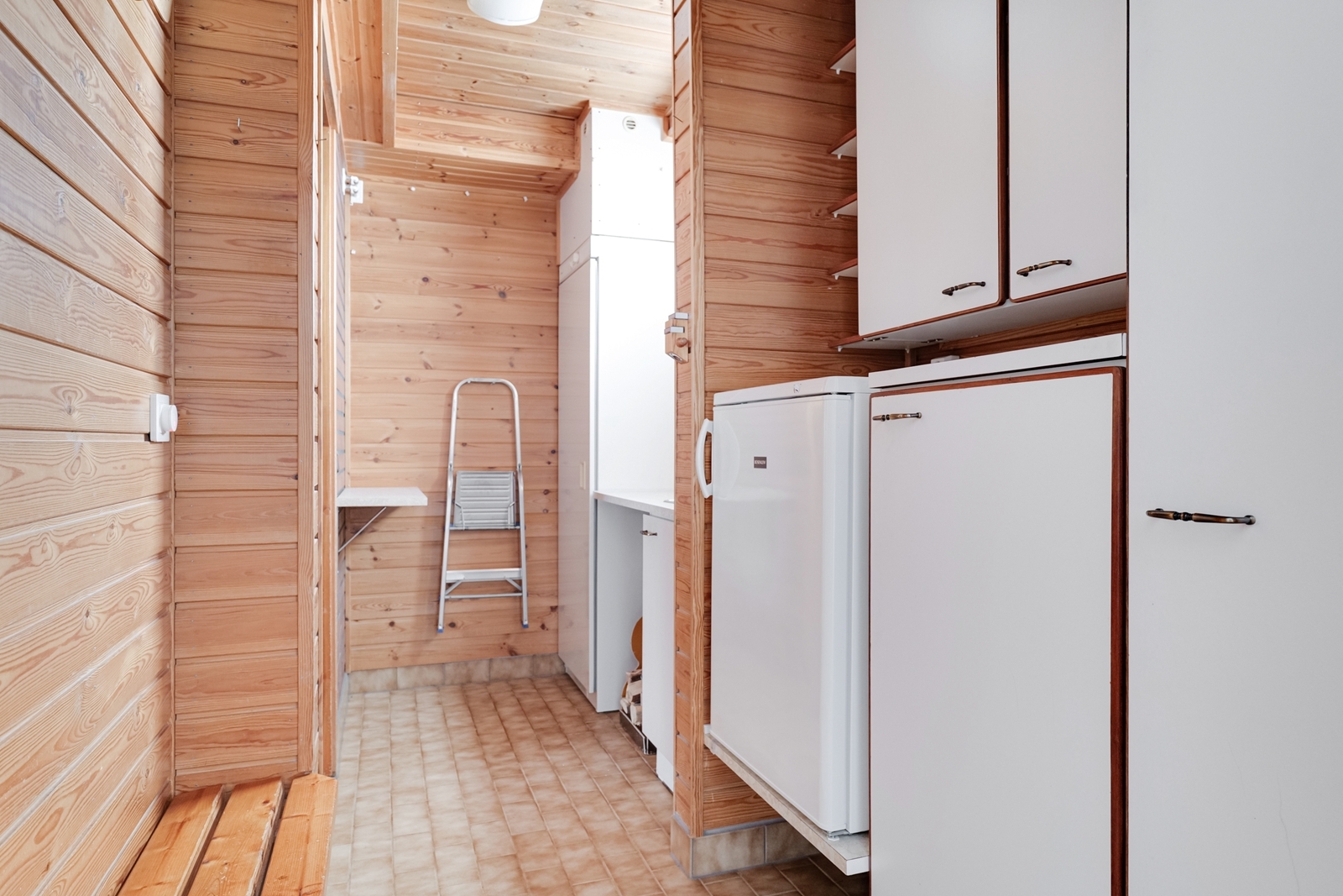 Kokonaisuutta täydentävät kaksi makuuhuonetta, joista toisen yhteydessä on vaatehuone, sekä saunaosaston yhteydessä arkea helpottava kodinhoitohuone. Kylpyhuoneen lattialämmitys lisää asumismukavuutta, ja oman saunan puukiuas tarjoaa pehmeät löylyt – halutessasi käytössä on myös varaus sähkökiukaalle.
